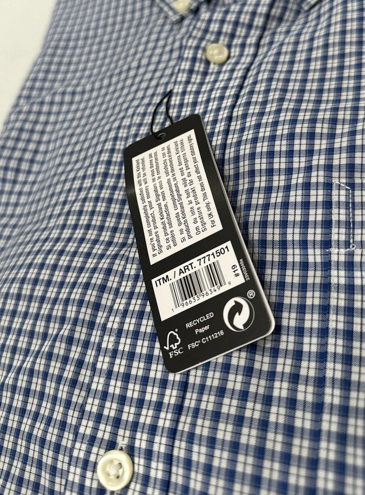 Kirkland Signature Men's Traditional Fit Dress Shirt Size: 16-34/35 Color: Blue Plaid Content: 100% Cotton