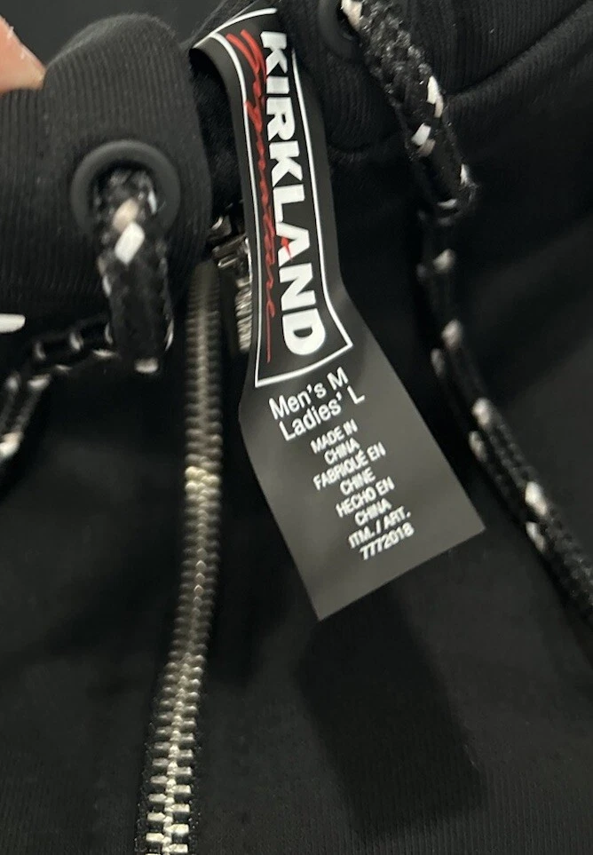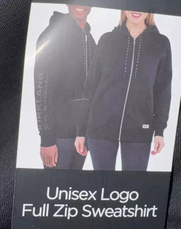 Kirkland Signature Unisex Full Zip Hoodie Sweatshirt Size: Men's Medium / Ladies' Large Color: Black Content: 66% Cotton / 34% Recycled Polyester