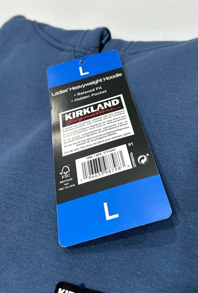 Kirkland Signature Women's Heavyweight Relaxed Fit Hoodie Size: Large Color: Blue Content: 73% Cotton / 24% Polyester / 3% Elastane