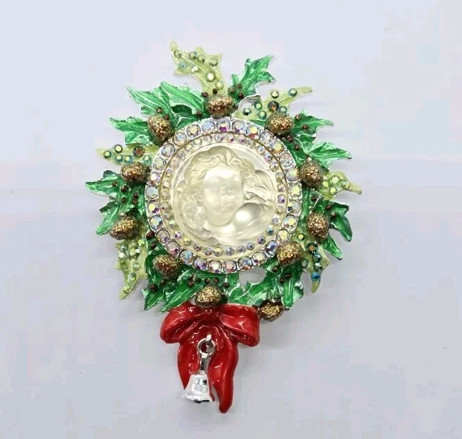 Kirks Folly Dream Angel Holly Berry Wreath Brooch Pin Pendant Silver tone RARE