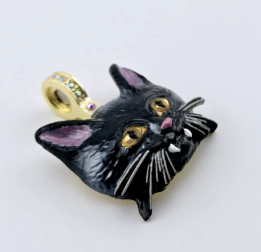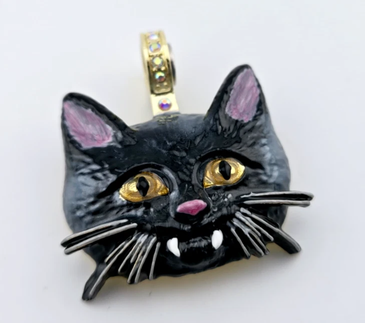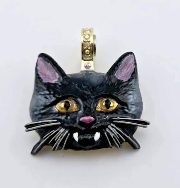 Kirks Folly Vampira Kitty Magnetic Enhancer Pendant Gold tone 1.75 in x 1.5 in