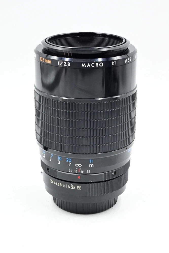 Focal Length: 105mm Mount: Konica AR-mount Type: Telephoto Maximum Aperture: f/2.8 Brand: Kiron Focus Type: Manual