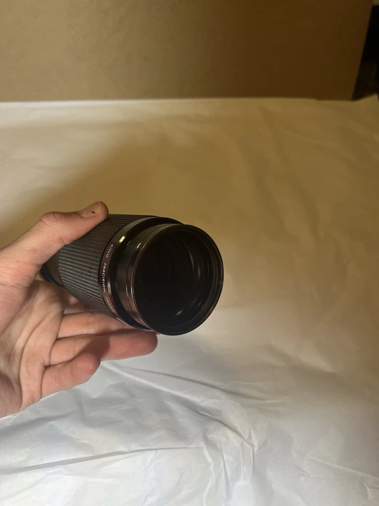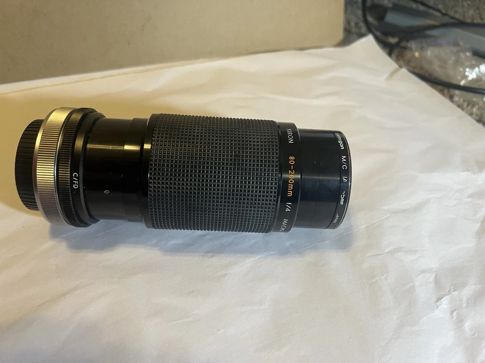 This is a Kiron telephoto zoom lens designed for Nikon cameras with a focal length range of 80-200mm and a maximum aperture of f/4.5. It has a macro/close-up feature, manual focus, and is part of the Nikon AI-S series. The lens is compatible with 55mm filters and has a Nikon F mount. Note: the inner lens has a few small smudges that I am unable to clean on my own.