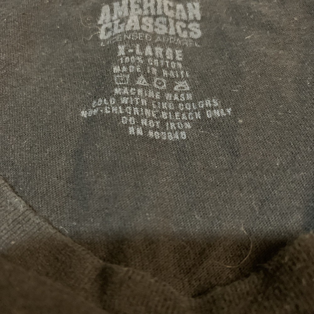 This American Classics T-Shirt in size XL is the perfect addition to any music lover's wardrobe. With a classic black color and crew neckline, this shirt is suitable for both men and women. Made from soft cotton material, it features a regular fit and short sleeves, making it comfortable to wear during any musical performance or casual outing. The shirt's design showcases the band's name, Kiss, in bold white letters, making it a great choice for fans of the iconic rock band. Whether you're a seasoned musician or just a fan of Kiss, this shirt is a must-have for any music enthusiast. Made in Haiti, this T-Shirt is a unique addition to your collection.