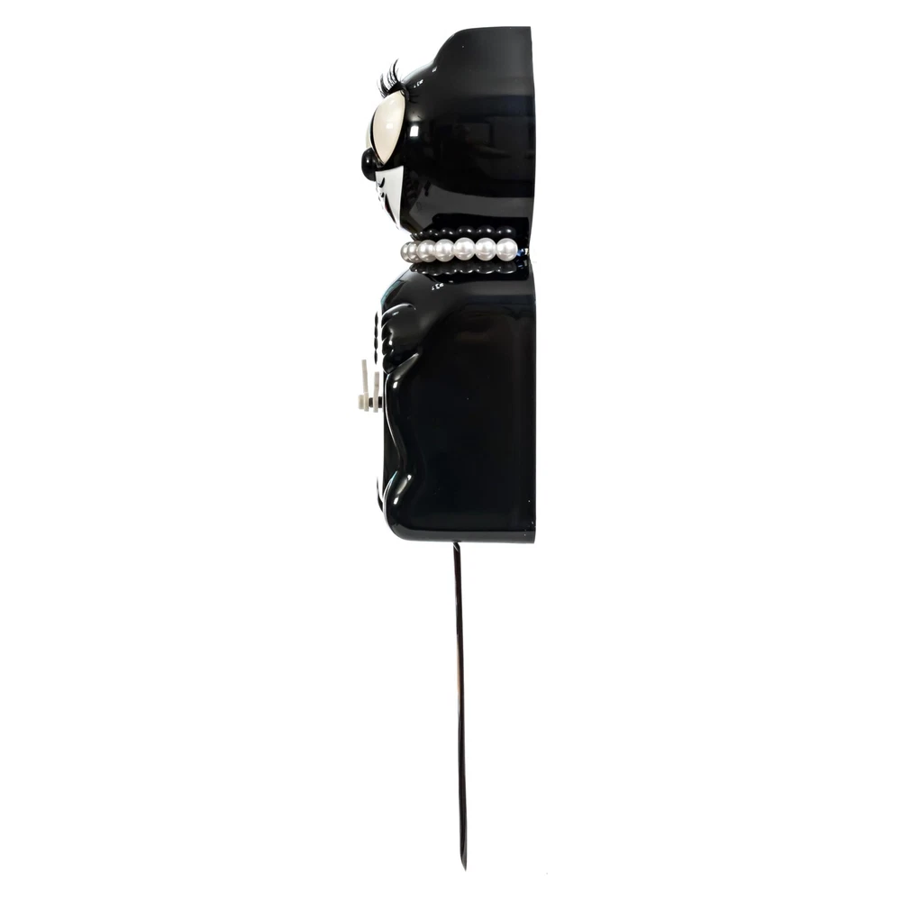 Classic Black Lady ICONIC TIMEPIECE - Brighten your home decor with the Classic Black Lady Kit-Cat Clock. a timeless cat clock with moving eyes and tail vintage that has delighted families for generations. with its smile. PERFECT SIZE FOR ANY ROOM - Standing 15.5 inches tall from ears to tail, this original-size Kit-Cat Clock is the ideal centerpiece for your wall, adding a touch of sparkle and character to any space, big or small. Perfect for enhancing your cat wall decor and retro house decor. LIMITED EDITION & MADE IN USA - Proudly crafted in the USA by the original manufacturer, this high-quality Classic Black Lady Kit-Cat Clock is built to last, making it a special collectible and a charming addition to your home. Ideal for those seeking battery operated wall clocks. EASY TO POWER & INSTALL - Simply insert 2 C batteries (not included) and hang this battery wall clock on your wall no complicated setup required. Enjoy the unique charm of a Kit Cat Clock with a modern twist, without the hassle. A STUNNING GIFT FOR ALL OCCASIONS - Whether for a housewarming, birthday, or holiday, the Limited Edition Classic Black Lady Kit-Cat Clock makes an unforgettable gift, combining its design with practical charm. Perfect for those looking for a unique clock.