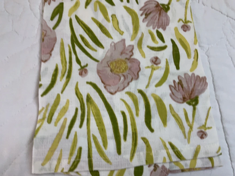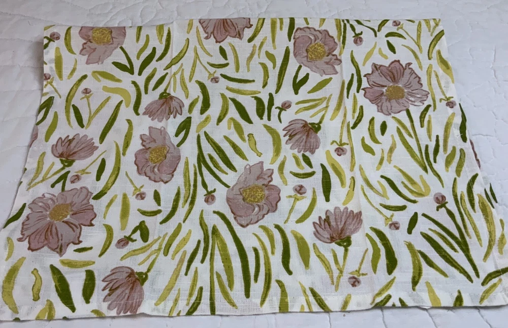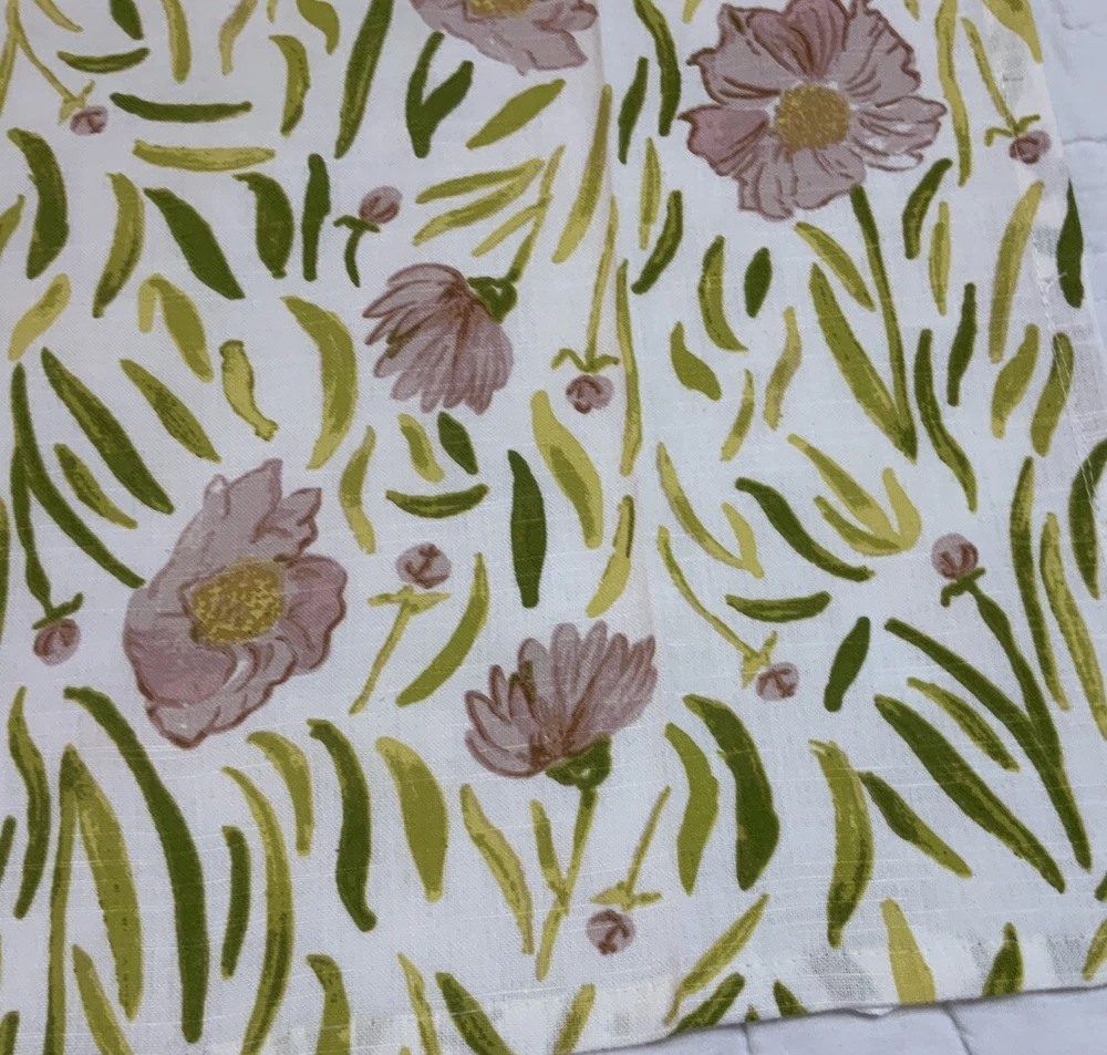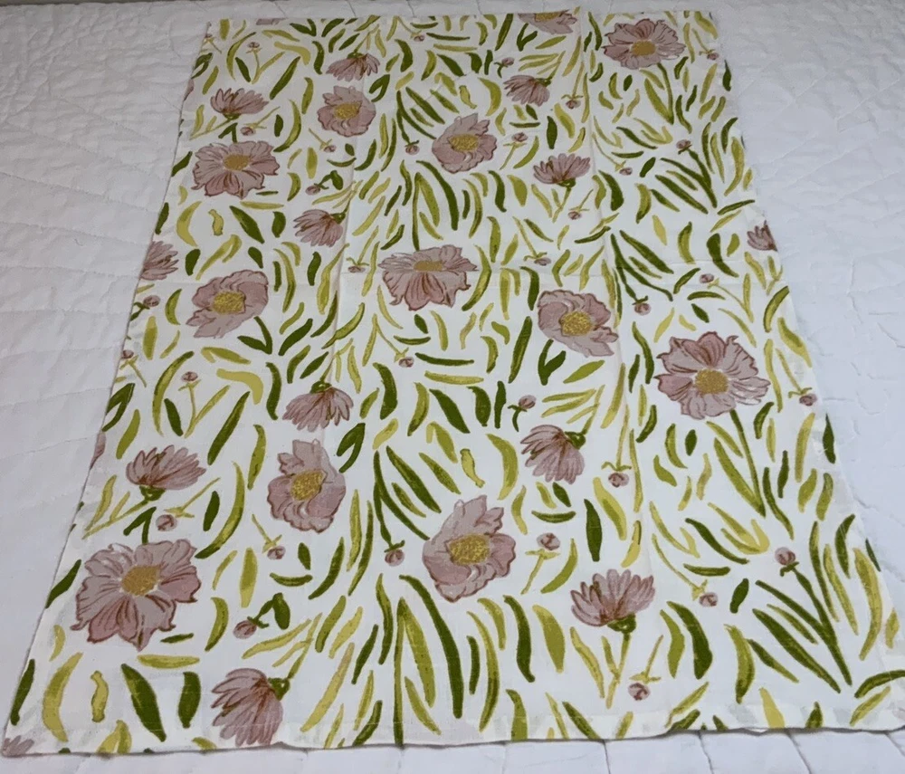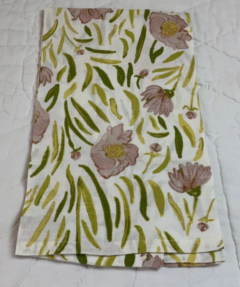 Up for sale is a kitchen dish towel. Cotton. Hanger sewn in this towel. Printed design - flowers and leaves. The colors are white, pink, green, gold, yellow. By Threshold. Very, very good condition. Measures 18” by 27”. 🪿🌹🌹🐇🌺🌻 Thank you and happy shopping. I will combine shipping charges. Smoke free home. Please make payment within three days. ~~~~Please visit my eBay store: 🇺🇸webbsamericancountry1🇺🇸 for over 2000 vintage and collectible items.~~~~🌺🌼🌹