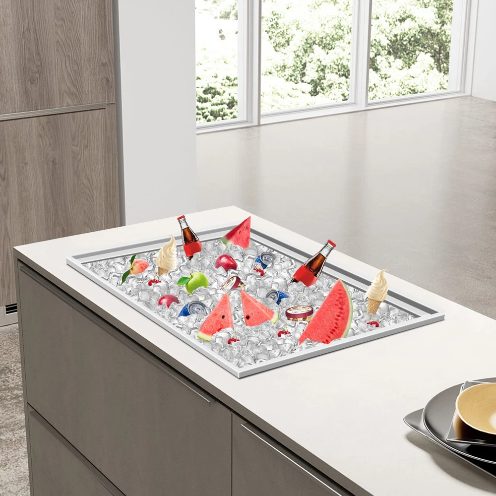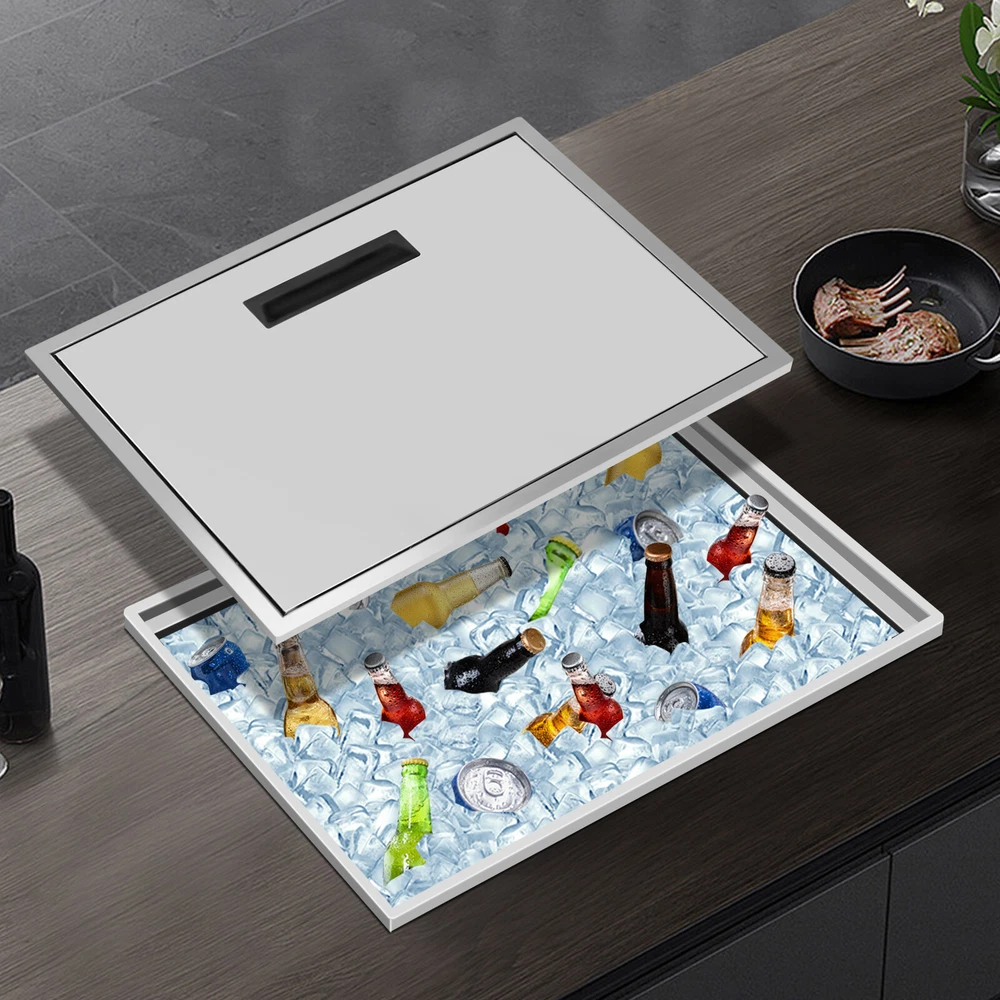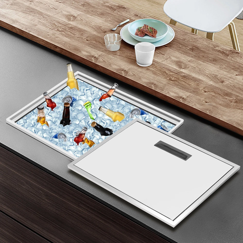 Description Do you want to achieve ice drink freedom at your barbecue time or outdoor party? Then this drop-in ice chest will be the ideal choice for you! Its unique double wall design, built-in foam layer, and lid all provide excellent insulation to keep the ice frozen. It will provide you with cool and comfortable iced drinks to make your party more exciting and active! Key Features High-quality Material: It is made of food-grade 304 stainless steel, which is not only safe and harmless for storing edible ice or food directly but also very solid, rust-proof, and not easily deformed to ensure long service life. Excellent Ice Retention: The double-walled design and built-in thickened foam insulation effectively prevent cold air from escaping from the inside and keep your ice solidified Kitchen Drop-in Ice Chest Cooler Underbar Ice Bin Stainless Steel for Cold Wine Description Do you want to achieve ice drink freedom at your barbecue time or outdoor party? Then this drop-in ice chest will be the ideal choice for you! Its unique double wall design, built-in foam layer, and lid all provide excellent insulation to keep the ice frozen. It will provide you with cool and comfortable iced drinks to make your party more exciting and active! Key Features High-quality Material: It is made of food-grade 304 stainless steel, which is not only safe and harmless for storing edible ice or food directly but also very solid, rust-proof, and not easily deformed to ensure long service life. Excellent Ice Retention: The double-walled design and built-in thickened foam insulation effectively prevent cold air from escaping from the inside and keep your ice solidified, so it can keep your drinks cool for a long time. Easy to Clean: The smooth stainless steel surface does not easily hide dirt, making it easy to clean. You can directly rinse it with water and dry it to get it as clean as a new one. Large Capacity: With a capacity of 47L/49.7 Qt, this drop-in ice chest easily stores and cools large quantities of ice, drinks, or frozen foods for the whole family or commercial needs. Outdoor Party Companion: This all-in-one ice chest allows you to take it to any outdoor scene, which will bring cold drinks to your party without the need for an electric refrigerator, making it a great choice for outdoor lineups. Open Design: You can remove the lid to convert it into an open ice chest, which is convenient for customers to take and choose their favorite drink. Space Saving: It adopts a drop-in design, making full use of the space in the bottom cabinet without taking up too much counter space, which will give you a clean and tidy countertop. Customer Service: We aim to provide quality products and services. If you have any problems, please feel free to contact us. We will reply and solve the problem for you as soon as possible. Details Stainless Steel Lid: It is equipped with a stainless steel lid for better insulation work. At the same time, it can ensure that the internal ice or drinks are kept away from dust and other contaminants. Comfortable Handle: The lid is equipped with a recessed plastic handle with a smooth and comfortable surface that does not hurt your hands, making it easy for you to open or close the lid. Application It is widely used in dinner parties, parties, bars, kitchens, offices, etc. for keeping wine, beer, whiskey, beer, cocktails, vodka, juice, and frozen food fresh. Specifications Material: 304 Stainless Steel + Plastic + Foam Installation: Drop-in, Freestanding Shape: Rectangle Color: Silver Thickness of Foam Insulation Layer: 2cm/0.78in Capacity: 47L/49.7 Qt Product Dimension: 55.8*43.2*30.6cm/22*17*12 in Packing Size: 58*45*32.5cm/22.83*17.71*12.79in Gross Weight: 4.8kg/10.58lbs Net Weight: 4.5kg/9.92lbs Package Included 1* Drop-in Ice Chest 1* Lid Notes Please allow the slight color difference caused by the shooting light and 1-3cm error due to manual measurement, and make sure you do not mind before you order. Payment Delivery details Terms of sales About us Contact us Payment We accept ebay payment 。 Fees such as import duties, taxes are not included in the item price or shipping costs. These charges are the buyer's responsibility. Delivery details Shipping: 2-9 working days to: USA Terms of sales We maintain high standards of excellence and strive for hundred percent customer satisfaction. Feedback is very important to us. We hope that you contact us immediately before you give neutral or negative feedback, so that we can address your concerns. It is impossible to address issues if we do not know about them! About us Your satis faction is our ultimate goal. We work hard to earn your trust and future business. Our certified technicians have tested each item before shipping. The unit comes with 1 year limited warranty on all manufacturing defects. a) If you receive a defective item, you may return it or ask for a discount. Please contact us within 14 days after you receive the package. b) What you returned must be intact and in its original packaging as re? u. Customer is responsible for shipping costs of the returned item. c) We will cover the cost of shipping back t with the shipping rate indicated in the registration page. We will send you a new unit or refund the full payment you paid. Thank you. Contact us Business Hour Business Hour: Monday To Friday: 8:30 AM to 5:00 PM (Beijing China time) Due to time zones, our reply to your questions may not be immediately. But within above working time, we will reply your email within 24 hours. If it's non-workdays, please kindly be patient and wait till Monday. Please contact us with ebay message. Please feel free to contact us if you have any questions. Monday To Friday: 8:30 AM to 5:00 PM (Beijing China time) Due to time zones, our reply to your questions may not be immediately. But within above working time, we will reply your email within 24 hours. If it's non-workdays, please kindly be patient and wait till Monday. Please contact us with eb