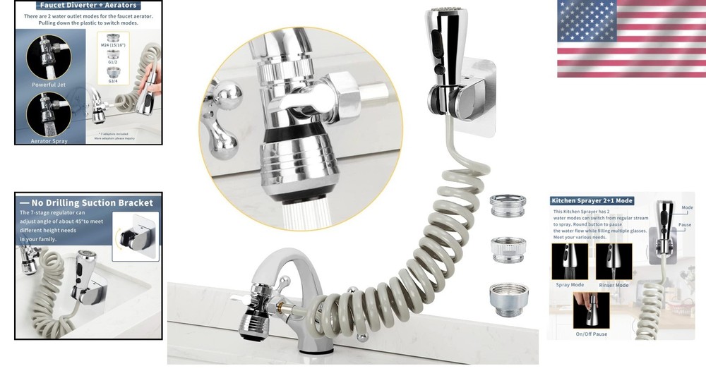 Kitchen Faucet Attachment Set with On/Off Control for Versatile Use ‹ › ‹ › ‹ › ‹ › ‹ › ‹ › ‹ › ‹ › ‹ › ‹ › Kitchen Faucet Attachment Set Transform your kitchen into a multi-functional oasis with our Kitchen Faucet Attachment Set, expertly designed for versatility and ease of use. This set will elevate your daily kitchen tasks and give your home a touch of luxury. Features: Complete Sink Faucet Sprayer Set: Includes all components needed to attach the faucet sprayer to any sink faucet in your bathroom, kitchen, utility, laundry, or basement room. 2 Mode Shower & On/Off SWITCH: Enjoy a Handheld kitchen faucet with a sprayer head that offers two water flow modes - the gentle Bubble Spray and powerful Power Jet, perfect for flushing away food debris and enhancing your washing experience. Faucet Aerator & 3-Way Diverter: Switch effortlessly between a soft bubble stream and a strong spray with the Brass construction Valve with 1 water inlet and 2 outlets included. Adaptable for various faucet types with included adapters. 6.6 FT Flexible Faucet Sprayer: Made of , non-toxic, explosion-proof material, the elastic telescopic hose extends up to 6.6 feet for easy . Perfect for cleaning large items or reaching remote corners, while the flexible design prevents it from falling on the floor. Easy To Install: No need for a plumber! Easily install by removing your current aerator and connecting our Dual-function Faucet Aerator with 3-Way Valve. Benefits: Elevates your kitchen experience with a dual-function sprayer. Convenient water flow control with a simple On/Off switch. Reduces cleanup time with powerful water spray. Flexible hose allows easy access without restriction. Versatile design suitable for a variety of faucets and uses. Why Choose Our Kitchen Faucet Attachment Set? Say goodbye to mundane kitchen tasks! With our Kitchen Faucet Attachment Set, you can upgrade your faucet and enhance your cleaning efficiency in one simple step. This attachment not only simplifies washing dishes but also makes bath time for pets a breeze. The ergonomic design and construction ensure a long-lasting, high-quality addition to your home. Elevate your lifestyle - order your Kitchen Faucet Attachment Set today! Shipping Free & Fast Shipping - We offer free shipping to most of the USA with a normal delivery time of 3-7 days. However, due to the current situation, additional delivery time (up to 3 weeks) may be required for some items. Alternative Carriers - We may use alternative carriers (e.g. USPS, FedEx, UPS, etc.) to ensure your package arrives safely and on time. Due to the use of multiple carriers, we are unable to provide a tracking number automatically. Handling Time - Orders are processed and shipped within 1-2 business days of receiving cleared payment. Shipping Restrictions - Shipping to Alaska, Hawaii, Puerto Rico, Guam, and other US territories may incur shipping charges or delivery restrictions. Please contact us before ordering, or your order can be refunded/cancelled. State Restrictions - There may be restrictions based on your state of purchase. For example, certain items may not be shipped to California due to state regulations. Contact for Tracking Updates - If you require tracking updates or have any concerns about the delivery of your order, please feel free to contact us, and we will be happy to assist you. Return 30-Day Hassle-Free Returns - We want you to be completely satisfied with your purchase. If you are not, you can return the item within 30 days of receiving it for a full refund or exchange. Easy Return Process - To start a return, simply contact us and we will provide you with a prepaid return shipping label and detailed instructions. Restocking Fee - There are no restocking fees for returns. However, the buyer is responsible for return shipping costs if the return is not due to a seller's error. Refund Processing Time - Refunds will be processed within 5 business days of receiving the returned item in its condition. Payment We accept all major credit cards, PayPal, and Apple Pay for your convenience. Your payment information is secure and encrypted to ensure a safe and seamless transaction. Please complete your payment within 3 days of purchase to avoid any delays in shipping. Feedback Your feedback is extremely important to us. We strive to provide the best products and customer service possible. If you are satisfied with your purchase, please take a moment to leave us a positive review. If you have any concerns or issues with your order, please contact us before leaving negative feedback. We are committed to resolving any problems and ensuring your satisfaction. Contact Us If you have any questions or concerns, please feel free to out to our customer support team. You can contact us through the eBay messaging system. We are available Monday to Friday, 9:00 am to 5:00 pm EST, and we will do our best to respond to your inquiry within 24 hours. Buy it now and enjoy a pleasant shopping experience! Item Weight: 0.1 kg Model: Kitchen Sink Sprayer Attachment Unit Quantity: 1 Material: Brass,Plastic Suitable For: Kitchen Sink,Bathroom,Kitchen,Utility,Laundry,Basement Room Features: Pressurized Water Saving,Water Flow Control,Bubble Spray,Power Jet,On/Off Switch,Water Saving,Flexible Hose,Easy to Install Room: Kitchen,Bathroom,Utility,Laundry,Basement Items Included: 79" stretched coil sink hose,dual-function faucet aerator,no drilling adjustable adhesive bracket,hand-held sprayer Type: Faucet Attachment Finish: Polished Number of Faucet Holes: 1 Color: Grey Number of Faucet Handles: 0 (Touchless) Faucet Mounting Type: Multi-Use Handle Type: Touchless Shape: Flexible Installation: Easy Install Item Height: 1.18 Inches Faucet Hole Spacing: Standard Style: Modern