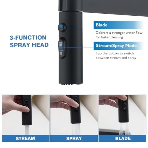 Menu 1. We require immediate payment. 2. We currently accept payment via eBay managed payments only. 3. Once payment is cleared, we will dispatch your shipment within 1-3 business days. Please refer to the "Shipping" tab for more information regarding shipping speed to your destination. Kitchen Faucet with Pull Down Sprayer, Stainless Steel Single Handle Kitchen Sink Faucets 3 Functions, Single Lever High Arc Sink Faucets 1 or 3 Holes for Kitchen Sink, Matte Black Product description 3 Spray Options: Kitchen sink faucets with three setting modes. At the touch of a button, you can switch between spray, stream and blade types directly on the spout to fulfil your cleaning requirements. Pull-down & Rotate Function: The kitchen faucet with pull down sprayer can be extended by up to 20 inch so that you can easily clean every corner. This 360 degree swivel kitchen faucet can be used for 1 or 2 sinks. Deck plate included makes it fits for 1 or 3 holes kitchen sink. Lead free and durable: The kitchen faucet with 3-function spray is made of SUS304, corrosion-resistant and durable. The material of the sprayer is also stainless steel, metallic hand-held touch, a new feeling of use, enjoy a long-last performance. Sensitive Single Handle: 500,000 life time completed ceramic spool provides sensitive control flow volume and water temperature. Smart single lever operates with 90 degree forward rotation, allowing for this kitchen faucet installation in tighter spaces with no back clearance. Easy to Install: This high arc pull out kitchen sink faucet is easy to install as our package will come with all the mounting accessories and user manual, also an installation video on the product page. Patented unique design: This pull-down kitchen faucet has a design patent by . The product has smooth, slim lines and is full of modern artistic beauty. Ideal for modern kitchen design and open centre island dining table. PLEASE MESSAGE US IF YOU HAVE ANY OTHER QUESTIONS, AND MANY THANKS FOR READING ALL OF THIS. Copyright ©#. All Rights Reserved.