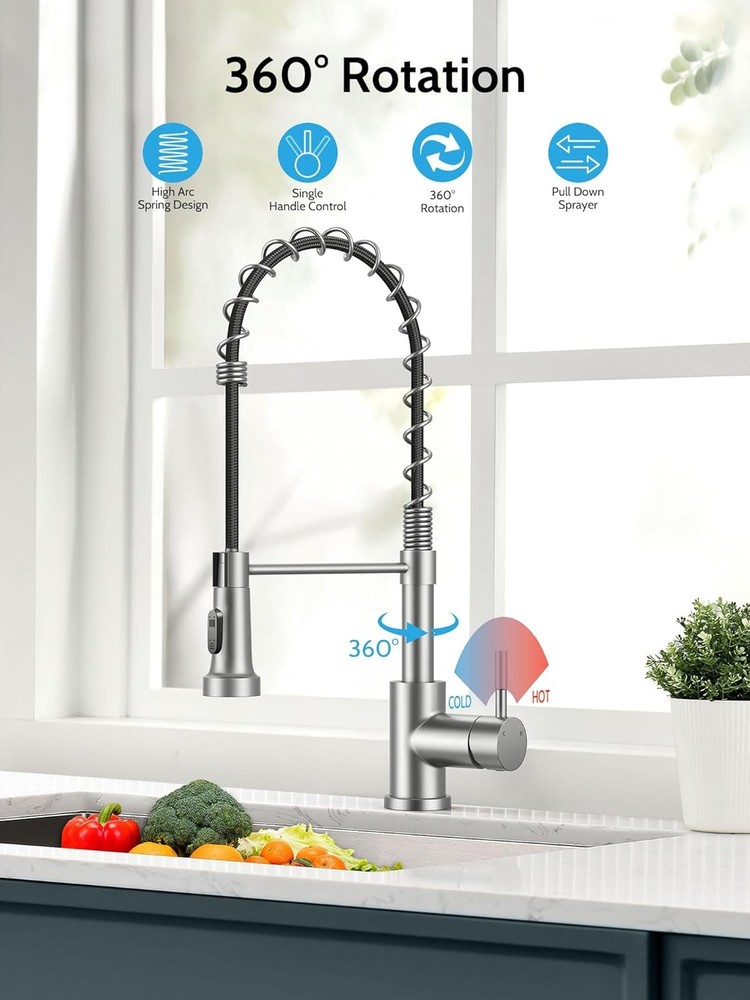 Easy to Install :Installation of kitchen faucets can be completed in 10 minutes, when you have prepared.We can also provide installation videos to help you finish install our brushed nickel kitchen faucets with pull down sprayer better and faster Pull Down Sprayer Design:Use flexible pull-down nozzles up to 17 inches in length. This means that you can expand your cleaning range, while the rotatable faucet body ensures that you can rotate 360 degrees. Dual Mode Sprayer:brushed nickel kitchen faucet with pull down sprayer possess two water modes. The stream mode is used for filling water quickly and accurately into the container without sputtering. The spray mode rinse the dishes for large area Stable and Widely Used : matte brushed nickel kitchen sink faucets with sprayer is suitable for both single hole sink and three hole sinks, fit for RV, Camper, Farmhouse, Bathroom , Outdoor, wet bar, travel trailer, Grifos De Cocina