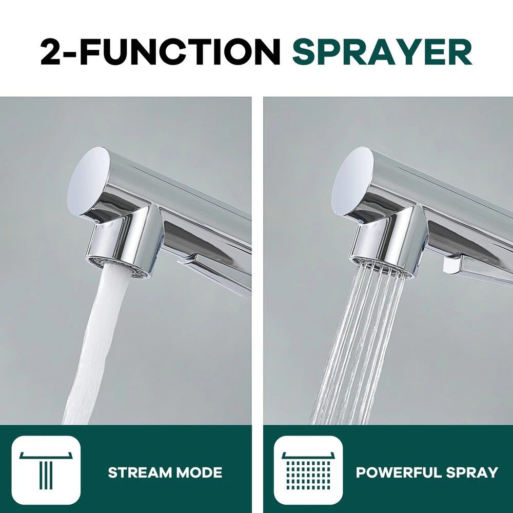 Kitchen Faucets, Chrome Kitchen Faucet with Pull Down Sprayer, Modern Stainless Steel Kitchen Sink Faucet Commercial RV Kitchen Faucet with Deck Plate 2 Modes Spray Spot Resist Product Details Color: Chrome Brand: FROPO MPN: YG-KF-058C UPC: Does not apply EAN: Does not apply Brand: FROPO Recommended Uses For Product: Bar, Bathroom, Kitchen, Outdoor Mounting Type: Deck Mount Finish Type: Polished Material: Stainless Steel Color: Chrome Number of Handles: 1 Hole Count: 1 Handle Type: handle Valve Type: Cartridge Valve Brand: FROPO Recommended Uses For Product: Bar, Bathroom, Kitchen, Outdoor Mounting Type: Deck Mount Finish Type: Polished Material: Stainless Steel Color: Chrome Number of Handles: 1 Hole Count: 1 Handle Type: handle Valve Type: Cartridge Valve Handle Material: Stainless Steel Spout Height: 5.75 Inches Spout Reach: 7 Inches Warranty Type: limited Handle Location: Center Spout Design: Low Arc Hose Length: 19 Inches Is Electric: No Manufacturer: FROPO Product Dimensions: 8"D x 1.75"W x 9"H Part Number: YG-KF-058C Item Weight: 4.44 pounds Item model number: KF-105CP Finish: Polished Batteries Included?: No Batteries Required?: No Date First Available: April 17, 2024 NO WATER LEAKAGE: The pull out kitchen faucet main body and internal piping are made of solid brass with tight joints that won't leak. The rv kitchen faucet can save 30% water. Two SPRAY MODES : The pull-out sprayer on the kitchen sink faucet with TWO spray setting modes (STREAM and SPRAY) for a steady, gentle, splash-free water flow, both of which can be used for different washing requirements. DURABLE FINISH: Our stainless steel kitchen faucet have a 5-layer surface coating that is rust and fingerprint resistant and easy to clean, simply scrub the pull down kitchen faucet with a damp cloth for a clear and neat look. AFTER SALE SERVICE: Feel free to contact us if you have any questions about our kitchen faucet with pull down sprayer, we will solve the problem perfect.
