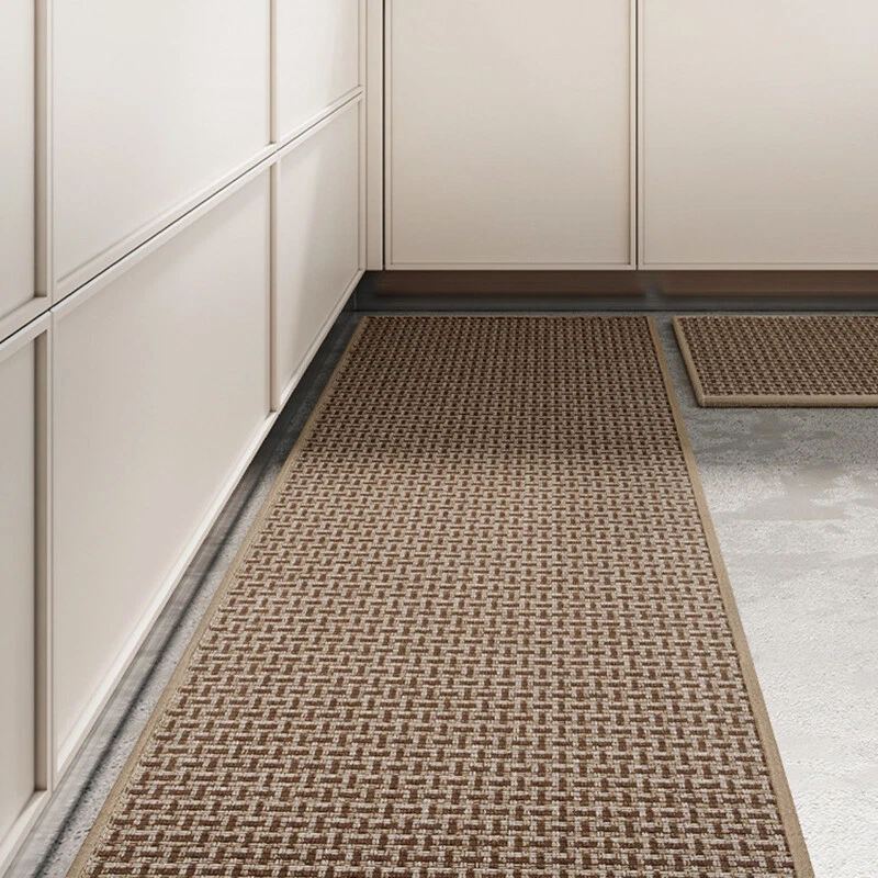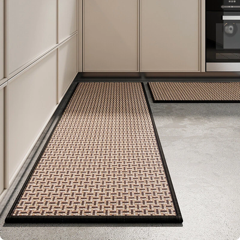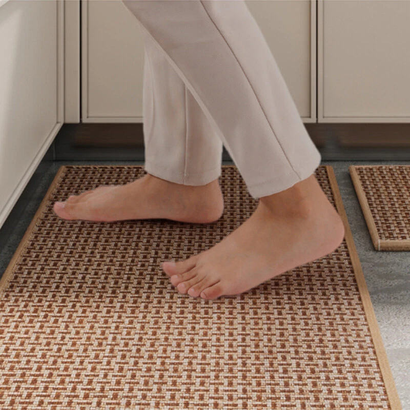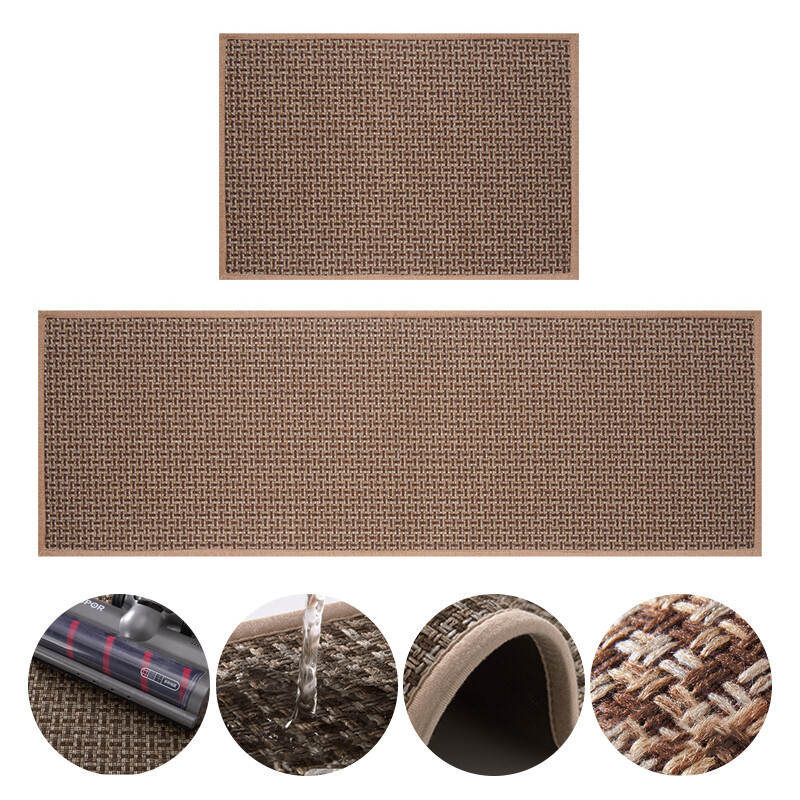 Product Name: Rubber Bottom Kitchen Mat Material: Polyester Color: Brown, Gray, Black Size: 45x70cm/ 1 7.72 *27.56in +45 x120cm/ / 17.72in* 47.24in Space: Kitchen Package included: 1pc 4 5x70cm Mat + 1pc 45x120cm Mat