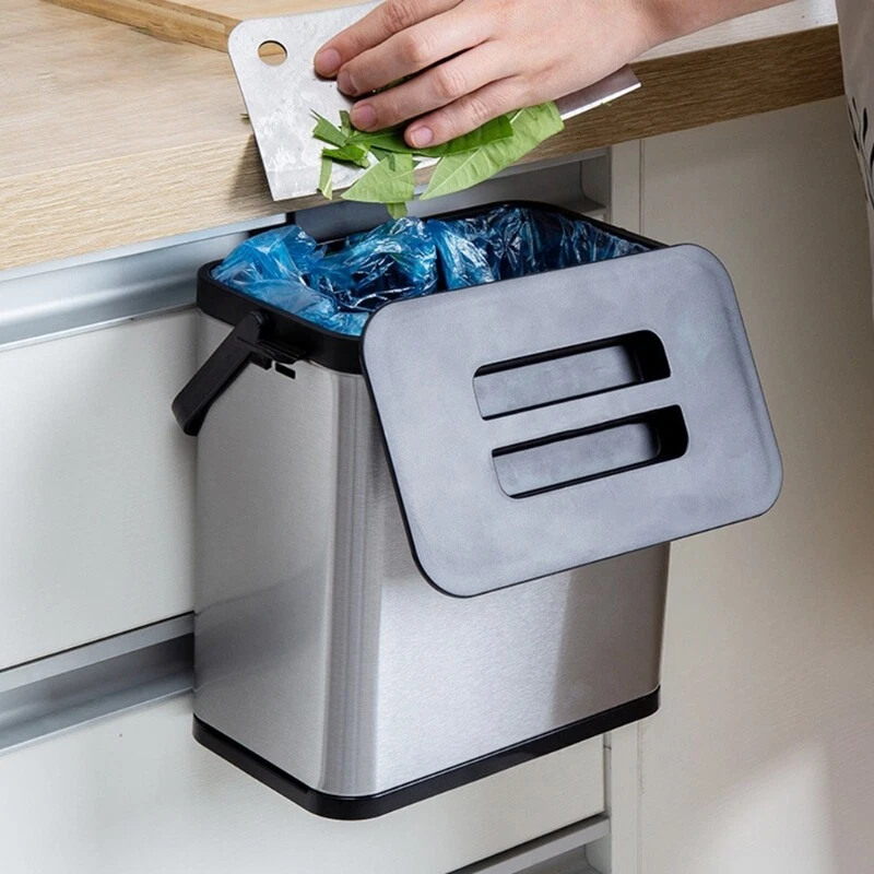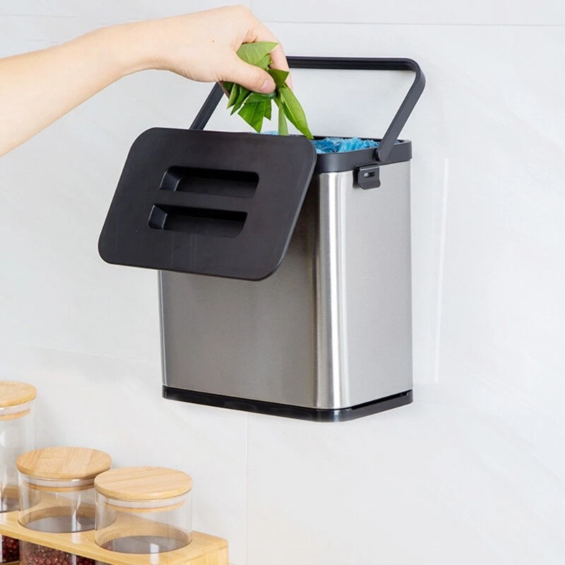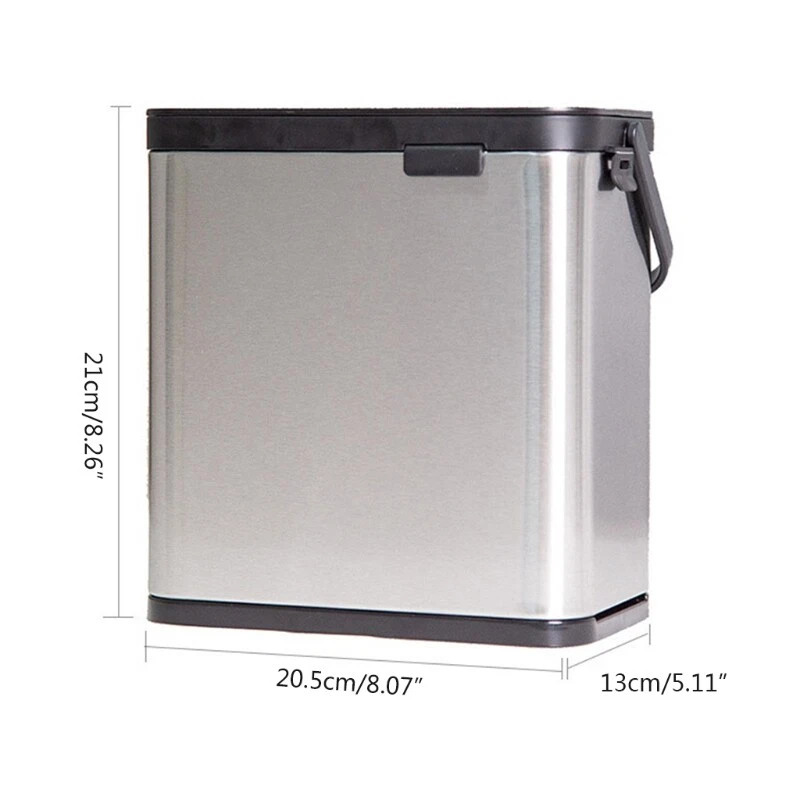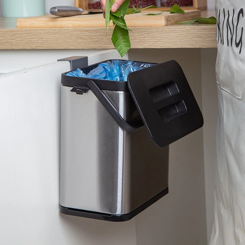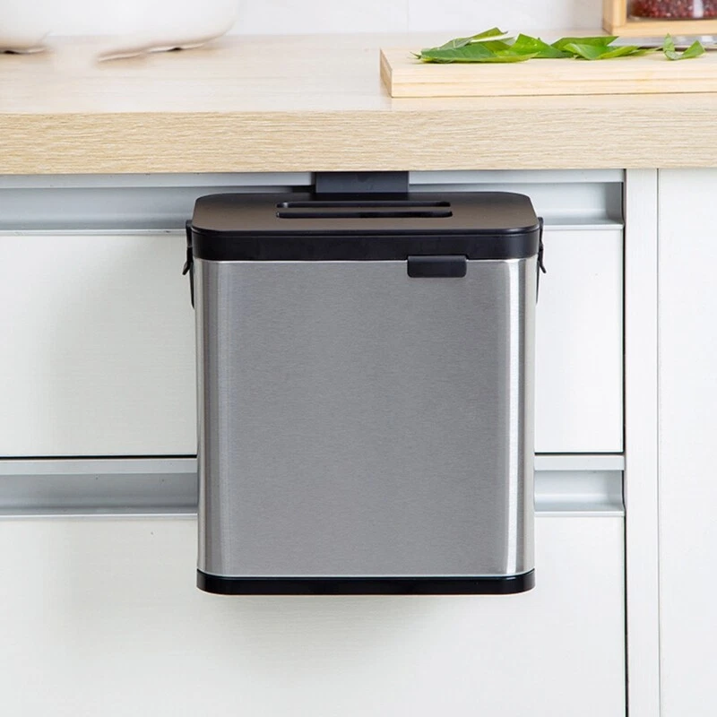 brand new and high quality Features: 3 placement for all your needs: The bin can be hung on the cabinet, adhesive to the door or placed on the table top. The lid can be folded next to the bucket for easy use. This thoughtful is great for use in your home. Removable inner bucket. You can also easily replace the bin bag and clean the bin easily. The lid of the bin prevents the spread of odours. Made of high quality stainless steel and ABS plastic, smudge-proof and durable, easy to clean. The different uses of the bin can be switched as desired, suitable for your kitchen, bathroom, office, bedroom, floor, Specification: Material: ABS+Stainless Steel Color: Silver+Black Size: app. 20.5x13x21cm/8.07x5.12x8.26in Quantity: pc Note: 1cm=10mm=0.39inch No retail package. Please allow 1-3cm error due to manual measurement. pls make sure you do not mind before you bid. Due to the difference between different monitors, the picture may not reflect the actual color of the item. Thank you! Package includes: x Trash Can(other accessories in the picture is not included.)