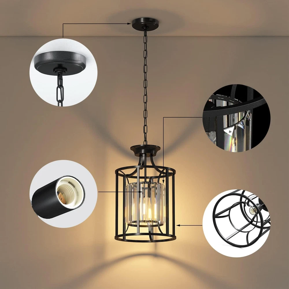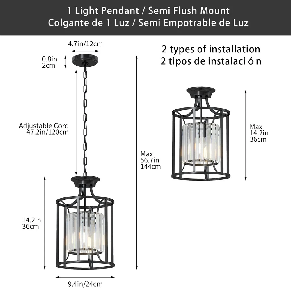 Store New Arrivals Add to Favorite View Feedback Contact Kitchen Island Lighting Black Light Fixture Modern Farmhouse Light Fixtures Ceiling Hanging Lights for Kitchen Pendant Lighting over Island Foyer Light Fixtures Entryway Light Fixture Hanging Crystal Description Item model number 82-V1EB-APMH Light Source Type Incandescent, Halogen, LED Style Industrial,Vintage,Farmhouse,Retro Number of Items 1 Power Source ac Number of Light Sources 1 Country of Origin China Warranty Type Limited Theme Industrial, Vintage, Farmhouse, Retro Lighting Method Downlight Finish Types Black Finished Embellishment Feature Crystal Controller Type Push Button Unit Count 75.2 Ounce Room Type Dinning Room,Bed Room, Living Room, Dining Room, Kitchen Island, Kids, Bathroom, Home Office,Bar. Switch Type Toggle Product Dimensions 9.4 x 9.4 x 66 inches; 4.7 Pounds Material Metal Required Assembly Yes Model Number 82-V1EB-APMH Installation Type Semi Flush Mount Model Name Pendant light fixture Additional Features illumination Specific Uses For Product Balcony Cabinet Deck Driveway Fence Garage Garden Home Pathway Patio Shop Walkway Fixture Type Pendant Light Fixture Ceiling Light Brightness 500 Lumen Material Type Metal Light Color warm white Item Weight 4.7 Pounds Light Fixture Form Pendant Light fixture form Pendant Bulb Base E26 Item Dimensions L x W x H 9.4"L x 9.4"W x 56.7"H Shade Color Black Metal,Transparent Crystal Mounting Type Ceiling Mount Color Black Wattage 60 watts Indoor Outdoor Usage Indoor Shape Round Voltage 110 Volts Control Method Touch Shade Material Metal,Crystal Included Components Shade,Crystal,Canopy Style Name Industrial,Vintage,Farmhouse,Retro Size 9.4 inch Creative Design:Black light fixture combines metal and crystal for a modern yet timeless look. It can be used as either a pendant lights kitchen island, dining room light fixture, hallway light fixtures ceiling, or farmhouse chandelier for entryway. adjustable height,It's perfect for both light fixtures ceiling hanging and ceiling mount light. The black finish gives a contemporary touch to any room. Upgrade your interior design with this stylish and versatile light fixture. Unique Pendant Light:Our black chandelier is more advanced,Unlike the common lantern pendant light,ours made with a combination of crystal and metal for a softer,the crystal helps to diffuse the light so that it is not directly in your eyes, making it more comfortable to look at.This combination creates a style that is both modern pendant light and rustic pendant light at the same time. With this crystal pendant light, you can create a chic and eye-catching look in any room. Bulb Type:The farmhouse chandelier with E26 socket, compatible with Incandescent, LED, CFL and Halogen Bulbs (Not Included), Works up to 60W max. The black light fixture can be easily dimmed when used with dimmable bulbs and compatible dimmers. Easy to install:We have optimized the packaging to make shipping lighter.the modern farmhouse chandelier boasts easy installation,crafted with crystal, metal support, and a hanging chain, simply follow the instructions in the user manual and you'll soon have a stunning crystal chandelier to light up your home. After-sale Service:We firmly believe our black pendant light have good quality. At the same time,we will provide a complete 12-month quality and a 30-day quality . If you have any questions, please feel free to . We specialize in making lamps,Customer satisfaction is our service tenet! Product Description Kitchen Pendant Lighting Over Island Entryway Light Fixture Hanging,Modern Farmhouse Pendant Light Elevate your dining experience with our black dining room light fixture. Crafted from a combination of K9 crystal and sturdy iron, the black pendant light fixtures seamlessly blends style and durability. The sleek black color adds a touch of sophistication to your space.Assembly Takes 20 Minutes. The video showcases the product in use. The video guides you through product setup. The video compares multiple products. The video shows the product being unpacked. Switching Hanging Ceiling Lights Fixtures Comparison Elevate your space with our lantern pendant lights, offering unparalleled lighting control. Crafted with precision and premium materials, these fixtures provide versatile illumination. The unique lantern style infuses your space with both fashion and elegance. whether switched on or off. Crystal Comparison Our farmhouse hanging light fixture stands out with meticulously cut and polished crystals, ensuring enhanced clarity and sophistication. The fine craftsmanship sets our crystals apart, offering a level of luminosity and luxury that distinguishes them from others chandelier light on the market. Support Dimmer Switch, E26 Base Chandelier lighting fixtures support dimmer switches, offering versatility in lighting. compatibility for E26 bulbs, you can effortlessly adjust the brightness to create the perfect ambiance. our fixtures provide the flexibility to tailor the lighting to your preference. Suitable for a wide range of scenarios Versatile and adaptable, crystal pendant lighting fixtures suit various settings seamlessly. From the living room to the bedroom, their flexible designs enhance any space. With quality craftsmanship, they effortlessly blend style and functionality, ensuring a perfect ambiance for diverse scenarios. Carefully Selected Accessories Universal Ceiling Canopy Enhance your kitchen island with our black pendant lights featuring a universal ceiling canopy. Perfect for flat, sloped, arched ceilings, these stylish fixtures blend modern design with adaptability. Compatible E26 Base Elevate your foyer's ambiance with our ceiling-hanging light fixtures. Ideal for a grand entrance, these modern entryway light fixture, compatible with one E26 bulbs, radiate a warm glow. Exquisite and Authentic Crystals Illuminate your space with a modern farmhouse pendant light, featuring exquisite and authentic crystals. This fusion of contemporar