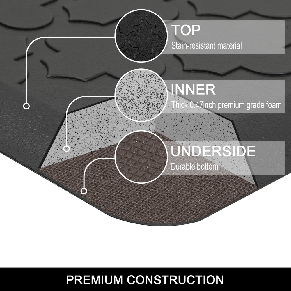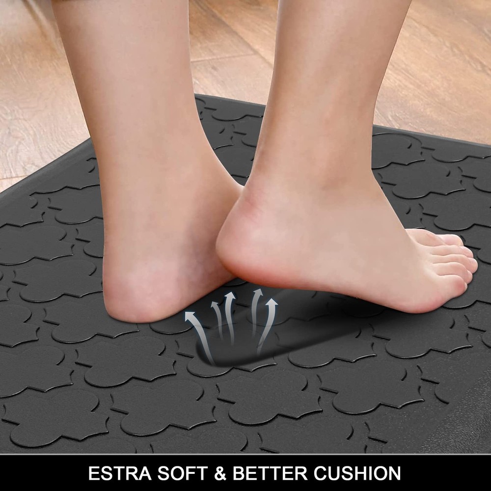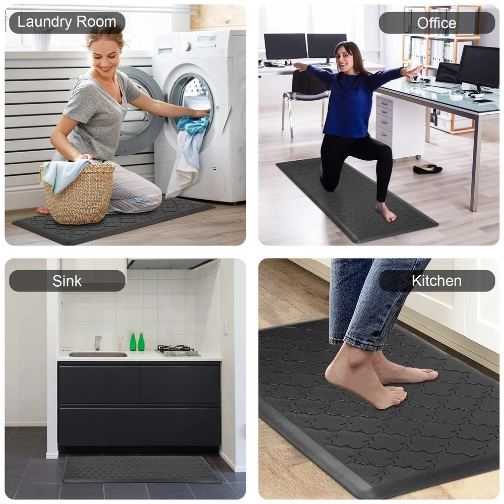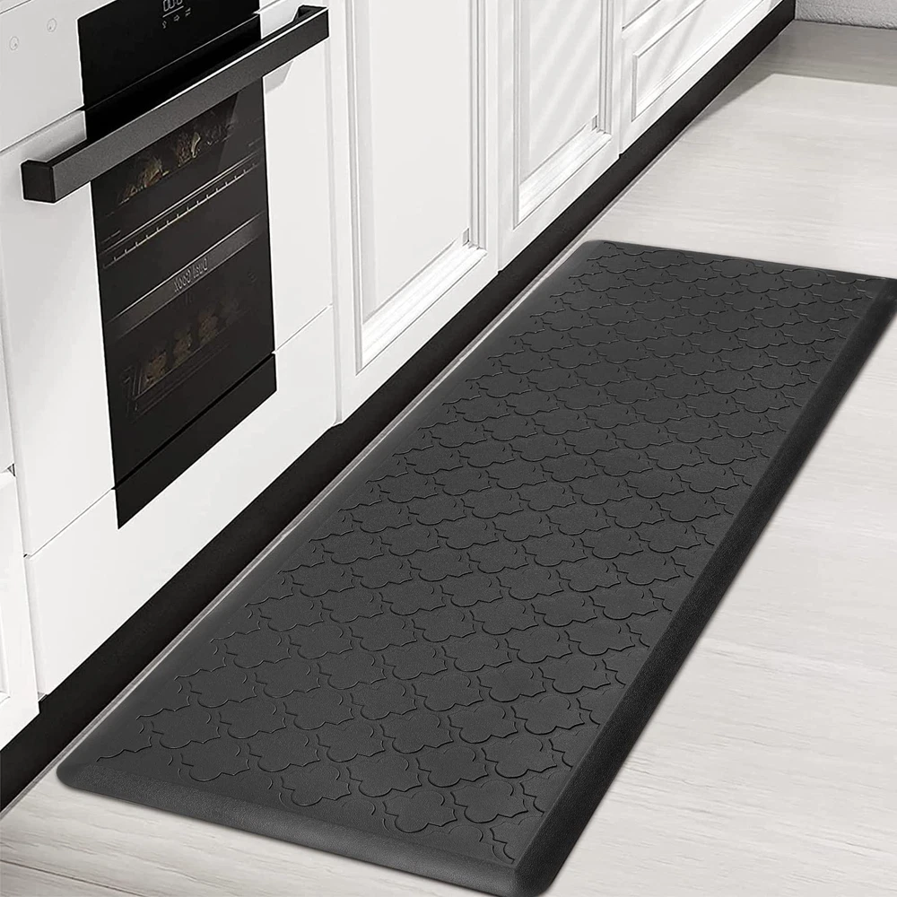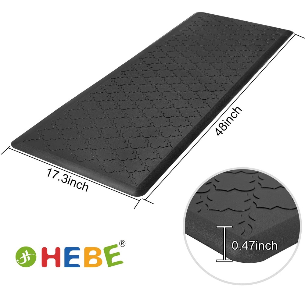 Thick Cushioned Antifatigue Floor Mat: HEBE anti-fatigue kitchen floor mat provides thick, cushioned support to help improve circulation and posture alleviates stress, to ensure that you are able to stand comfortably while working in the kitchen or at any work station. Perfect for hair stylists,cooks and anyone who stands for long periods of time; Comfort Standing Mat: The large anti fatigue laundry room rug runner measures 17.3x48inch. HEBE ergonomically engineered antifatigue kitchen rug runner is made of premium PVC and thick gel foam.The mat is constructed with premium strength material to ensure that it will keep shape with extended and heavy use. Non Slip Kitchen Mat Runner: HEBE cushioned anti-fatigue comfort mat is designed with a unique beveled edge. The water-resistant top area has an attractive texture and the underside is super non-slip bottom, helpful to prevent tripping & slipping. Easy Clean Office Standing Mat: This padded gel foam kitchen floor mat is waterproof ,oil/stain resistant, do not collect dirt or pet hair, easy to clean, can be vacuumed or wiped with a damp cloth or sponge.The waterproof kitchen mats and rugs ensures long-term durability and superior comfort. Versatile Anti Fatigue Comfort Mat: This anti fatigue floor mat provides a large activity area in laundry room, kitchen, office or any other high-traffic place, can be used for multiple surfaces(wood, ceramic, marble, etc). The neutral color matches any decor and it is a great gift for your family if you take good care of your health and well-being.