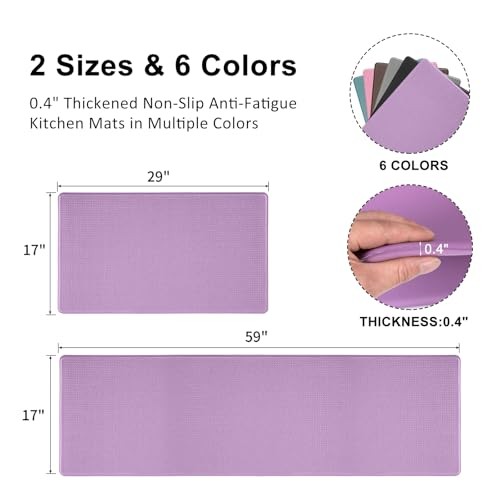 Menu 1. We require immediate payment. 2. We currently accept payment via eBay managed payments only. 3. Once payment is cleared, we will dispatch your shipment within 1-3 business days. Please refer to the "Shipping" tab for more information regarding shipping speed to your destination. Kitchen Mats and Rugs Set of 2 - Cushioned Anti-Fatigue Kitchen Rug for Floor Washable 17"x29" +17"x59", Lightpurple Product description Premium Material: This kitchen mat measures 17"x29" + 17"x59". High quality material prolongs the life of the mat by ensuring that it does not deform easily even after long use. Important note: The color of this product may be slightly different on different computer monitors Cushions Support & Relieves Fatigue: This anti-fatigue non-slip mat is ergonomically designed. High-density foam can provide enough cushioning support, promote circulation and improve posture. It can effectively relieve discomfort whether you are standing for a long time or cooking in the kitchen. Especially suitable for pregnant women. In addition, the thicker kitchen mat can also protect the kitchen utensils from being damaged if they fall down Non-Slip & Multiple Options: The bottom of this washable kitchen rug has a non-slip backing and the top has a light textured pattern to prevent slipping. Before installing, you need to make sure the floor is clean and dry. You can choose according to your preference, t are many colors Easy to Clean: Our kitchen floor mat are waterproof, do not collect and hide dirt. Easy to Clean whether it is oil stains or other liquids. Simply wipe with a damp cloth or sponge, other household cleaners or tools can also be used. Save time and effort, bring you great convenience Suitable for Many Places: Standing desk mat are suitable for use in laundry rooms, front of sinks, offices, bathrooms or kitchens with surface floors such as tile, wood, ceramic, marble, concrete and more. This anti-fatigue kitchen floor mat is waterproof and slip-resistant, has a high degree of safety PLEASE MESSAGE US IF YOU HAVE ANY OTHER QUESTIONS, AND MANY THANKS FOR READING ALL OF THIS. Copyright ©#. All Rights Reserved.