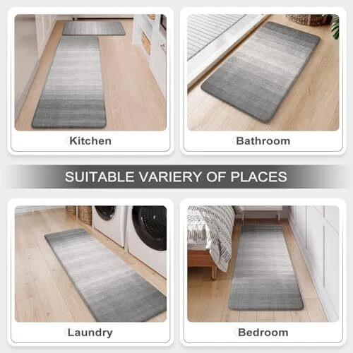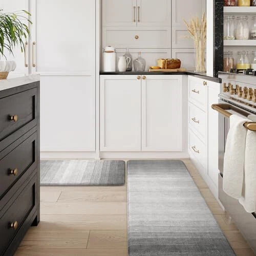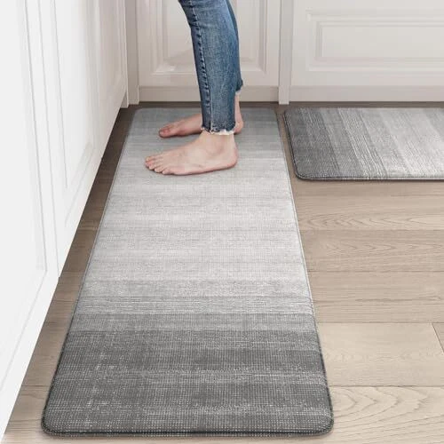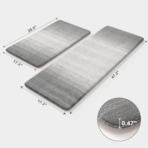 Kitchen Mats for Floor 2 Piece, Kitchen Mats 17.3" x 47"+17.3" x 29" Grey