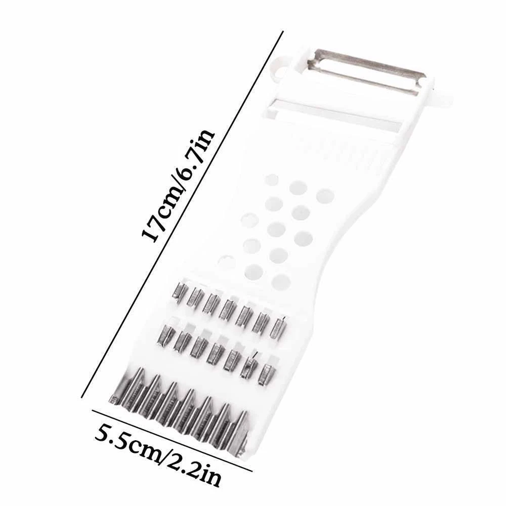 Description Description&Preview shipping&policy Description: Description: Color: White/Red Material: stainless steel+plastic Function: Slicing, wiping silk, cutting mesh flowers, wiping foam Size: 17 * 5.5cm/6.7 * 2.2inch Feature: Dual function: The peeler and shredder has two functions: peeling and shredding, which can complete the peeling and shredding of ingredients in one go, saving time and effort. Diverse applicability: Suitable for peeling and shredding various fruits and vegetables, such as apples, pears, potatoes, carrots, etc., to meet the processing needs of different ingredients. Slicing evenly: The peeler and shredder slice evenly and finely, allowing for precise control of the thickness and shape of the ingredients. Safe and reliable: Design safety protection devices with simple operation. Efficient and economical: The peeling and cutting machine is easy to operate, with high peeling and cutting efficiency, saving kitchen processing time and improving work efficiency. Reliable quality: Made of high-quality stainless steel, food grade plastic and other materials, sturdy and Strong durability, easy to clean and maintain. Space saving: compact design, takes up less space, is easy to store and carry, suitable for home kitchen use. Attention: Due to manual measurement, there may be a 1-3mm error in product dimensions. The product includes: 1*Peeling and cutting machine Preview: Thank you for your purchase Problems? You can follow below process to contact us. There is a time zone difference,but we will do our best to quickly response to your questions: Shipping ● We will arrange shipping for you within 24 Hours after payment cleared except the holidays. ● We always send the item to the address you give us on Payoneer to ensure the security of the item. If you have changed your address, or want us to ship to another address, please change to the new address when you pay us with Payoneer, otherwise we will not be responsible if the package is lost. Payments We accepts Payoneer only If you have any questions about the payment,please contact us through eBay message. Import Duties In case some duty is due Upon delivery, it is your responsibility to meet that expense and this may cause delays to delivery schedule and you may have to pickup goods at the customs office. Terms & Conditions By bidding on this item,the Buyer agrees to all of the terms and conditions as outlined in this listing .please ensure to read and agree to All eBay terms and Conditions before bidding. All pictures are for illustration purpose only and Colours may vary slightly. Our store obeys all eBay Rules and Policies. Returns Policy To Return an item you must contact us and take photos of your item to clearly show any damage or unusual aspects of it. Approved returns will be subject to inspection on arrival. Items must be returned in original condition with all original packaging. All shipping and handing charges are non-refundable Return delivery costs are the responsibility of the buyer. We will cover the cost if sending replacement/repaired items. Within 7 days after receiving your products, we offers a no-hassle 7 day exchange/replace only if your items are found to be defective by manufacturer.