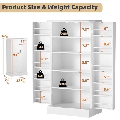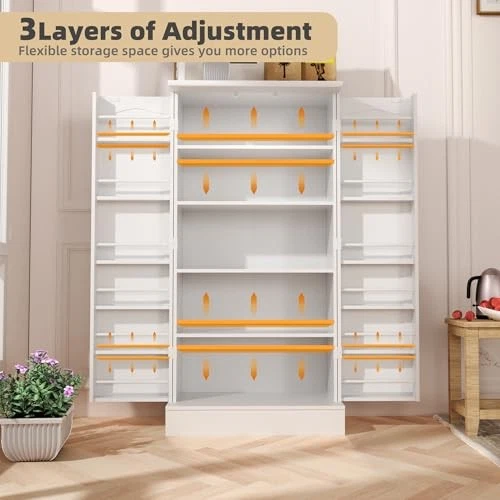 Return Policy Fast Delivery Trusted seller Kitchen Pantry Cabinet, Pantry Storage Cabinet with Adjustable Shelves and Drawer, Sideboard Buffet Cupboards Storage Shelf for Home Office Use (White, 16" D x 24" W x 47" H) Product Description ??【Fashion Unique Design】The combination of barn door and black iron mesh drawer, the combination of black and white, and the black metal arrow border and handles, this kitchen storage cabinets is a strong rural style! Whether your home is decorated in a modern or retro style, this food pantry cabinet fits perfectly and reflects your extraordinary taste! ??【Large Storage Space】This pantry cabinets for kitchen storage measure features a Drawer and multi-level shelf design with two 6-level shelves and one 5-level compartment, 8 shelves that can be adjusted in 3 levels to meet your individual needs, ideal for storing household items, small appliances, cookware and various kitchen items for a clean and tidy kitchen. ??【Stable & Environmental friendly】This food pantry cabinet for kitchen, made of fiberboard, have an elegant smooth white finish that is not only Waterproof but also rust-proof, with a widened and weighted base giving it more stability. It is worth mentioning that the paint we use is environmentally friendly, so you don't have to worry about toxic or irritating odors. ??【Multi-function & Easily Assemble】This elegant kitchen storage pantry cabinet has a large storage space, it can provide additional storage space in the bedroom, bathroom, kitchen or hallway, etc., beautiful and functional. At the same time you don't have to worry about assembly, all accessories are marked with numbers and t will be a detailed installation video on our product page. ??【Servise Guarantee】You can get a food pantry cabinet, the perfect piece of furniture for your living room Kitchen and dining room. Please contact us if you received our pantry with any defects or if you have any problems installing it. We will get back to you within 24 hours. So you can buy our kitchen cabinet without any worries. Shipping Returns Payment Shipping Shipping is FREE to all addresses other than APO/PO boxes in the lower 48 states. All our stock ships from US-based warehouses. Shipped via USPS or UPS (depending on location and package weight) Unless stated otherwise, all orders will ship within 24-72 hours of your payment being processed. Check our feedback to see the great reviews of FAST shipping we offer. Returns Seller does not accept returns Payment We currently accept payment via eBay managed payments only. Once payment is cleared, we will dispatch your shipment within 1-3 business days. Please refer to the "Shipping" tab for more information regarding shipping speed to your destination.