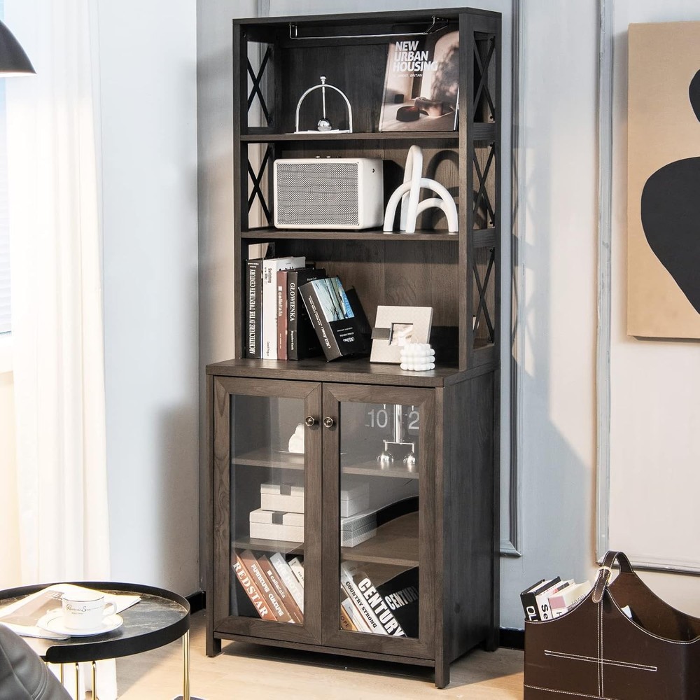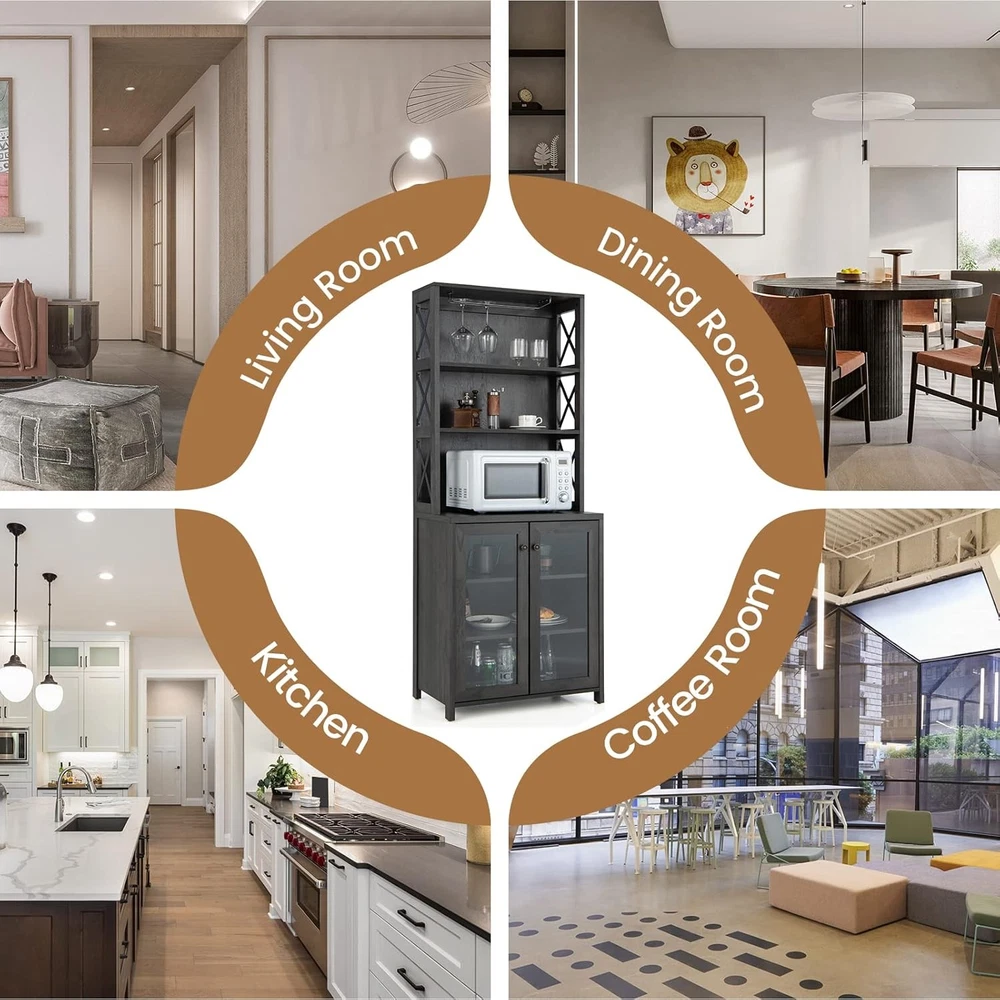 Product Description About this item [Organization You Need to Handle the Day]: Look at this kitchen storage cabinet! The 2 open shelves, the spacious countertop and the cabinet with 3 tier shelves inside, all of which can save you from the mess after preparing a meal for your family. As the kitchen hutch greatly expands the storage space, you can say goodbye to clutters! [Details that Do Matter]: If you are comparing cabinet with others, it’s time to focus on the details! Nowhere to hold the fragile glasses? Hang them on the stemware rack at the top! What about the power cord of the microwave oven? There’s a cable hole to help you handle it! Moreover, the second shelf in the cabinet can be adjusted to 4 positions. And then... [Relax! It’s Tall Yet Stable]: Not like those wobbly tall cabinets with potential safety hazard. The pantry cabinet comes with an anti-toppling device--a kit of strap and expansion bolts to help you anchor the buffet cabinet to the wall. And there are foot pads at the base to serve as floor protector. [A Matching Style Also Matters]: if you don’t want to give your kitchen a makeover. The rustic wood grain, understated color and cross pattern decorations make the buffet with hutch a very presence of the farmhouse style, and somehow it just goes well with different decorations. Thus, feel free to add this buffet sideboard to your kitchen, dining room and living room! [Quality We Care]: The kitchen hutch storage cabinet is made of premium engineered wood and transparent tempered glass, thus to serve you for long without doubt. What’s also worth mentioning is that the anti-collision rubber pads fitted on the interior shelf reduce the “clang” sound and the damage to the glass of each closing. On Aug 14, 2025 at 20:26:15 PDT, seller added the following information: