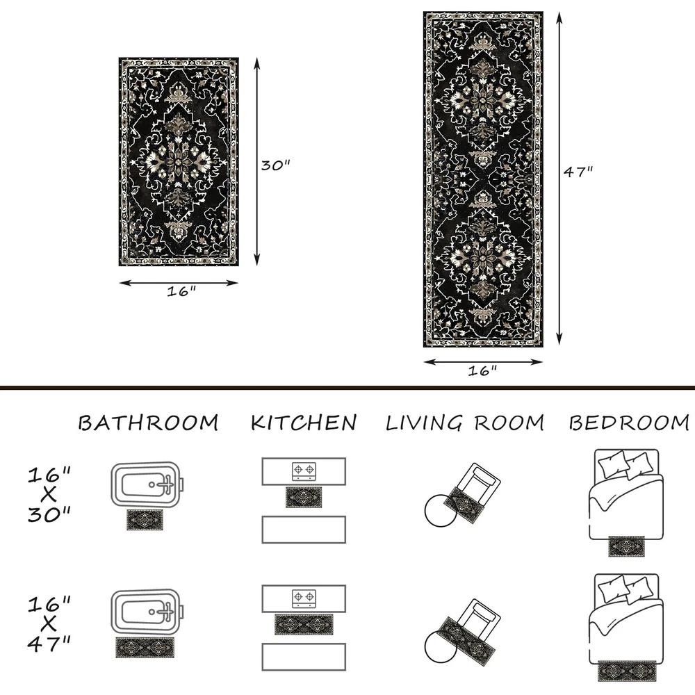 【Perfect Package】: 2 piece non slip washable kitchen rugs set, measure 16"x30"+16"x47", 0.3" thickness never stuck the door. The perfect size of washable runner rugs for floor makes it suitable for most kitchen areas, and more joy and comfort to your cooking time. 【Non-skid Rubber Backing】: The top of kitchen runner rugs are designed with attractive texture while the bottom are made of non-slip material so that the washable runner rug does not move around. Anti fatigue mat kitchen with a unique beveled edge that can prevent tripping and slipping. 【Durable】:Upgrated graininess polyester surface, comfortable to stand on. Heavy duty kitchen carpet is durable enough to against deformation for long time use. 【Multi-purpose】: Our bohemian kitchen mat set of 2 are perfect mat to stand in front of sink to do cleaning or prepping meals. In addition, this washable kitchen rugs non slip can also be used for living room,laundry room , bedroom, meeting room, study room, corridor, balcony, sliding room, standing desk mat for office, indoor & outdoor etc. 【Easy to Clean】: Floor mats for house will not collect the pet hair. Clean it with vacuum cleaner normally. Simply wipe off the dirt and dust with a damp cloth or vacuum. Simply machine washable for a new look.