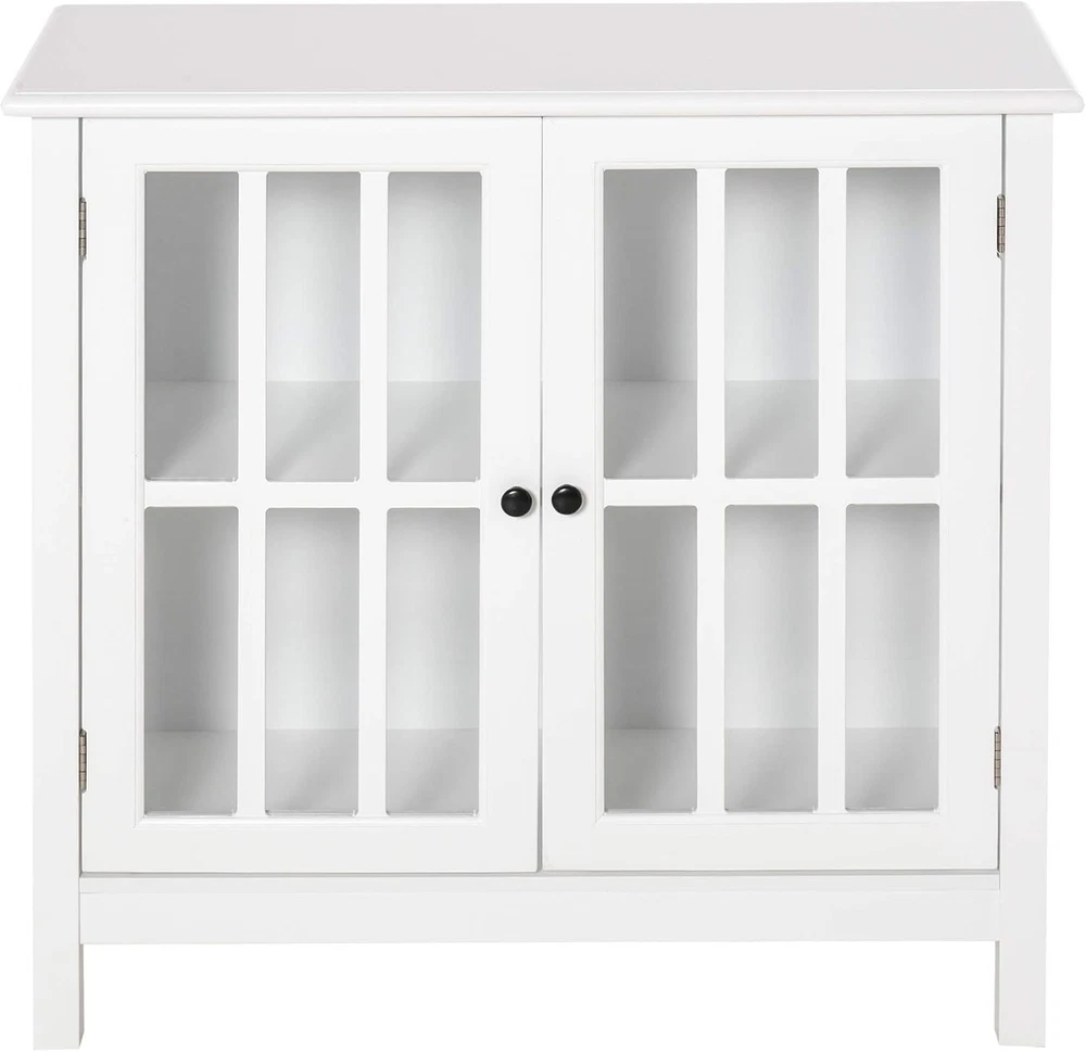 Product Description Add storage space to your home without sacrificing elegance and harmony. This HOMCOM sideboard features a beautiful design with framed glass doors and white MDF frame that will easily match the rest of your furniture and decoration. It features a spacious countertop and a large divided interior space with a central shelf. Ideal for use as an auxiliary cabinet, console for your TV or as a sideboard for the kitchen or home entrance. Features: - Multifunctional furniture that offers extra storage space in any corner of your home - Its design makes it ideal as auxiliary furniture in the dining room, kitchen, living room or other small spaces that need extra storage - For use as buffet, storage cabinet or TV console - Framed glass doors allow you to visualize your interior while protecting dishes or various items from dust accumulation - Framing doors simulating a window frame, adds elegance and modernity to the whole - Made of MDF made of wood and glass, it is a sturdy and easy to maintain furniture - Includes safety anti-roll device to attach to the wall and prevent overturning or wobbling - Assembly required ● Important Note:We do not ship to the Canary Islands, Ceuta and Melilla, or to the Azores and other islands of Portugal Specifications: - Colour: white - Material: MDF and glass - Total measurements: 80x36.5x76 cm (LxWxH) - Interior dimensions of the cabinet: 68,5x30,5x30/28,5 cm (LxWxH) - Maximum load: 50 kg (total) and 10 kg (shelf) - Reference: 838-063 - 1 x Sideboard - 1 x Instruction Manual On Aug 12, 2025 at 00:14:05 PDT, seller added the following information: