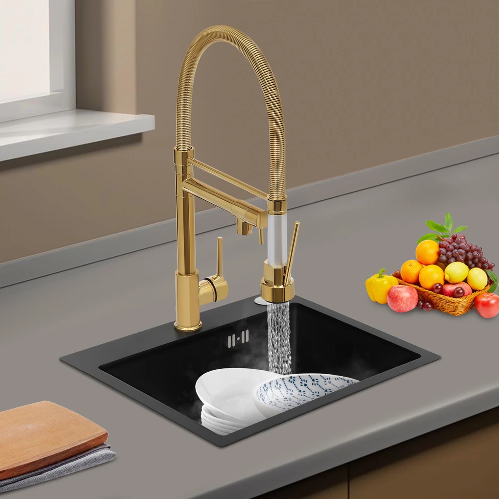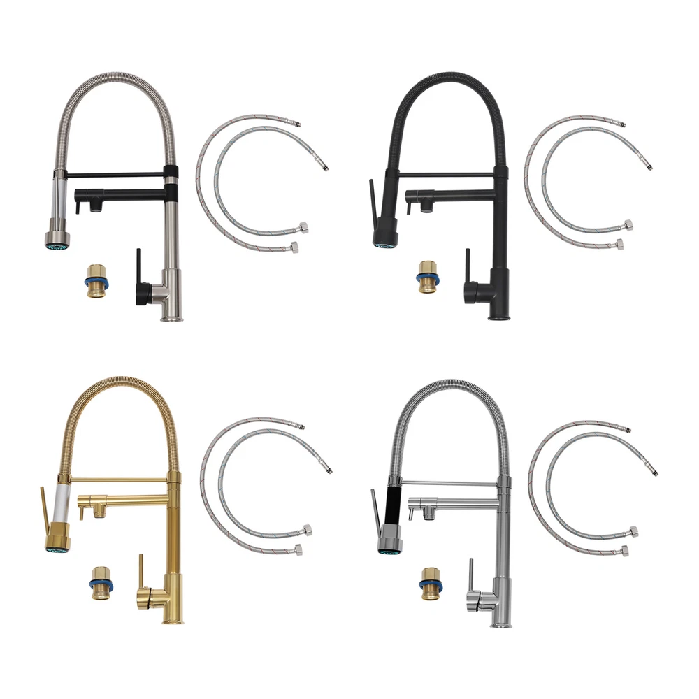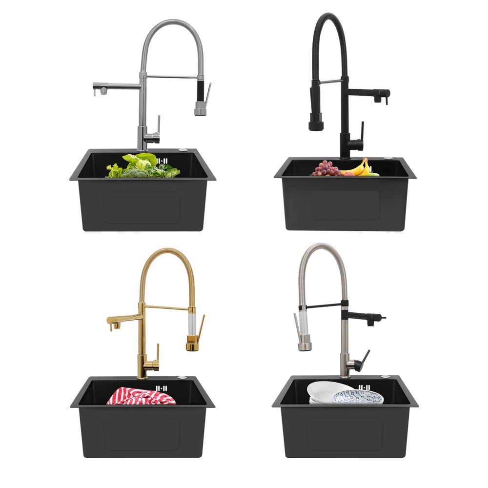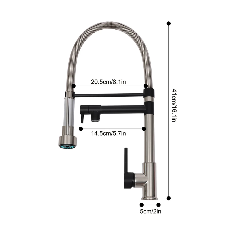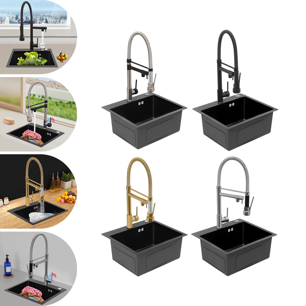 Specification Color: Titanium Gold/Black/Silver Material: Brass, Stainless Steel, Ceramic and Silicone Surface Treatment: Vacuum Plating/Electroplated/Brushed/Baking Paint Assembly Required: Yes Mount Type: Sink-mounted Interface: G1/2inch Rotation: 360° Fix Rod Length: 20.5cm/8.07in Installation Hole Diameter: 5cm/1.97inch Product Overall Height: 41cm/16.14inch Gross Weight: 2.5kg/5.5lbs Net Weight: 2kg/4.4lbs Package Size: 58.5*29.5*5.9cm/23.03*11.61*2.32inch Package Included 1* Kitchen Tap 2* Hoses 1* English Installation Manual Other Accessories for Installation Kitchen Sink Single Handle Stainless Steel Faucet with Pull Down Sprayer Description An excellent kitchen tap is not only an elegant gift of life like a spring, but also a flexible assistant in cooking and a creator of a clean environment. It not only gives you pure and healthy life enjoyment but also in the cooking of food kitchen territory and the pursuit of freshness and cleanliness in the bathroom space, weaving the double rhythm of convenience and elegance. Key Features Build to Last: The high-quality stainless steel and brass with a vacuum plating/baking paint/brushed/electroplated process ensures high rigidity and durability, making it ideal for kitchen and bathroom use. Thoughtful Design : It comes with a buckle design for continuous water dispensing, giving you the freedom to wash items without having to keep pressing the spray head, while the height-appropriate stand provides more comfort and safety. Hot and Cold Use: You can control the water temperature and water flow through a single handle, which is easy and convenient. Comfortable Experience: Its air bubbler can make the water flow more smoothly and reduce noise and water consumption, providing you with fine and uniform water without splashing. In addition, the spray mode and stream mode allow you to enjoy a comfortable washing experience. Enhance Your Relationship: The faucet with a pull-down sprayer and separate spout can be turned on at the same time. If your loved one or roommate prepares dinner or does the dishes with the sprayer, you can do what you want with the other sprayer, saving time and increasing intimacy. Compact Spring: The spring design makes the product more flexible to use, taking into account 360 degrees of rotation and 360 degrees of bending, which in turn facilitates you to change the curvature of the hose with less effort, and giving your kitchen tap a full range of washes. Easy to Clean: Thanks to its smooth surface and simple structure, you can clean it with a damp rag or water. Plus, the silicone spout makes it possible to clear clogs with a flick of your hand! Quality Service: We stand behind all our guests and look forward to assisting you with your purchase. It is our pleasure to answer your confusion and questions. The end of the story between us is definitely not "we sell and you buy" . Details Ceramic Valve Core: The sturdy and durable ceramic valve core can effectively prevent water leakage, improv e the stability of the faucet, and reduce the scale. Flexible Sprayer Stand&Faucet: They can be rotated 360° for convenient use and space-saving. Standard G1/2 Interface: The standard G1/2-inch interface makes this product suitable for most water supply systems. Practical Hoses: They provide you with easy access to a water source for hot and cold use. Application It is suitable for single and double sinks of different shapes in homes, restaurants, shopping centers, schools, companies, hotels, kitchens, clinics, hospitals, KTVs, subway stations, bathrooms, and more. It is suitable for washing pots and pans Specification Color: Titanium Gold/Black/Silver Material: Brass, Stainless Steel, Ceramic and Silicone Surface Treatment: Vacuum Plating/Electroplated/Brushed/Baking Paint Assembly Required: Yes Mount Type: Sink-mounted Interface: G1/2inch Rotation: 360° Fix Rod Length: 20.5cm/8.07in Installation Hole Diameter: 5cm/1.97inch Product Overall Height: 41cm/16.14inch Gross Weight: 2.5kg/5.5lbs Net Weight: 2kg/4.4lbs Package Size: 58.5*29.5*5.9cm/23.03*11.61*2.32inch Package Included 1* Kitchen Tap 2* Hoses 1* English Installation Manual Other Accessories for Installation Notes Please install it in strict accordance with the instructions and pay attention to the safety precautions inside. Please allow the slight color difference caused by the shooting light and the 1-3cm error due to manual measurement. Please make sure you do not mind before you order. Payment Delivery details Terms of sales About us Contact us Payment We accept ebay payment 。 Fees such as import duties, taxes are not included in the item price or shipping costs. These charges are the buyer's responsibility. Delivery details Shipping: 2-9 working days to: USA Terms of sales We maintain high standards of excellence and strive for hundred percent customer satisfaction. Feedback is very important to us. We hope that you contact us immediately before you give neutral or negative feedback, so that we can address your concerns. It is impossible to address issues if we do not know about them! About us Your satis faction is our ultimate goal. We work hard to earn your trust and future business. Our certified technicians have tested each item before shipping. The unit comes with 1 year limited warranty on all manufacturing defects. a) If you receive a defective item, you may return it or ask for a discount. Please contact us within 14 days after you receive the package. b) What you returned must be intact and in its original packaging as re? u. Customer is responsible for shipping costs of the returned item. c) We will cover the cost of shipping back t with the shipping rate indicated in the registration page. We will send you a new unit or refund the full payment you paid. Thank you. Contact us Business Hour Business Hour: Monday To Friday: 8:30 AM to 5:00 PM (Beijing China time) Due to time zones, our reply to your questions may not be immediately. But within above working 