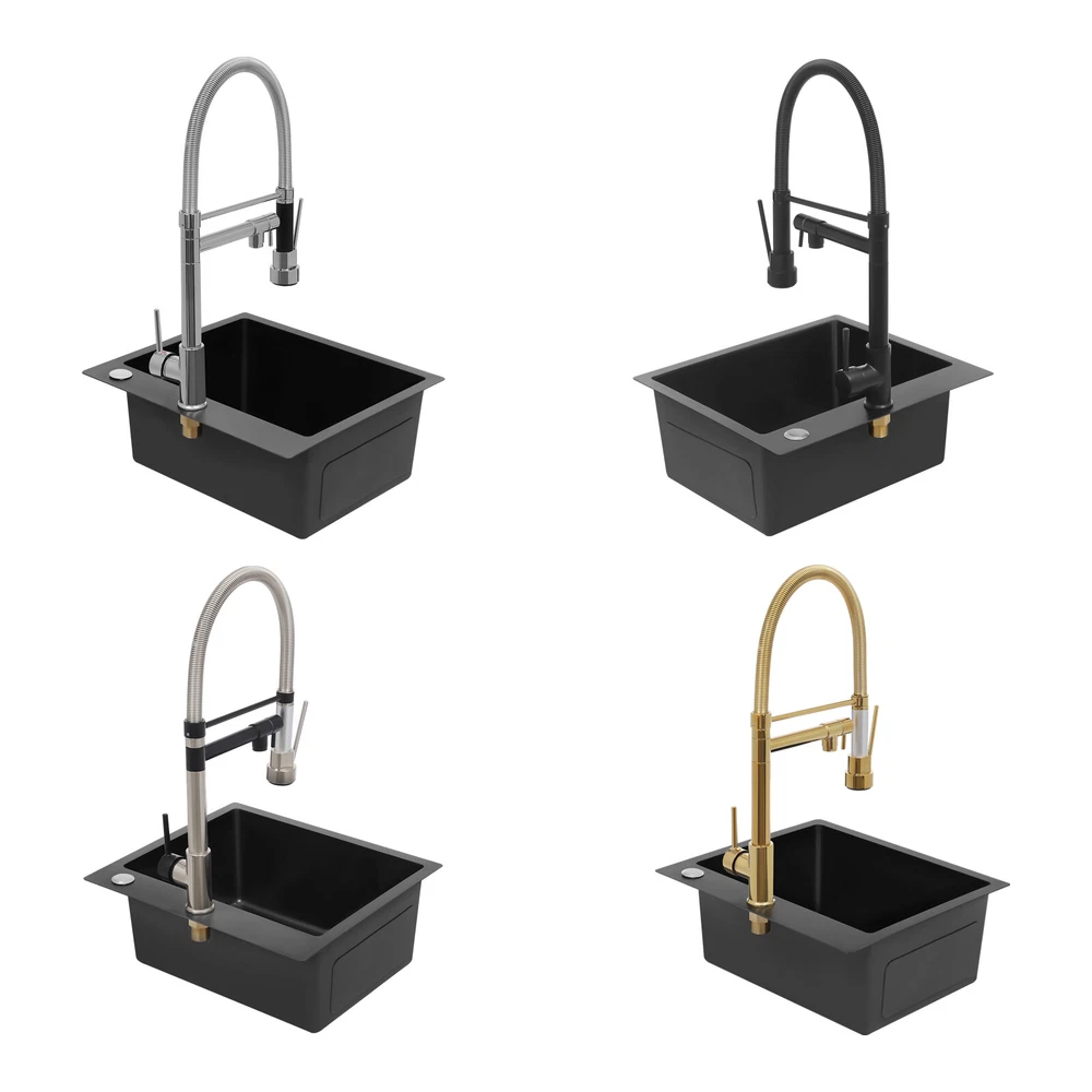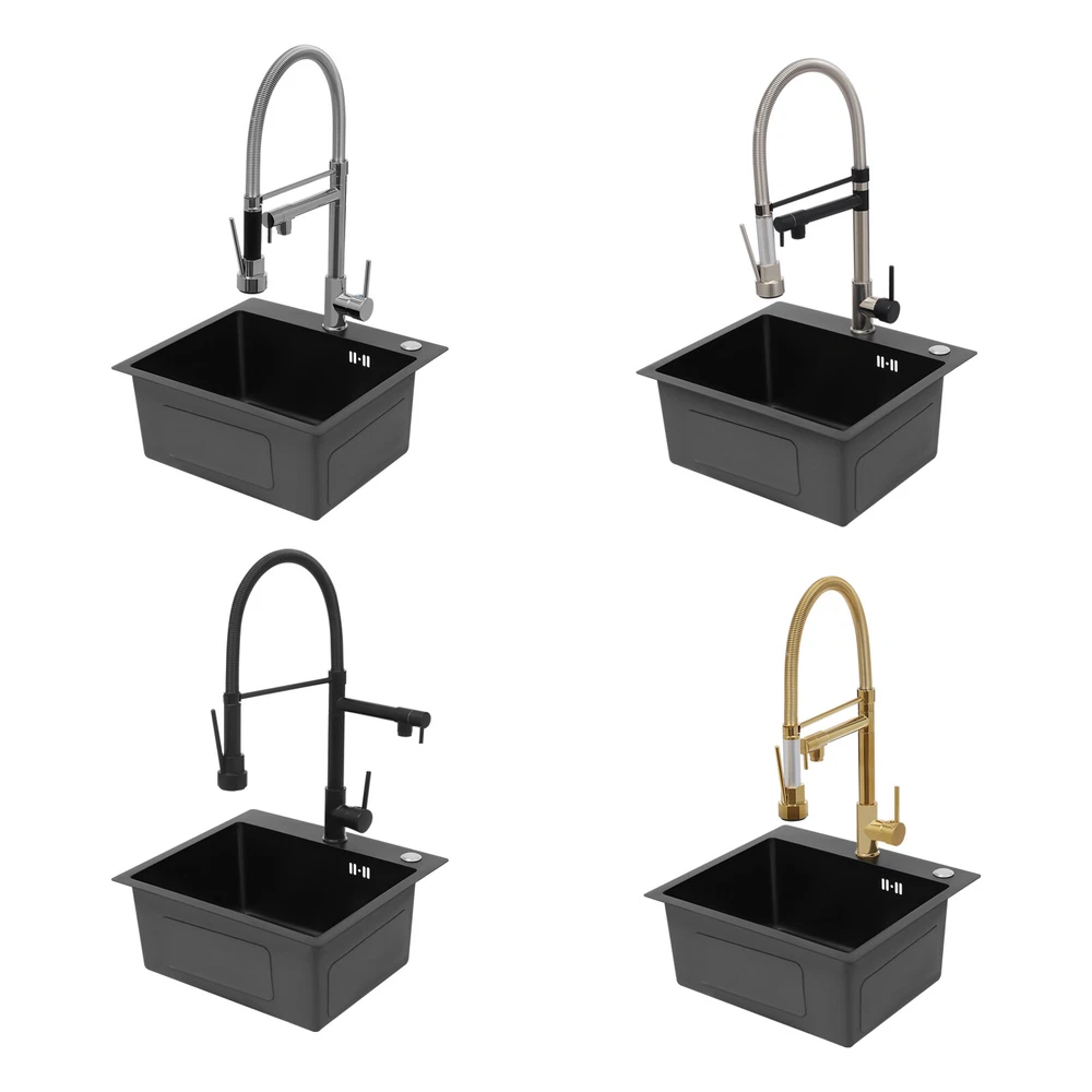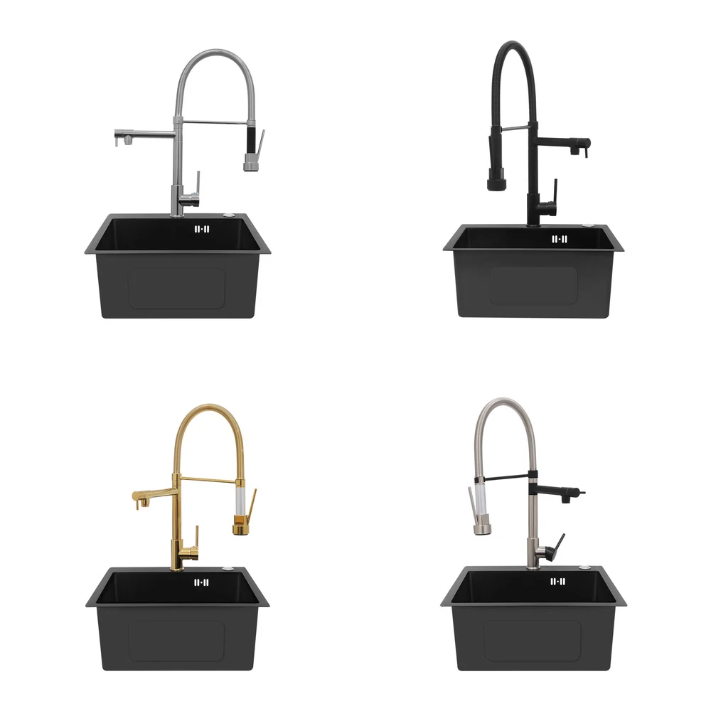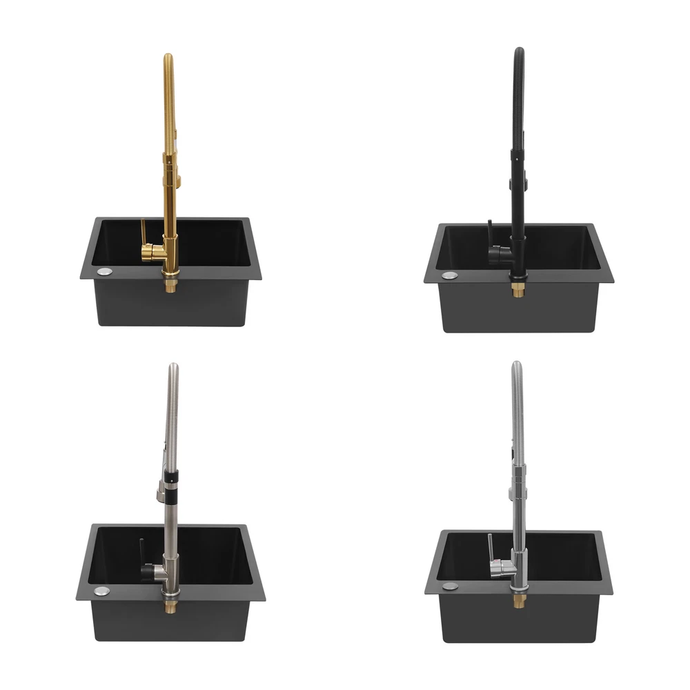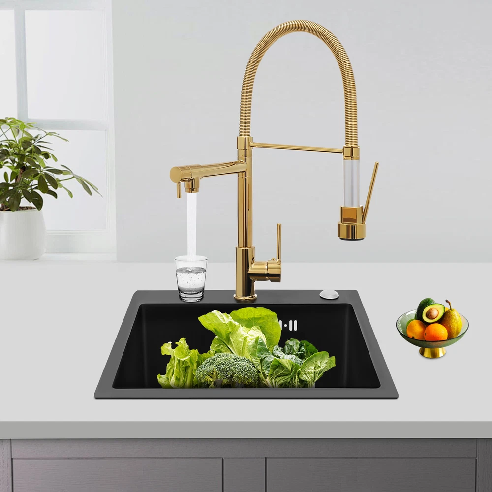 Specification Color: Titanium Gold/Black/Silver Material: Brass, Stainless Steel, Ceramic and Silicone Surface Treatment: Vacuum Plating/Electroplated/Brushed/Baking Paint Assembly Required: Yes Mount Type: Sink-mounted Interface: G1/2inch Rotation: 360° Fix Rod Length: 20.5cm/8.07in Installation Hole Diameter: 5cm/1.97inch Product Overall Height: 41cm/16.14inch Gross Weight: 2.5kg/5.5lbs Net Weight: 2kg/4.4lbs Package Size: 58.5*29.5*5.9cm/23.03*11.61*2.32inch Package Included 1* Kitchen Tap 2* Hoses 1* English Installation Manual Other Accessories for Installation Kitchen Sink Single Handle Stainless Steel Faucet with Pull Down Sprayer Description An excellent kitchen tap is not only an elegant gift of life like a spring, but also a flexible assistant in cooking and a creator of a clean environment. It not only gives you pure and healthy life enjoyment but also in the cooking of food kitchen territory and the pursuit of freshness and cleanliness in the bathroom space, weaving the double rhythm of convenience and elegance. Key Features Build to Last: The high-quality stainless steel and brass with a vacuum plating/baking paint/brushed/electroplated process ensures high rigidity and durability, making it ideal for kitchen and bathroom use. Thoughtful Design : It comes with a buckle design for continuous water dispensing, giving you the freedom to wash items without having to keep pressing the spray head, while the height-appropriate stand provides more comfort and safety. Hot and Cold Use: You can control the water temperature and water flow through a single handle, which is easy and convenient. Comfortable Experience: Its air bubbler can make the water flow more smoothly and reduce noise and water consumption, providing you with fine and uniform water without splashing. In addition, the spray mode and stream mode allow you to enjoy a comfortable washing experience. Enhance Your Relationship: The faucet with a pull-down sprayer and separate spout can be turned on at the same time. If your loved one or roommate prepares dinner or does the dishes with the sprayer, you can do what you want with the other sprayer, saving time and increasing intimacy. Compact Spring: The spring design makes the product more flexible to use, taking into account 360 degrees of rotation and 360 degrees of bending, which in turn facilitates you to change the curvature of the hose with less effort, and giving your kitchen tap a full range of washes. Easy to Clean: Thanks to its smooth surface and simple structure, you can clean it with a damp rag or water. Plus, the silicone spout makes it possible to clear clogs with a flick of your hand! Quality Service: We stand behind all our guests and look forward to assisting you with your purchase. It is our pleasure to answer your confusion and questions. The end of the story between us is definitely not "we sell and you buy" . Details Ceramic Valve Core: The sturdy and durable ceramic valve core can effectively prevent water leakage, improv e the stability of the faucet, and reduce the scale. Flexible Sprayer Stand&Faucet: They can be rotated 360° for convenient use and space-saving. Standard G1/2 Interface: The standard G1/2-inch interface makes this product suitable for most water supply systems. Practical Hoses: They provide you with easy access to a water source for hot and cold use. Application It is suitable for single and double sinks of different shapes in homes, restaurants, shopping centers, schools, companies, hotels, kitchens, clinics, hospitals, KTVs, subway stations, bathrooms, and more. It is suitable for washing pots and pans Specification Color: Titanium Gold/Black/Silver Material: Brass, Stainless Steel, Ceramic and Silicone Surface Treatment: Vacuum Plating/Electroplated/Brushed/Baking Paint Assembly Required: Yes Mount Type: Sink-mounted Interface: G1/2inch Rotation: 360° Fix Rod Length: 20.5cm/8.07in Installation Hole Diameter: 5cm/1.97inch Product Overall Height: 41cm/16.14inch Gross Weight: 2.5kg/5.5lbs Net Weight: 2kg/4.4lbs Package Size: 58.5*29.5*5.9cm/23.03*11.61*2.32inch Package Included 1* Kitchen Tap 2* Hoses 1* English Installation Manual Other Accessories for Installation Notes Please install it in strict accordance with the instructions and pay attention to the safety precautions inside. Please allow the slight color difference caused by the shooting light and the 1-3cm error due to manual measurement. Please make sure you do not mind before you order. Payment Delivery details Terms of sales About us Contact us Payment We accept ebay payment 。 Fees such as import duties, taxes are not included in the item price or shipping costs. These charges are the buyer's responsibility. Delivery details Shipping: 2-9 working days to: USA Terms of sales We maintain high standards of excellence and strive for hundred percent customer satisfaction. Feedback is very important to us. We hope that you contact us immediately before you give neutral or negative feedback, so that we can address your concerns. It is impossible to address issues if we do not know about them! About us Your satis faction is our ultimate goal. We work hard to earn your trust and future business. Our certified technicians have tested each item before shipping. The unit comes with 1 year limited warranty on all manufacturing defects. a) If you receive a defective item, you may return it or ask for a discount. Please contact us within 14 days after you receive the package. b) What you returned must be intact and in its original packaging as re? u. Customer is responsible for shipping costs of the returned item. c) We will cover the cost of shipping back t with the shipping rate indicated in the registration page. We will send you a new unit or refund the full payment you paid. Thank you. Contact us Business Hour Business Hour: Monday To Friday: 8:30 AM to 5:00 PM (Beijing China time) Due to time zones, our reply to your questions may not be immediately. But within above working 