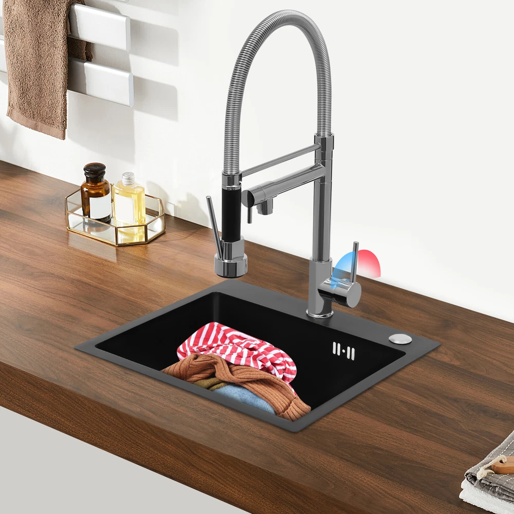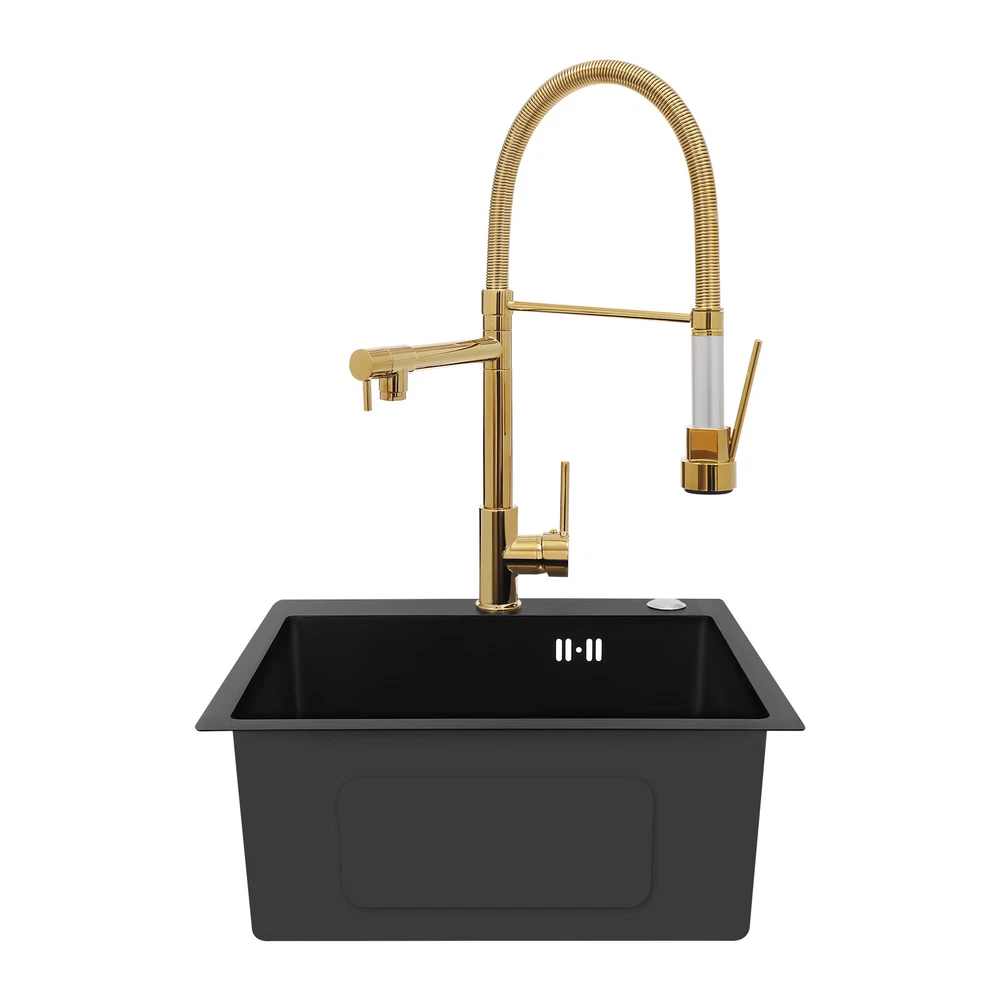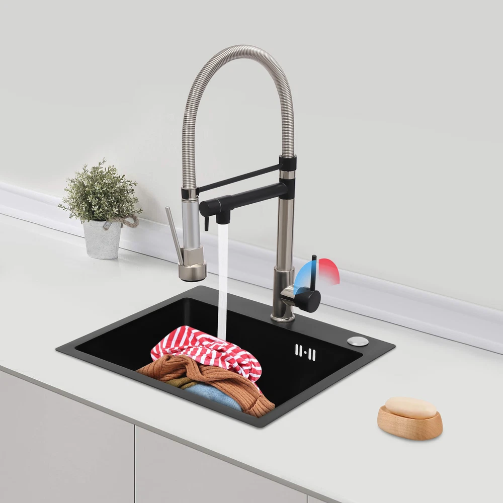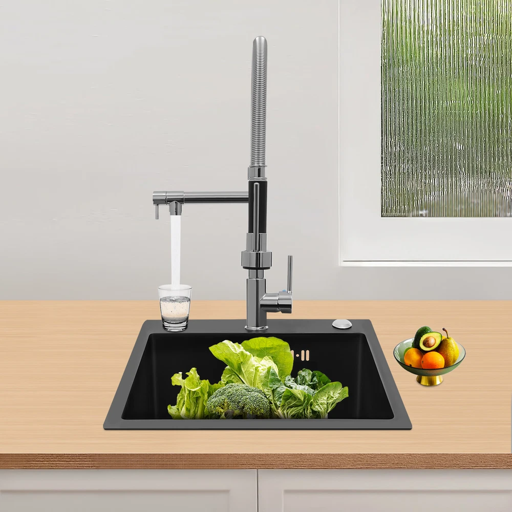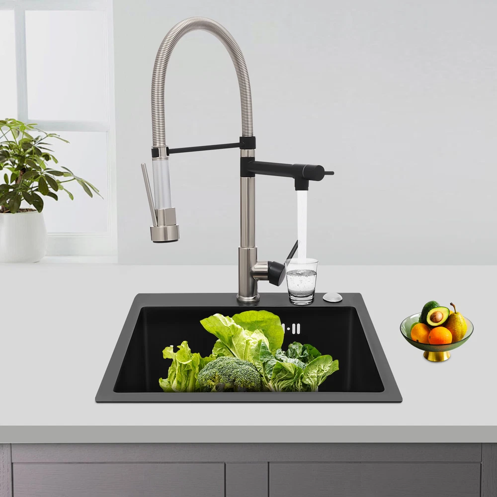 Specification Color: Titanium Gold/Black/Silver Material: Brass, Stainless Steel, Ceramic and Silicone Surface Treatment: Vacuum Plating/Electroplated/Brushed/Baking Paint Assembly Required: Yes Mount Type: Sink-mounted Interface: G1/2inch Rotation: 360° Fix Rod Length: 20.5cm/8.07in Installation Hole Diameter: 5cm/1.97inch Product Overall Height: 41cm/16.14inch Gross Weight: 2.5kg/5.5lbs Net Weight: 2kg/4.4lbs Package Size: 58.5*29.5*5.9cm/23.03*11.61*2.32inch Package Included 1* Kitchen Tap 2* Hoses 1* English Installation Manual Other Accessories for Installation Kitchen Sink Single Handle Stainless Steel Faucet with Pull Down Sprayer Description An excellent kitchen tap is not only an elegant gift of life like a spring, but also a flexible assistant in cooking and a creator of a clean environment. It not only gives you pure and healthy life enjoyment but also in the cooking of food kitchen territory and the pursuit of freshness and cleanliness in the bathroom space, weaving the double rhythm of convenience and elegance. Key Features Build to Last: The high-quality stainless steel and brass with a vacuum plating/baking paint/brushed/electroplated process ensures high rigidity and durability, making it ideal for kitchen and bathroom use. Thoughtful Design : It comes with a buckle design for continuous water dispensing, giving you the freedom to wash items without having to keep pressing the spray head, while the height-appropriate stand provides more comfort and safety. Hot and Cold Use: You can control the water temperature and water flow through a single handle, which is easy and convenient. Comfortable Experience: Its air bubbler can make the water flow more smoothly and reduce noise and water consumption, providing you with fine and uniform water without splashing. In addition, the spray mode and stream mode allow you to enjoy a comfortable washing experience. Enhance Your Relationship: The faucet with a pull-down sprayer and separate spout can be turned on at the same time. If your loved one or roommate prepares dinner or does the dishes with the sprayer, you can do what you want with the other sprayer, saving time and increasing intimacy. Compact Spring: The spring design makes the product more flexible to use, taking into account 360 degrees of rotation and 360 degrees of bending, which in turn facilitates you to change the curvature of the hose with less effort, and giving your kitchen tap a full range of washes. Easy to Clean: Thanks to its smooth surface and simple structure, you can clean it with a damp rag or water. Plus, the silicone spout makes it possible to clear clogs with a flick of your hand! Quality Service: We stand behind all our guests and look forward to assisting you with your purchase. It is our pleasure to answer your confusion and questions. The end of the story between us is definitely not "we sell and you buy" . Details Ceramic Valve Core: The sturdy and durable ceramic valve core can effectively prevent water leakage, improv e the stability of the faucet, and reduce the scale. Flexible Sprayer Stand&Faucet: They can be rotated 360° for convenient use and space-saving. Standard G1/2 Interface: The standard G1/2-inch interface makes this product suitable for most water supply systems. Practical Hoses: They provide you with easy access to a water source for hot and cold use. Application It is suitable for single and double sinks of different shapes in homes, restaurants, shopping centers, schools, companies, hotels, kitchens, clinics, hospitals, KTVs, subway stations, bathrooms, and more. It is suitable for washing pots and pans Specification Color: Titanium Gold/Black/Silver Material: Brass, Stainless Steel, Ceramic and Silicone Surface Treatment: Vacuum Plating/Electroplated/Brushed/Baking Paint Assembly Required: Yes Mount Type: Sink-mounted Interface: G1/2inch Rotation: 360° Fix Rod Length: 20.5cm/8.07in Installation Hole Diameter: 5cm/1.97inch Product Overall Height: 41cm/16.14inch Gross Weight: 2.5kg/5.5lbs Net Weight: 2kg/4.4lbs Package Size: 58.5*29.5*5.9cm/23.03*11.61*2.32inch Package Included 1* Kitchen Tap 2* Hoses 1* English Installation Manual Other Accessories for Installation Notes Please install it in strict accordance with the instructions and pay attention to the safety precautions inside. Please allow the slight color difference caused by the shooting light and the 1-3cm error due to manual measurement. Please make sure you do not mind before you order. Payment Delivery details Terms of sales About us Contact us Payment We accept ebay payment 。 Fees such as import duties, taxes are not included in the item price or shipping costs. These charges are the buyer's responsibility. Delivery details Shipping: 2-9 working days to: USA Terms of sales We maintain high standards of excellence and strive for hundred percent customer satisfaction. Feedback is very important to us. We hope that you contact us immediately before you give neutral or negative feedback, so that we can address your concerns. It is impossible to address issues if we do not know about them! About us Your satis faction is our ultimate goal. We work hard to earn your trust and future business. Our certified technicians have tested each item before shipping. The unit comes with 1 year limited warranty on all manufacturing defects. a) If you receive a defective item, you may return it or ask for a discount. Please contact us within 14 days after you receive the package. b) What you returned must be intact and in its original packaging as re? u. Customer is responsible for shipping costs of the returned item. c) We will cover the cost of shipping back t with the shipping rate indicated in the registration page. We will send you a new unit or refund the full payment you paid. Thank you. Contact us Business Hour Business Hour: Monday To Friday: 8:30 AM to 5:00 PM (Beijing China time) Due to time zones, our reply to your questions may not be immediately. But within above working 