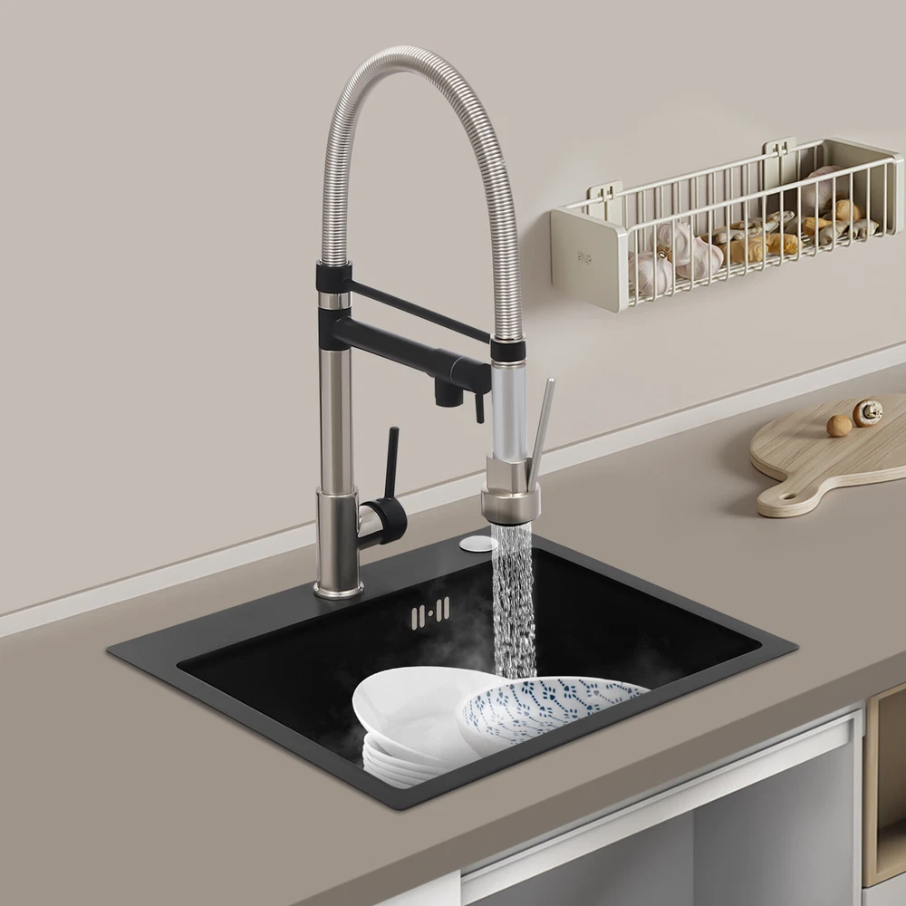 Kitchen Sink Single Handle Stainless Steel Faucet with Pull Down Sprayer