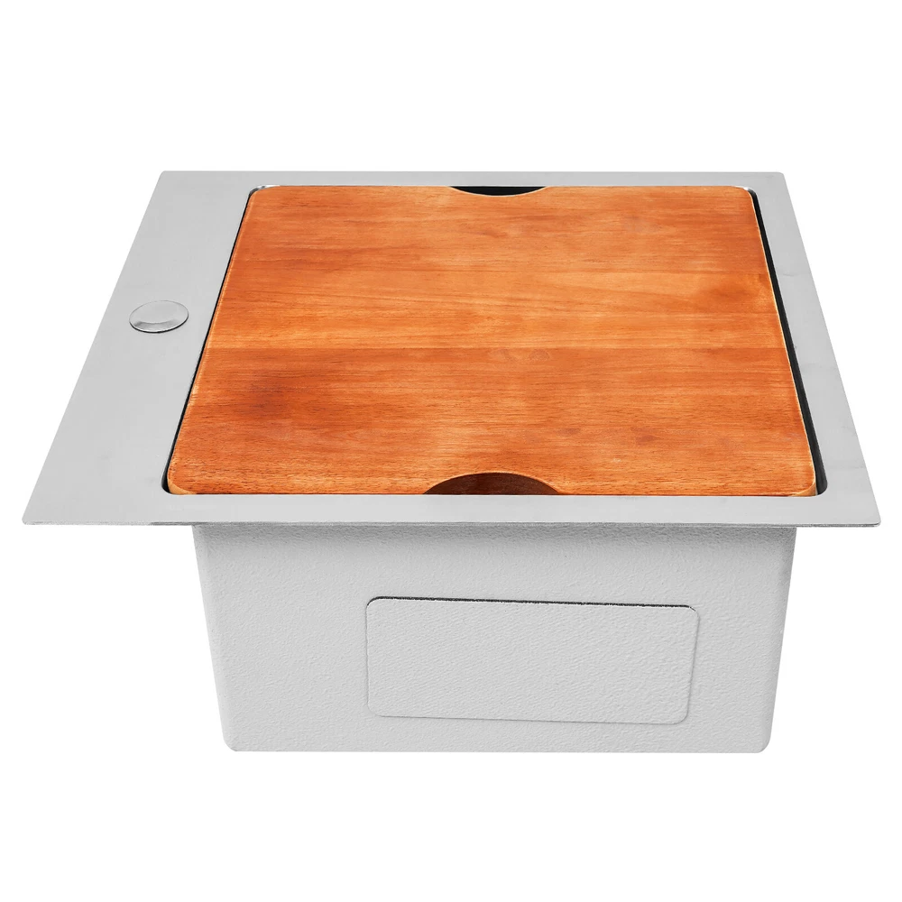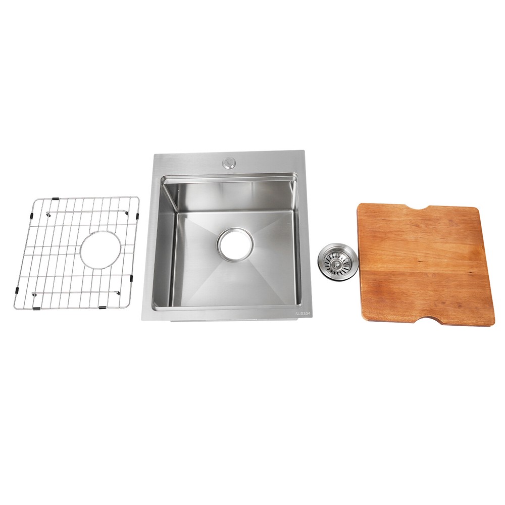 Kitchen Sink Workstation Sink with Cutting Board Stainless Steel Kitchen Sink Description Made of high-quality 304 stainless steel, this kitchen sink is exquisitely crafted, wear- resistant , and corrosion- resistant . Its enlarged and deepened sink not only alleviates the splashing problem but also increases space utilization for cleaning numerous cookwares. The design with a cutting board and bottom rinse grid allows you to wash and cut fruits and vegetables simultaneously, with which you can enjoy a more convenient life. Key Features Strong and Durable: Made of premium 304 stainless steel through the brushed process, it is corrosion and heat- resistant and will remain as good as new for a long time, even in the face of frequent daily use and all kinds of kitchen utensils collision. Space Optimization: The workstation sink is designed to hold the cutting board on a single track, maximizing the available space on the countertop. Large Capacity: Its large washing size ( 15*15in ) allows you to clean large amounts of plates, dishes, and pots, and wash fruits, and vegetables at one time without splashing, saving time. Life Assistant: This sink with a cutting board and bottom rinse grid cleverly combines washing and meal preparation functions, allowing you to enjoy a convenient life. Invisible and Beautiful: It supports three mount types: top mount, flush mount, and under mount, which will not affect the aesthetics when the sink is flush with the countertop, and the smooth lines and low-key silver-colored appearance can also add a touch of simplicity and elegance to the kitchen. Hassle-free Cleaning: The brushed surface is not easy to leave marks, you can remove surface dust and grease by wiping with a damp cloth and detergent (not included). User Friendly: The rubber mute mat can effectively reduce the noise generated by the faucet water release and the collision of dishes, creating a quiet kitchen environment. The anti-condensation coating effectively prevents excessive temperature differences and protects the cabinet from moisture. Rapid Drainage: The X-shaped water guidelines and enlarged 3.5-inch drain hole help drain water quickly. Customer Service: We aim to provide quality products and services. If you have any problems, please feel free to contact us. We will reply to you and solve the problem for you as soon as possible. Details Rounded Corners: They are not easy to leave hygiene blind spots, making it convenient for you to clean the sink. Bottom Rinse Grid: With protective covers, it can prevent scratches on the kitchen utensils and sink. Utensils can be placed on the rinse grid for fast drainage. Thoughtful Handles: Two curved handles on either side of the cutting board make it easy to reach and move. Application It can be widely used in homes, restaurants, laundries, basements, bars, kitchens, food trucks, dessert stores, coffee shops, hotels, garages, gardens, etc. for washing dishes and cutting vegetables and fruits. Specification Material: 304 Stainless Steel Color: Silver Style: Modern Process: Brushed Shape: Rectangular Mount Type: Topmount, Undermount, Flushmount Assembly Required: Yes Thickness: 100mm/0.39in Drain Hole Diameter: 8.9cm/3.5in Cutting Board Size: 38.1*38.1cm/15*15in Product Size: 43.1*48.2*21.9cm/17*19*8.6in Package Size: 53*48*27cm/20.87*18.90*10.63in Gross Weight: 8.4kg/18.52lbs Net Weight: 7.8kg/17.2lbs Package Included 1* Stainless Steel Kitchen Sink 1* Cutting Board 1* Bottom Rinse Grid 1* Strainer Notes Please check the style and size before purchasing. Please do not scratch its surface with sharp objects to prolong its service life. If you want to get a better installation effect, we suggest you ask professional workers to install it. Please allow the slight color difference caused by the shooting light and 1-3cm error due to manual measurement and make sure you do not mind before ordering. Payment Delivery details Terms of sales About us Contact us Payment We accept ebay payment 。 Fees such as import duties, taxes are not included in the item price or shipping costs. These charges are the buyer's responsibility. Delivery details Shipping: 2-9 working days to: USA Terms of sales We maintain high standards of excellence and strive for hundred percent customer satisfaction. Feedback is very important to us. We hope that you contact us immediately before you give neutral or negative feedback, so that we can address your concerns. It is impossible to address issues if we do not know about them! About us Your satis faction is our ultimate goal. We work hard to earn your trust and future business. Our certified technicians have tested each item before shipping. The unit comes with 1 year limited warranty on all manufacturing defects. a) If you receive a defective item, you may return it or ask for a discount. Please contact us within 14 days after you receive the package. b) What you returned must be intact and in its original packaging as re? u. Customer is responsible for shipping costs of the returned item. c) We will cover the cost of shipping back t with the shipping rate indicated in the registration page. We will send you a new unit or refund the full payment you paid. Thank you. Contact us Business Hour Business Hour: Monday To Friday: 8:30 AM to 5:00 PM (Beijing China time) Due to time zones, our reply to your questions may not be immediately. But within above working time, we will reply your email within 24 hours. If it's non-workdays, please kindly be patient and wait till Monday. Please contact us with ebay message. Please feel free to contact us if you have any questions. Monday To Friday: 8:30 AM to 5:00 PM (Beijing China time) Due to time zones, our reply to your questions may not be immediately. But within above working time, we will reply your email within 24 hours. If it's non-workdays, please kindly be patient and wait till Monday. Please contact us with ebay message. Please feel free to contact us if you have any questions.