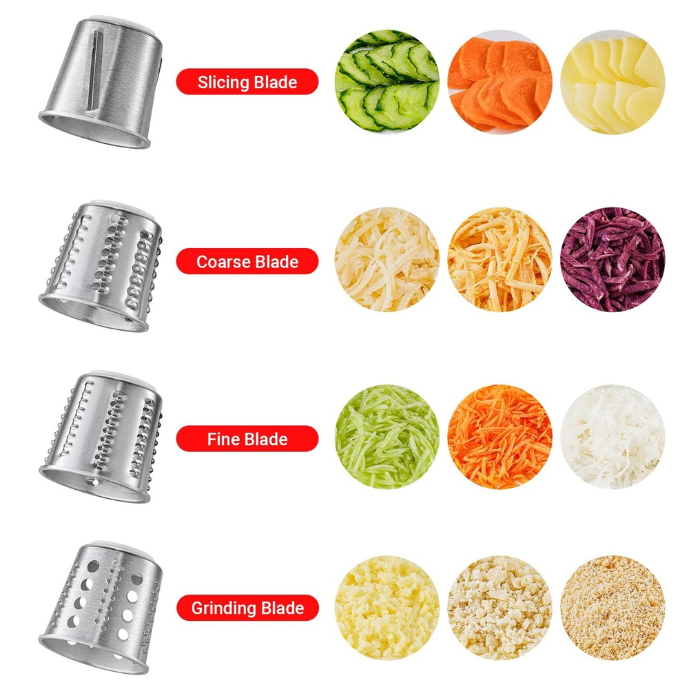 In the kitchen world, is committed to delivering an all - in - one cooking experience. Our Slicer/Shredder Attachments are the must - have kitchen helpers that seamlessly pair with your beloved kitchenaid mixer, hand mixer, or stand mixer. Whether you own a KitchenAid or a Kitchen Aid brand device, our attachments can unlock its full potential. When it's time to make a delicious salad, our attachments act like a pro vegetable chopper, effortlessly cutting all kinds of veggies into the perfect sizes to add great texture to your salad. It can also transform into an excellent cheese grater and cheese shredder, easily creating shredded cheese that adds a rich, creamy flavor to pizzas, pastas, and more. Need to deal with garlic? It becomes a super - efficient garlic press, sparing you the hassle of peeling and mincing garlic. For those who love making French fries, apple slices, and such, our product features an apple slicer and a French fry cutter, fulfilling your diverse food - preparation needs. The mandoline slicer function allows you to slice ingredients into even, thin pieces, enhancing the visual appeal of your dishes. Our Slicer/Shredder Attachments are not only highly functional but also a stylish addition to your kitchen. Just like other cool kitchen gadgets, they add a unique charm to your cooking space. Choose 's attachments and embark on a stress - free and enjoyable cooking journey. Make every cooking session a delight! [360° Blade & 2.8Inches Feed Chute for KitchenAid Attachments] As essential KitchenAid accessories and attachments, this features a 3.35IN stainless blade with 360° coverage and 2.8IN extra-large feed opening – processes whole veggies/cheese blocks effortlessly. Perfect for KitchenAid stand mixer users. [Pro-Grade Capacity for KitchenAid Setup] The 5.1IN tray and dual pushers make this KitchenAid cheese grater attachment ideal for bulk prep. Large discharge opening handles 2x more ingredients vs standard KitchenAid attachments for mixer. [SUS304 & Full Compatibility] Crafted with food-grade SUS304 stainless steel, this KitchenAid cheese grater attachment for stand mixer outperforms plastic competitors. 100% dishwasher-safe for all KitchenAid accessories and attachments. [4 Interchangeable Blades for Any Task] Slice cucumbers paper-thin, shred carrots for slaw, grate hard cheese – 4 blades tackle 30+ foods from salads to desserts. [Secure Locking for KitchenAid Ecosystem] Designed exclusively for KitchenAid stand mixer attachments, the safety lock prevents blade detachment during grating. Non-slip base ensures stability even at max speed.