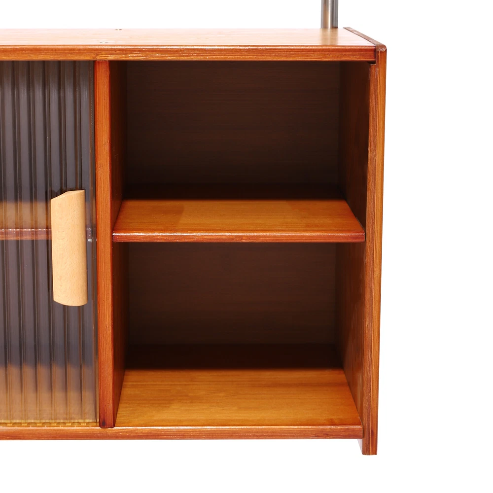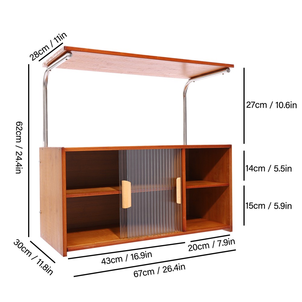 Storage Cabinet with Sliding Glass Doors Pantry Cabinet Kitchen Microwave Stand Description To say goodbye to the messy kitchen and create a clean and high-value environment, we designed this storage cabinet for you. This versatile piece of furniture is not only a time-saver, but it also offers exceptional space utilization, leaving countertops clutter-free . We encourage you to embrace this storage innovation and make the switch to a clean and high-value kitchen. Key Features Sturdy and Durable : Bamboo, stainless steel, glass, and MDF together with painting and grinding processes make this product sturdy, safe, impact- resistant , anti-deformation, anti-corrosion , and anti-rust , and ensures a long service life. Considerate Design: The clear door design makes it easy for you to observe the internal items, making it easy to find and store, and also protects against dust and grease, ensuring a good seal. In addition, the internal laminate can be adjusted up or down 2.76 inches to accommodate high wine bottle seasoning bottles . Large Capacity : The dual-tier design with doors can accommodate various cutlery such as pots, spices, bowls, and plates. The table top allows you to place a microwave oven, knife racks, etc. The large platform on the top provides you with extra space to store your kitchen utensils. Enhanced Stability : The thick frame, sturdy screws, and solid construction allow it to hold up to about 27.56 lbs in each tier, making it resistant to bending and wobbling, giving you peace of mind. Space-Saving : The product can be placed on any flat surface, such as a tabletop or floor, making the most of vertical space, saving countertop space, and keeping your kitchen cleaner and tidier. Practical Gift : Thanks to its wide applicability, it can be used as a holiday or housewarming gift for your family and friends, especially for those who love to cook! Elegant Appearance : It adopts a classic tea color scheme and rectangular structure to present a simple but eye-catching outlook, which can match most decorating styles and color themes, suitable for most use scenarios. Simple Installation : The simple structure, pre-drilled holes, and complete accessories allow you to complete installation and start using it in a short period. Effortless Clean : Simple construction and smooth surface allow you to easily wipe away dust and residue with a towel. Details Open Compartments : They make it easy for you to identify and reach items in time. Practical Handles : They promote smooth door pushing and pulling, while the handles also enhance the aesthetics of the product. Support Bars: They provide strong support for the top platform. Smooth Edges : They not only enhance the aesthetics of the product but also improve safety during installation, cleaning, and use. Application It can be widely used in kitchens, homes, and restaurants for storing microwaves, spice jars, cutlery, bowls, plates, chopping boards, spoons, forks, and more. Specifications Material: Bamboo, Glass, MDF, Stainless Steel Process: Painting, Grinding Color: Tea Color Style: Modern Shape: Rectangular Mounting Type: Free Standing, Countertop Assembly Required: Yes Laminate Adjustment Range: Upper and Lower 7cm/2.76in Each Tier Bearing Capacity: About 12.5kg/27.56lbs Tier Spacing: 15cm/5.9in, 14cm/5.5in Distance from Desktop to Top Platform: 27cm/10.6in Top Platform Width: 28cm/11in Product Size: 67*30*62cm/26.4*11.8*24.4in Package Size: 78*33.5*11.5cm/30.71*13.19*4.53in Gross Weight: 11.64kg/25.66lbs Net Weight: 11kg/24.25lbs Package Included 1*Storage Cabinet All Accessories for Assembly Notes Please check the size carefully before ordering. We recommend that it be installed by two people and that other items are not included. Please allow the slight color difference caused by the shooting light and 1-3cm error due to manual measurement, and make sure you do not mind before you order. Payment Delivery details Terms of sales About us Contact us Payment We accept ebay payment 。 Fees such as import duties, taxes are not included in the item price or shipping costs. These charges are the buyer's responsibility. Delivery details Shipping: 2-9 working days to: USA Terms of sales We maintain high standards of excellence and strive for hundred percent customer satisfaction. Feedback is very important to us. We hope that you contact us immediately before you give neutral or negative feedback, so that we can address your concerns. It is impossible to address issues if we do not know about them! About us Your satis faction is our ultimate goal. We work hard to earn your trust and future business. Our certified technicians have tested each item before shipping. The unit comes with 1 year limited warranty on all manufacturing defects. a) If you receive a defective item, you may return it or ask for a discount. Please contact us within 14 days after you receive the package. b) What you returned must be intact and in its original packaging as re? u. Customer is responsible for shipping costs of the returned item. c) We will cover the cost of shipping back t with the shipping rate indicated in the registration page. We will send you a new unit or refund the full payment you paid. Thank you. Contact us Business Hour Business Hour: Monday To Friday: 8:30 AM to 5:00 PM (Beijing China time) Due to time zones, our reply to your questions may not be immediately. But within above working time, we will reply your email within 24 hours. If it's non-workdays, please kindly be patient and wait till Monday. Please contact us with ebay message. Please feel free to contact us if you have any questions. Monday To Friday: 8:30 AM to 5:00 PM (Beijing China time) Due to time zones, our reply to your questions may not be immediately. But within above working time, we will reply your email within 24 hours. If it's non-workdays, please kindly be patient and wait till Monday. Please contact us with ebay message. Please feel free to contact us if you have any que