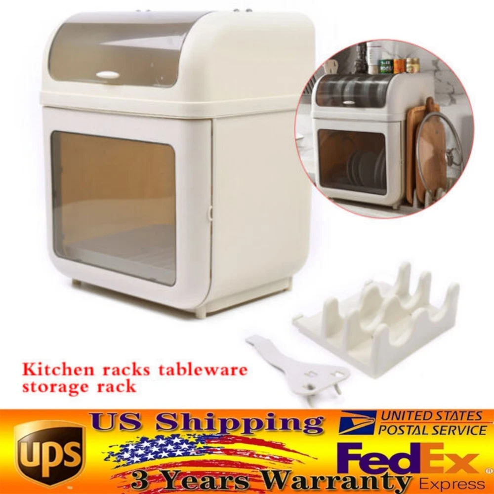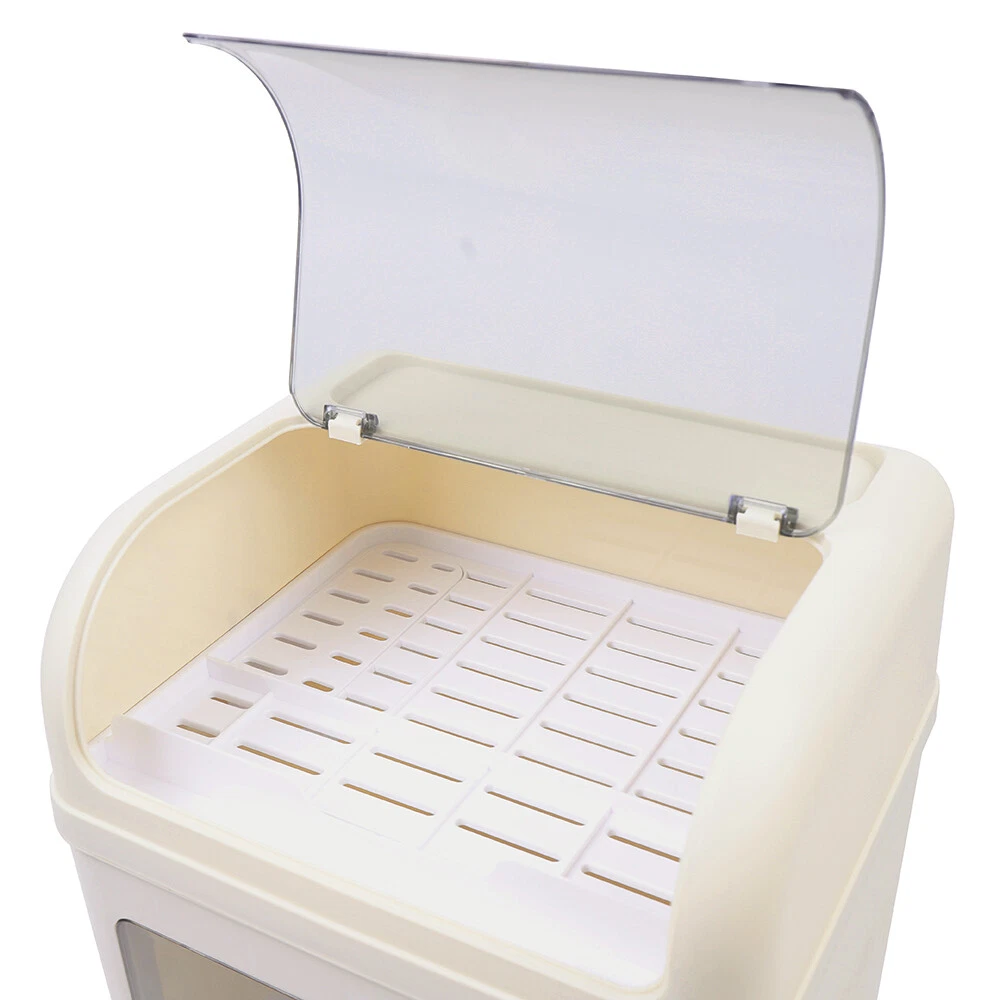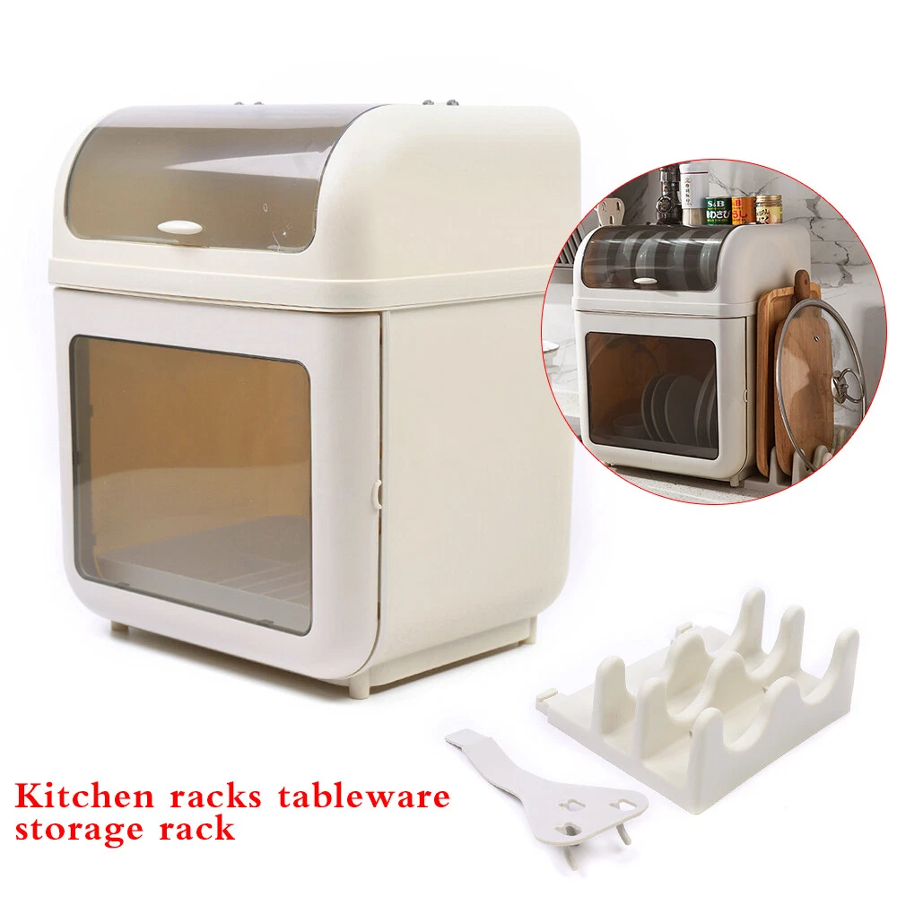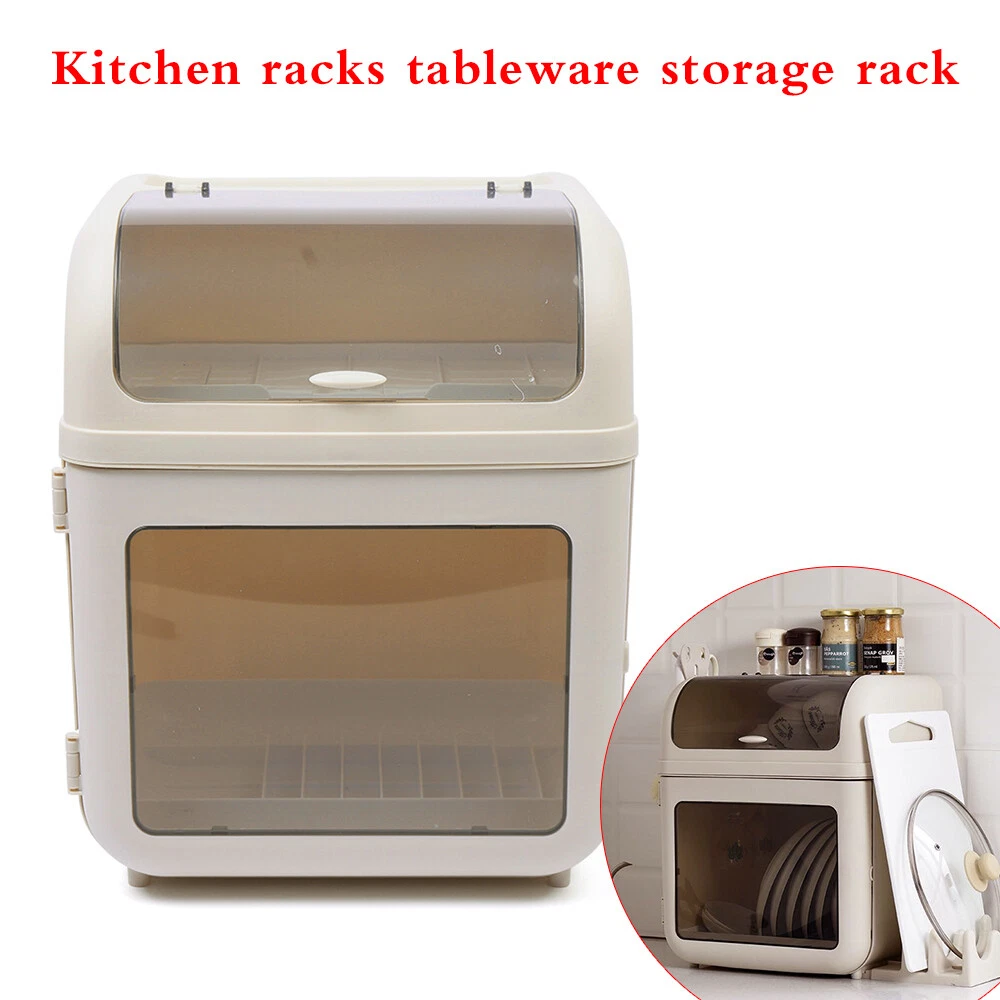 Kitchen Tableware 2-Tier Storage Box Cupboard Covered Dustproof Rack Dish Holder