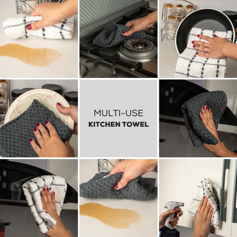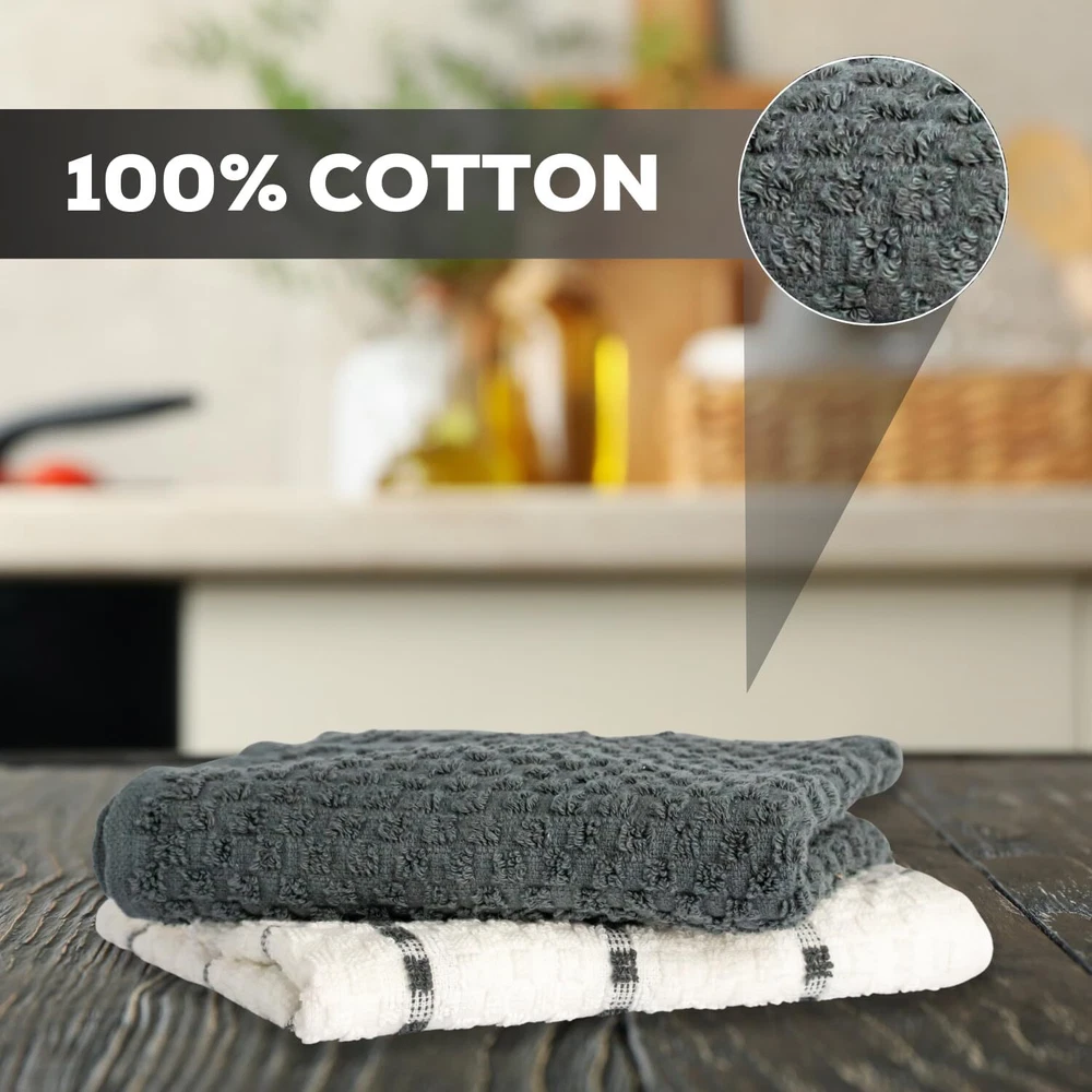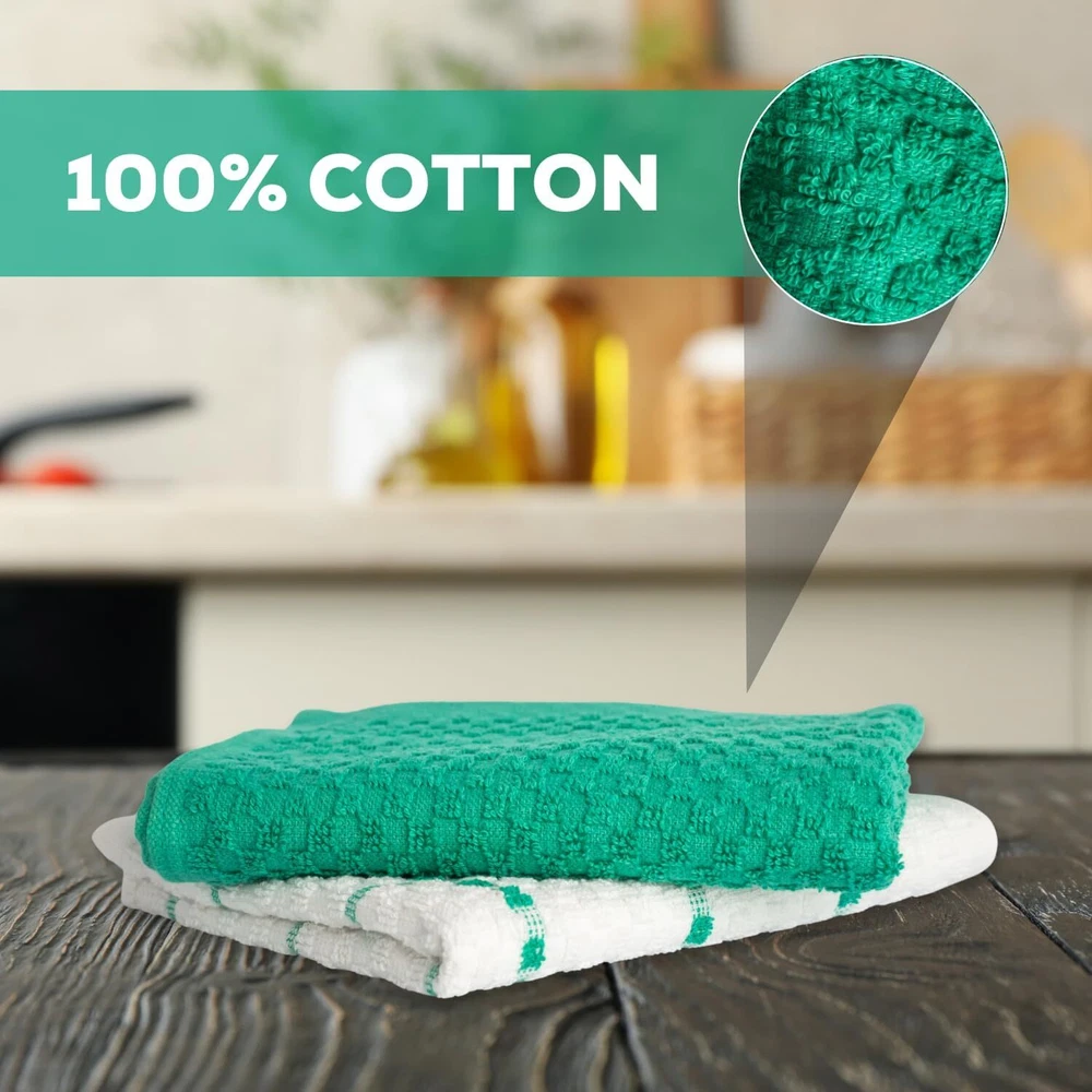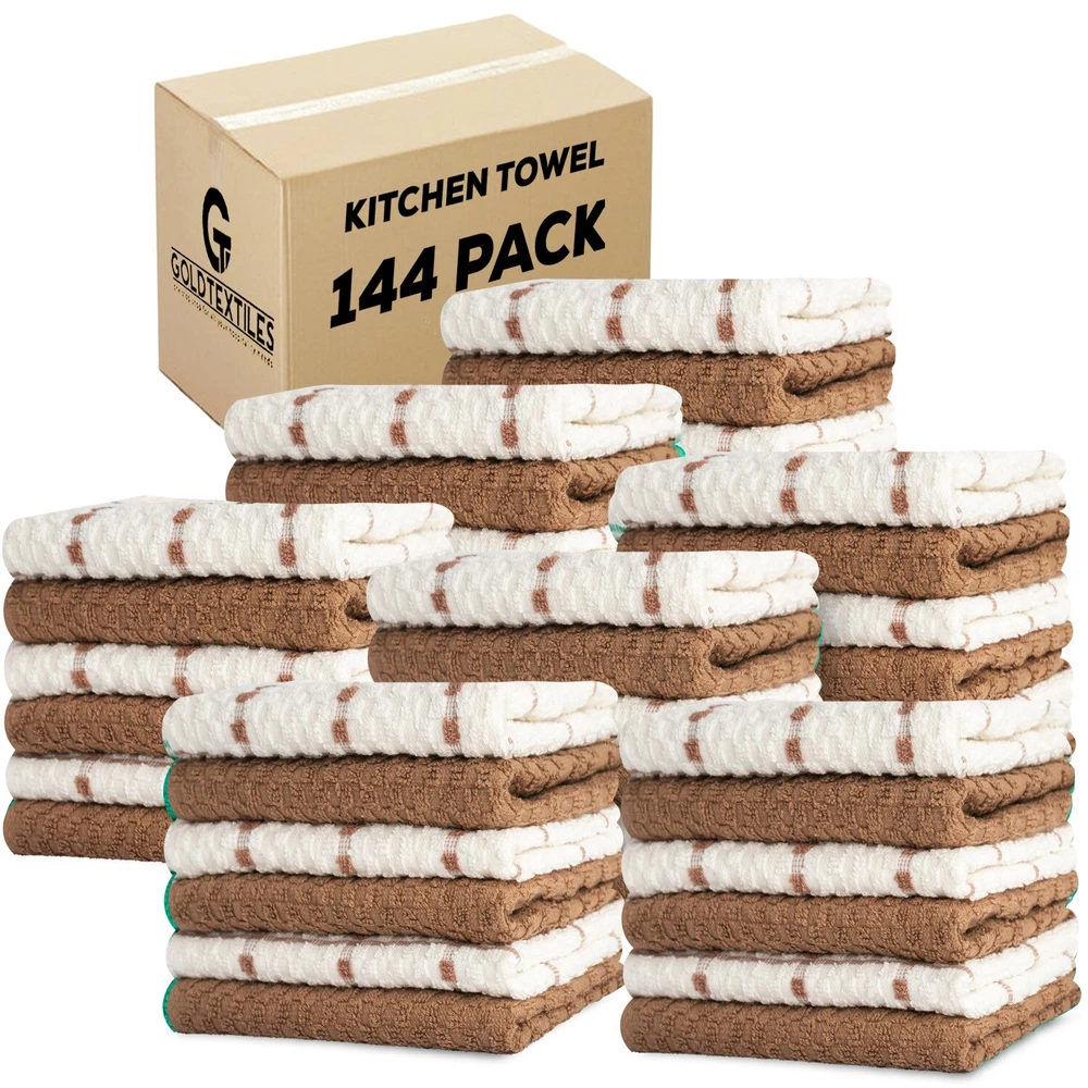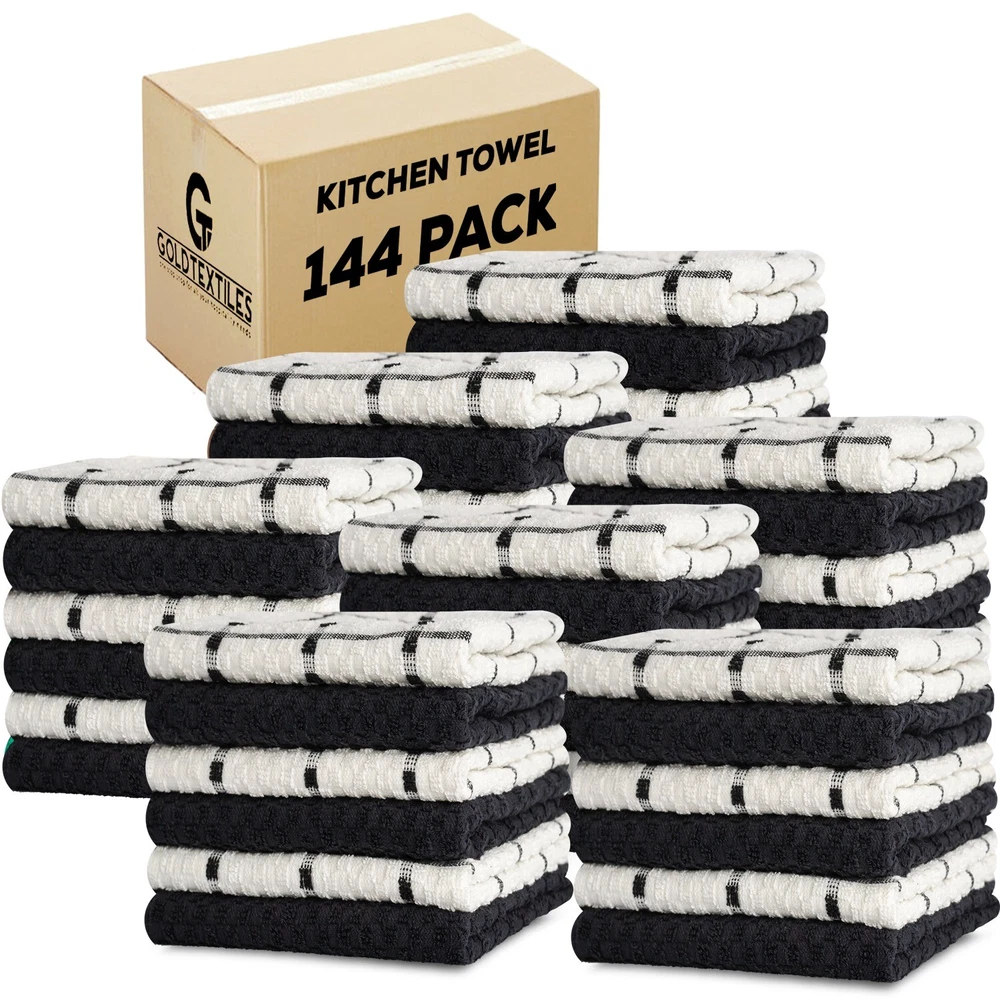 Kitchen Towels Set 100% Cotton 15''x25'' Soft Highly Absorbent Pack of 6, 12, 144 Description: Our 100% cotton dish towels boast a waffle weave design, maximizing absorbency and surface area. Ultra-soft and quick-drying, they're perfect for drying dishes, glasses, and utensils without scratching. Versatile in use, they double as oven mitts or pot holders. With a stylish design to complement any kitchen decor, these towels are a must-have for every home chef. Features: - Waffle weave design enhances absorbency and increases surface area - Made of 100% cotton for durability and softness - Size available in 15x25 Inches Hand Towels - Unique texture effectively soaks up spills - Ideal for drying dishes, glasses, and utensils - Gentle on fine china and stainless steel - Absorbs water quickly for efficient drying - Quick-drying, machine washable, and tumble dry safe - Multi-purpose: can be used as kitchen towels, oven mitts, pot holders, or cleaning cloths - Versatile and stylish, suitable for any kitchen decor - Perfect for daily use in the kitchen - Won't shrink or fade after washing - Enhances kitchen efficiency and cleanliness - Essential for any home chef or cook - Neutral color complements any kitchen aesthetic - Adds a touch of sophistication to kitchen accessories Buy with confidence ''In case of any queries feel free to ask''