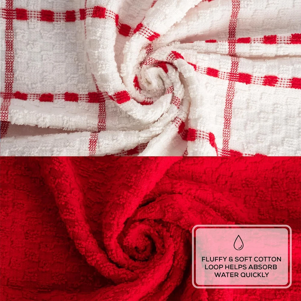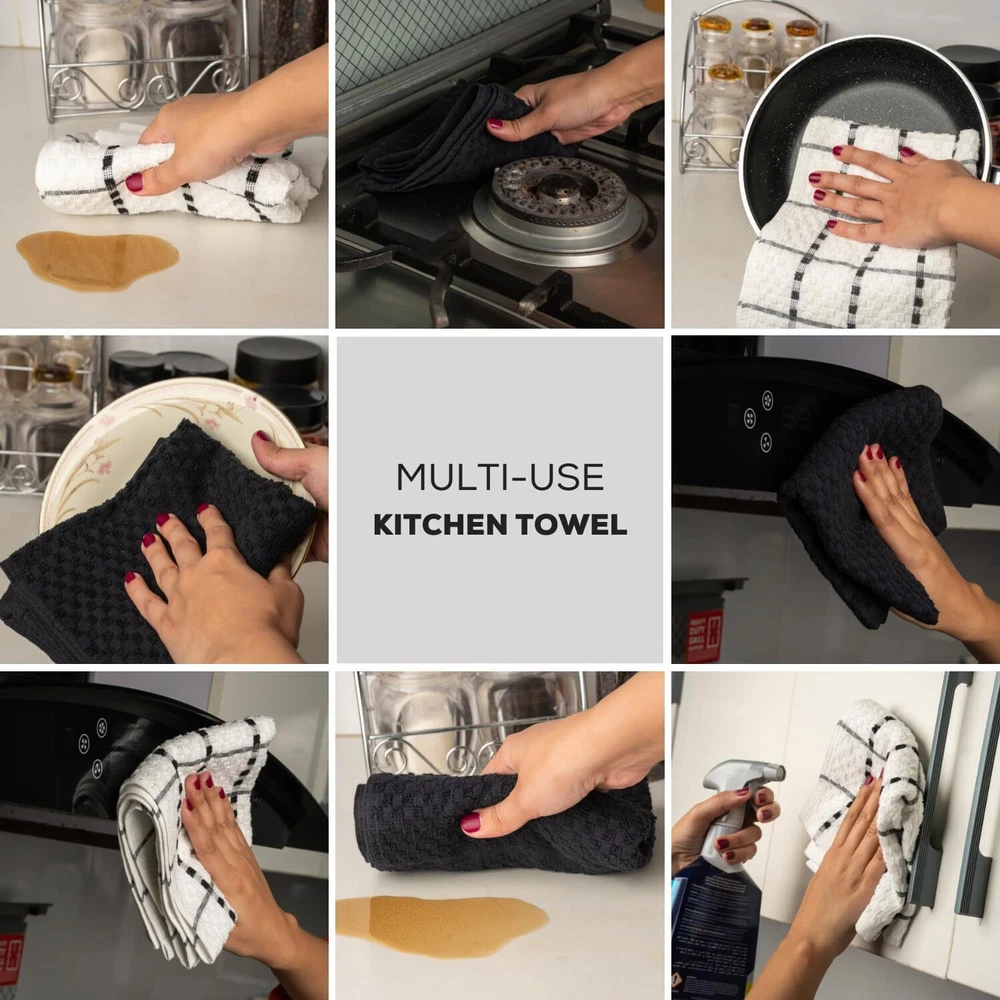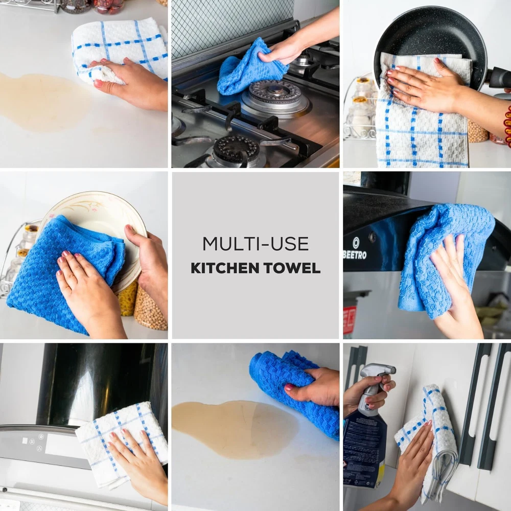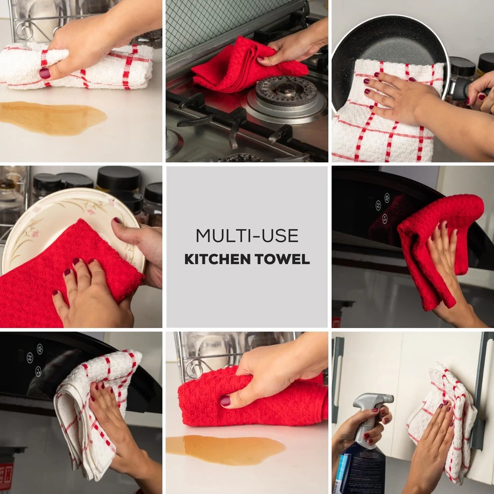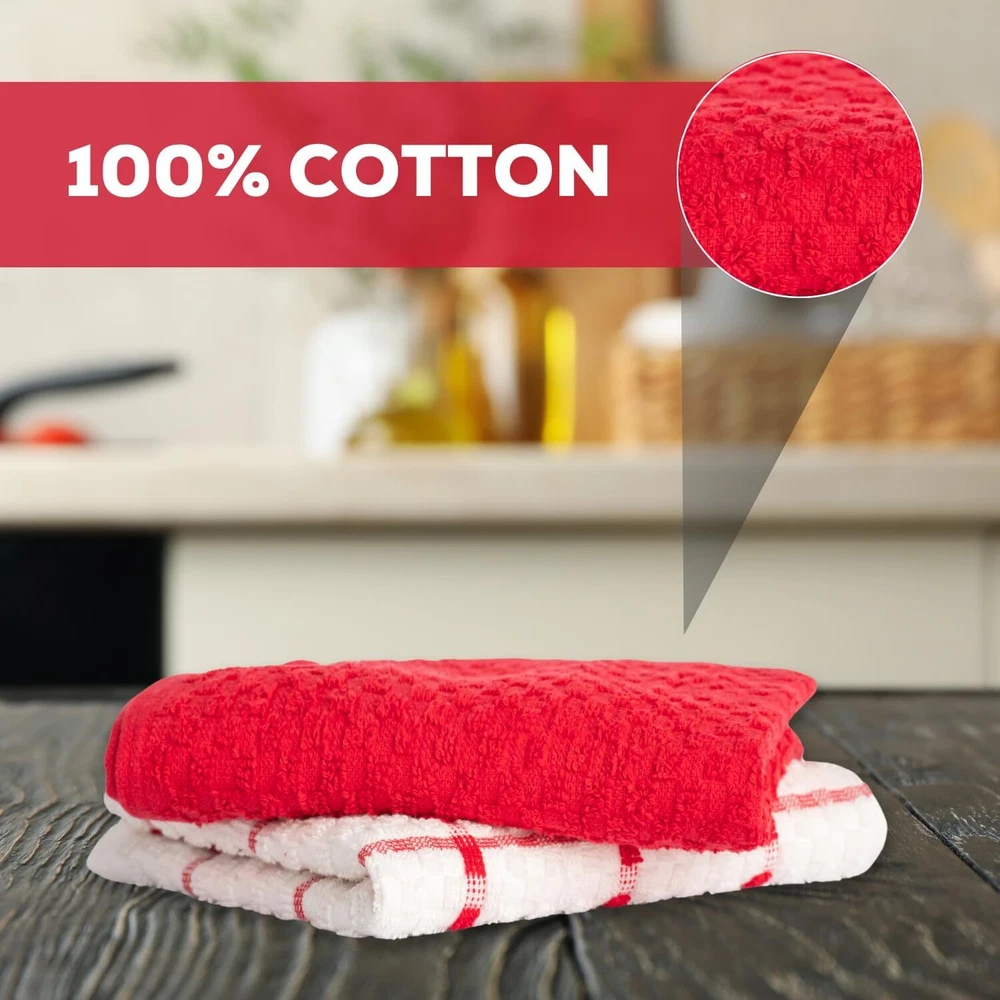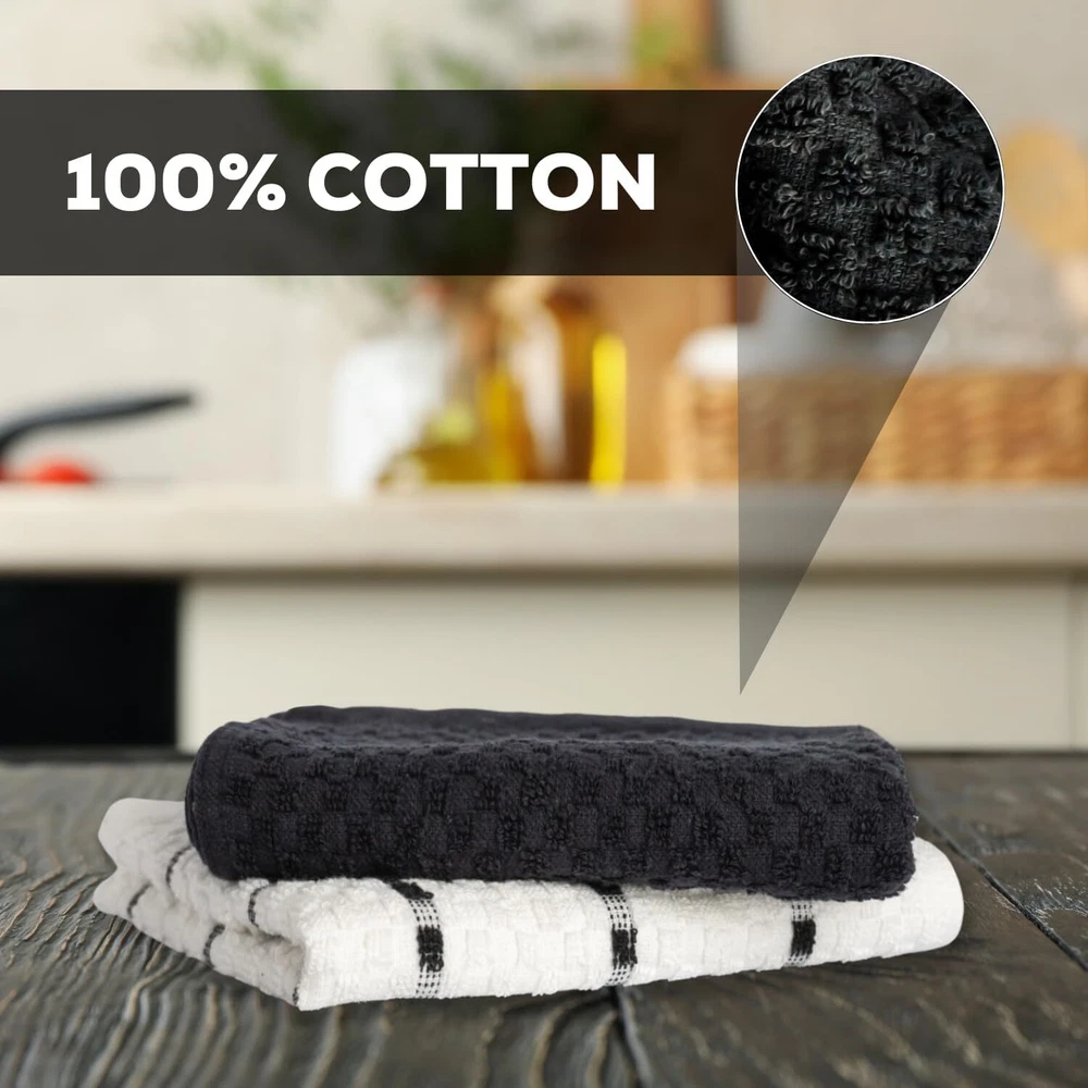 Kitchen Towels Set 100% Cotton 15''x25'' Soft Highly Absorbent Pack of 6, 12, 144 Description: Our 100% cotton dish towels boast a waffle weave design, maximizing absorbency and surface area. Ultra-soft and quick-drying, they're perfect for drying dishes, glasses, and utensils without scratching. Versatile in use, they double as oven mitts or pot holders. With a stylish design to complement any kitchen decor, these towels are a must-have for every home chef. Features: - Waffle weave design enhances absorbency and increases surface area - Made of 100% cotton for durability and softness - Size available in 15x25 Inches Hand Towels - Unique texture effectively soaks up spills - Ideal for drying dishes, glasses, and utensils - Gentle on fine china and stainless steel - Absorbs water quickly for efficient drying - Quick-drying, machine washable, and tumble dry safe - Multi-purpose: can be used as kitchen towels, oven mitts, pot holders, or cleaning cloths - Versatile and stylish, suitable for any kitchen decor - Perfect for daily use in the kitchen - Won't shrink or fade after washing - Enhances kitchen efficiency and cleanliness - Essential for any home chef or cook - Neutral color complements any kitchen aesthetic - Adds a touch of sophistication to kitchen accessories Buy with confidence ''In case of any queries feel free to ask''