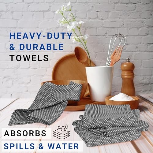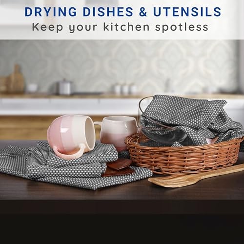 Kitchen Towels 100% Cotton Dotted Dish Towels, Soft Tea Towels Set of 6 Grey