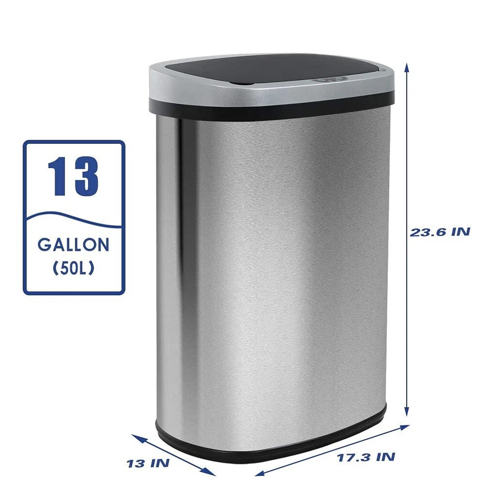 HomeKitchen Trash Can with Lid, 13 Gallon Automatic Garbage Can ,Stainless Steel Bin