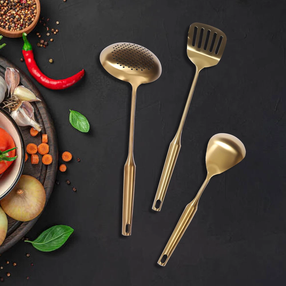 Kitchen Utensil Set Stainless Steel Kitchen Cooking Utensils Gadget Tools Gold ❤Welcome❤ Description This Kitchen Utensil Set Include a Slotted Spoon, Slotted Spatula, Rice Spoon, Soup Ladle, Wok Spatula, Spaghetti Spoon, and Utensil Stand. Made of High-quality 304 Stainless Steel, It Is Anti-corrosion, Rust-proof and Healthy, so You Can Use It with Confidence. Its Exquisite Workmanship and Elegant Appearance Will Make an Eye-catching Addition to Your Kitchen and Also a Great Gift Choice. Key Features Complete Set: This 7-Piece Utensil Set Will Address Your Cooking Requirements, Such As Frying, Steaming, and Stir-frying. the Uniform Style of This Set Will Make Your Kitchen More Attractive to Give You a Good Cooking Mood. Quality Material: It Is Made of Food-grade 304 Stainless Steel, Which Will Not Bend like Plastic Utensils, Will Not Crack like Wooden Kitchen Tools, and Will Not Rust like Other Metal Utensils, Ensuring Long-term Service Life and Daily Use Without Breaking, Bending, or Rust. Exquisite Workmanship: the Edges Are Finely Sanded and Polished Without Burrs to Prevent Your Pan or Hands from Being Scratched. the Gold Electroplated Surface Is Non-fading Giving the Utensil a More Substantial Feel. Elegant Appearance : the Gold-plated Color Will Make This Set Stand out in Your Kitchen As an Elegant and Upmarket Kitchen Tool Giving You a More Enjoyable Cooking Experience. Space Saving: the Utensil Rack Saves More Space by Neatly Storing and Organizing These Utensils to Keep Your Kitchen Countertop Clean and Tidy. Easy to Clean: Its Smooth Surface Makes It Easy to Clean. All You Need to Do Is Simply Wipe and Wash with Hot Water. Ideal Gift: This Elegant and Functional Utensil Set Is an Ideal Gift for Any Occasion, Such As Mother's Day, Christmas, Thanksgiving, or a Wedding Party. Considerate Design: the Ergonomically Designed Cutlery Handles with Ideal Weight Will Give You a Comfortable Grip. the Hollow Handle Provides Excellent Heat Resistance, Preventing Burns. Customer Service: We Aim to Provide Quality Products and Services. If You Have Any Problems, Please Feel Free to Contact Us. We Will Reply and Solve the Problem for You As Soon As Possible. Details Practical Stand: There Is a Utensil Holder with Six Evenly Spaced Hooks to Provide a Secure and Ventilated Place for the Utensils, Saving More Space While Keeping the Utensils More Hygienic. the Swivel Top and Open Design Allow for Easy Selection and Access to the Cutlery. Spatula Set: the Wok Spatula and Slotted Spatula Are Curved to Reduce Damage to Pots and Pans, for Frying, Sautéing, and Serving. the Slotted Spatula Can Also Be Used to Cut off Fried Food and Drain Oil. Soup Ladle : the Deeper and Wider Design of the Ladle Allows More Soup to Be Served Without Spilling. Its Extended Handle(13.78in) Can Be Used for Deeper Pots and Pans. Slotted Spoon: Its Evenly Distributed Filter Holes Make It Easier to Strain Food from the Water. Spaghetti Spoon: with Its Toothed End, It Can Be Used for Spaghetti-like Food, Providing You with Convenience. Application It Is Suitable for Home, Hotel, and Restaurant Use. It Is a Great Tool for Cooking Such As Frying, Steaming, and Stir-frying. Specification Material: 304 Stainless Steel Total Number: 7 Color: Gold Surface Treatment: Electroplated, Grinding, Polishing Slotted Spoon Weight: 230g/0.5lbs Wok Spatula Weight: 199g/0.43lbs Soup Ladle Weight: 212g/0.46lbs Large Rice Spoon Weight: 158g/0.34lbs Slotted Spatula Weight: 176g/0.39lbs Spaghetti Server Weight: 173g/0.38lbs Utensil Holder Weight: 355g/0.78lbs Gross Weight: 2kg/4.4lbs Net Weight: 1.6kg/3.52lbs Slotted Spoon Size: 12.3*38.5cm/4.84*15.16in Wok Spatula Size: 10*37.8cm/3.94*14.88in Soup Ladle Size: 9.5*35cm/3.74*13.78in Large Rice Spoon Size: 7.9*31.7cm/3.11*12.48in Slotted Spatula Size: 7.5*38.5cm/2.95*15.16in Spaghetti Server Size: 8.5*34.6cm/3.35*13.62in Utensil Holder Size: 15.5*43.5cm/6.1*17.16in Packing Size: 44.5*16.5*16.5cm/17.51*6.49*6.49in Package Included 1 X Slotted Spoon 1 X Work Spatula 1 X Soup Ladle 1 X Large Rice Spoon 1 X Slotted Spatula 1 X Spaghetti Server 1 X Utensil Holder Notes Please Do Not Use Hard Cleaning Tools When Cleaning, It Will Cause Scratches on the Surface of Stainless Steel Kitchenware. You Should Wipe Gently with a Damp Rag. Please Do Not Soak in Water for a Long Time, Dry with a Towel After Washing, and Keep It Dry. Please Allow the Slight Color Difference Caused by the Shooting Light and 1-3 Cm Error Due to Manual Measurement, and Make Sure You Do Not Mind Before Ordering. tu1 Welcome to bestwishes4y to purchase products, please feel free to contact us for any questions.👍 Payment Delivery details Terms of sales About us Contact us Payment We accept ebay payment 。 Fees such as import duties, taxes are not included in the item price or shipping costs. These charges are the buyer's responsibility. Delivery details Shipping: 2-9 working days to: USA Terms of sales We maintain high standards of excellence and strive for hundred percent customer satisfaction. Feedback is very important to us. We hope that you contact us immediately before you give neutral or negative feedback, so that we can address your concerns. It is impossible to address issues if we do not know about them! About us Your satis faction is our ultimate goal. We work hard to earn your trust and future business. Our certified technicians have tested each item before shipping. The unit comes with 1 year limited warranty on all manufacturing defects. a) If you receive a defective item, you may return it or ask for a discount. Please contact us within 14 days after you receive the package. b) What you returned must be intact and in its original packaging as re? u. Customer is responsible for shipping costs of the returned item. c) We will cover the cost of shipping back t with the shipping rate indicated in the registration page. We will send you a new unit or refund the full payment you paid. Thank you. Contact us Business Ho