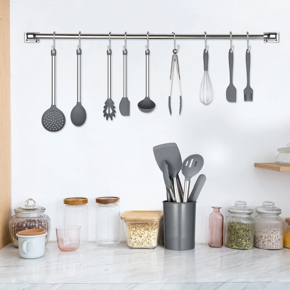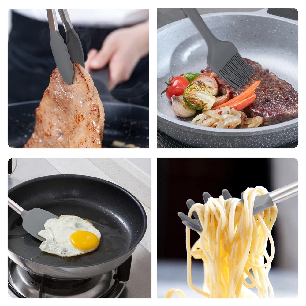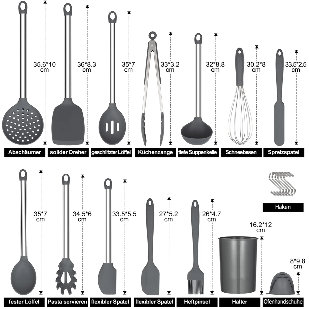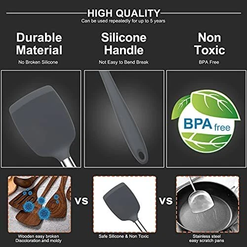 Kitchen Utensils Set, 27Pcs Cooking Utensils Set, Non-Stick Silicone Spatula Set 27pcs Kitchen Utensils Set: This cooking utensils include skimmer, slotted spoon, slotted turner, pasta sever, soft scraper, deep soup ladle, kitchen tongs, solid spoon, spreader spatula, egg whisk, oven mitts, flexible spatula, hooks, basting brush, and a utensil storage holder. These kitchen utensils can meet all your daily cooking and baking needs, each tool has its own unique purpose, helps enjoy your every cooking time. High Quality Kitchen Tools: The handle of cooking utensils are made of 304 stainless steel stick to prevent deformation and make cleaning easier. While the head of cookware is made of premium silicone, won't scratch or damage non-stick pans and pans like metal, helps protecting and extending the life of your kitchen pots and pans. Hear-Resistant & Safe Kitchen Utensils: Made of food grade silicone, can withstand high temperatures ranging from -40℉/-40℃ to 446℉/230℃ , and won't melts like plastic, react with food or drinks, nor produce any unpleasant smell. You and your family can enjoy the process of preparing food with confidence. Easy-to-Use Spatula Set: Every detail is carefully designed! The handles are long enough to protect your hands from being scalded and allows you to enjoy cooking for longer. Practical hanging hole design allows for convenient storage using hooks or wall hangings. Great Gift Idea: This cooking utensils set come in a classy box ready to gift! Great for House Warming gifts new home, wedding gift, mothers day, holiday and anyone else on your gift list apartment must haves, dorm room essentials. Shipping We offer FREE shipping on all orders! We ship within Three business days of payment, usually sooner. We use a selection of shipping services such as UPS, FedEx, USPS etc. We only ship to the lower 48 states, no APO/FPO addresses or PO Boxes allowed. Local pickups and combined shipping options are not provided at this time. Return You can return a product for up to 30 days from the date you purchased it. Any product you return must be in the same condition you received it and in the original packaging. Please keep the receipt. Payment We accept payment by any of the following methods: PayPal Please pay as soon as possible after winning an auction, as that will allow us to post your item to you sooner! Feedback Customer satisfaction is very important to us. If you have any problem with your order, please contact us and we will do our best to make you satisfied. Contact Us If you have any queries, please contact us via ebay. We usually respond within 24 hours on weekdays. Please visit our eBay store to check out other items for sale! Thank you for shopping at our store.