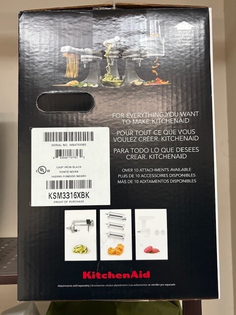 Open box but never used! (1) 3.5 Quart Stainless Steel Bowl (1) Flex Edge Beater (1) Coated Dough Hook (1) 6-Wire Whip About this item #1 MIXER BRAND IN THE WORLD* *Source: Euromonitor International Ltd. for retail sales revenue, USD, all retail channels. More information, including date ranges available at: mixerclaim.kitchenaid.com Built to take it all on with the durable and built-to-last metal construction, and 67 touchpoints around the mixer bowl for great mixing results. 3.5 Quart Stainless Steel Bowl for smaller batches, to mix up 5 dozen cookies* in a single batch. Dishwasher safe. *Using the flat beater; 28g dough each. Easily add ingredients with the tilt-head design, because you'll have better access to the bowl. Lock the head in place while mixing. Lighter. Smaller. Just as Powerful. With the same power as the KitchenAid Classic Stand Mixer, the Artisan Mini weighs less so it's easier to move around and is smaller, taking up less counter space. 10 Speeds for Nearly any Task or Recipe. From mixing ingredients together on the stir speed, to whipping cream at speed 8, you'll get thorough ingredient incorporation every time. Model KSM3316X includes (1) 3.5 Quart Stainless Steel Bowl, (1) Flex Edge Beater, (1) Coated Dough Hook, (1) 6-Wire Whip