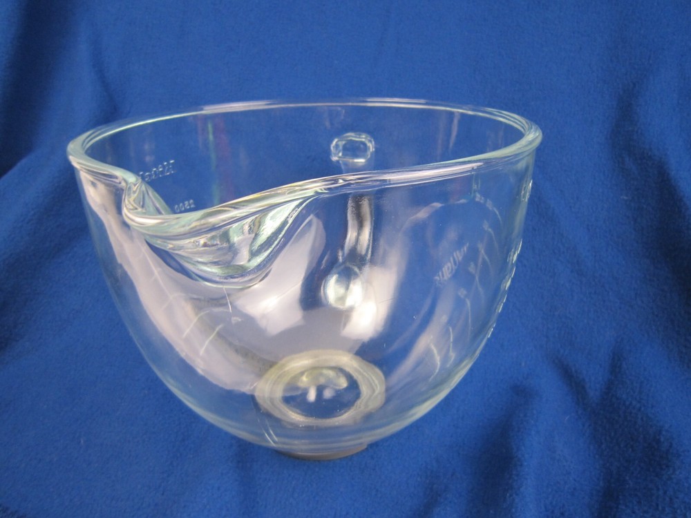 KitchenAid Glass Pour Mixing Bowl Cups 96OZ For Tilt Head Mixer W10220977-No Lid ***MAKE SURE YOU ARE BUYING THE CORRECT BOWL FOR YOUR MACHINE*** ***NO LID INCLUDED*** ***Good used condition, some minor scratches and scuffs, bowl only - NO LID INCLUDED Review the pictures carefully & read full description please! Please take the time to examine the pics before buying or bidding. We always try to post the clearest pictures possible. What you see in the pictures is the actual item for sale. If you have any questions or need further pictures of an item, please contact me. SHIPPING Item ships from Pembina, North Dakota via United States Postal Service or United Parcel Service (UPS). After payment; Item will be shipped within 2 business days, unless weather prevents travel :) PRODUCT RETURNS Any concerns or questions, please contact me and I will do my best to resolve! Please contact me before initiating a return. I accept returns, but buyer is responsible for return shipping costs. The same item ordered would need to be returned in the condition it was shipped out. Serial numbers and security features will be verified before a refund is issued. Thank you for looking. I hope you find an item that brings you joy and rekindles great memories.