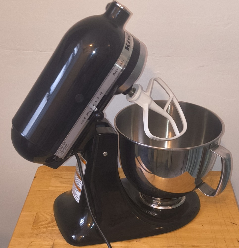 Product Description Artisan® Series 5 Quart Tilt-Head Stand Mixer Whether you need 9 dozen of your signature chocolate chips cookies* or shredded chicken for Taco Tuesday with friends and family, the KitchenAid® Artisan® Series 5 Quart Tilt-Head Stand Mixer has the capacity for every occasion. This durable tilt-head stand mixer was built to last, and features 10 speeds to gently knead, thoroughly mix and whip ingredients for a wide variety of recipes The mixer has only been used a couple times. Excellent condition. Comes with the flat beater. 325 watts.