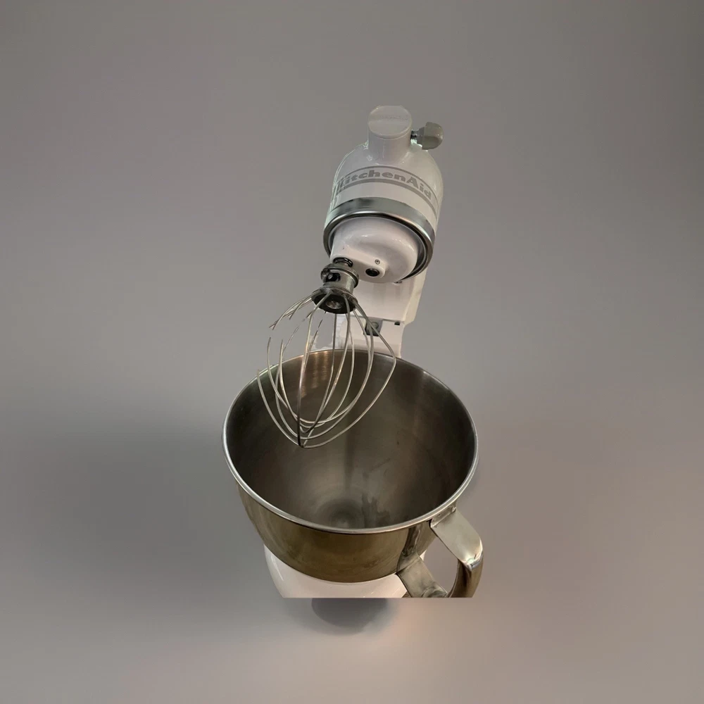 The KitchenAid 5 Quart Artisan Stand Mixer KSM150PSWH in White is a high-quality kitchen appliance designed for mixing and kneading tasks. With a durable steel construction and a glossy finish, this stand mixer is both stylish and reliable. It features 10 different speed settings, making it versatile for various recipes. The set includes a stand, whisk, and bowl.