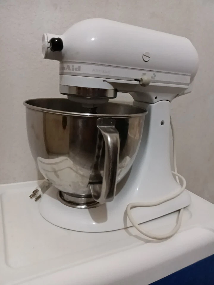 Introducing the KitchenAid Artisan Series Stand Mixer in Milkshake. This powerful 5 qt mixer features 10 different speeds and button controls for easy operation. The glossy white finish and stand included make it a stylish addition to any kitchen. Comes with 5qt stainless steel mixing bowl with handle and mixing blade. With its electric power source, this KitchenAid mixer is perfect for creating delicious treats and mixing ingredients with ease. The Artisan model is a standalone mixer that comes equipped with a variety of features, including a 5 qt capacity and a durable design. It's perfect for home bakers and professional chefs alike. Get ready to create some amazing recipes with this high-quality mixer!
