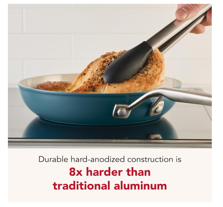 About this item DURABLE CONSTRUCTION: KitchenAid’s hard-anodized cookware is 8x stronger than aluminum and engineered for lasting performance. Designed with a thick, forged base, this skillet ensures fast, even heat distribution for exceptional meals you’ll want to share CERAMIC NONSTICK: High-performance ceramic nonstick is crafted for consistent food release, without the use of additional oils or fats KITCHEN-TO-TABLE STATEMENT: Designed for both performance and presentation, this skillet is finished in a rich Agave, lending Southwest charm to any table setting INDUCTION READY: Skillet is designed for superior performance on any stovetop, including induction PRECISION AND EASE: Shatter-resistant tempered glass lid seals in heat and moisture, while a double-riveted stainless steel handle ensures a secure, seamless transition from stovetop to oven to table RANGE AND REPERTOIRE: Oven-safe up to 500 degrees F (lid to 350), this versatile skillet is built with the widest range of stove-to-oven meal-making, empowering cooks to try new recipes and craft dishes worth gathering around EXCEPTIONAL QUALITY AND ENDURING PERFORMANCE: This hard-anodized ceramic nonstick skillet from KitchenAid is crafted for lasting performance and backed by a Limited Lifetime Warranty