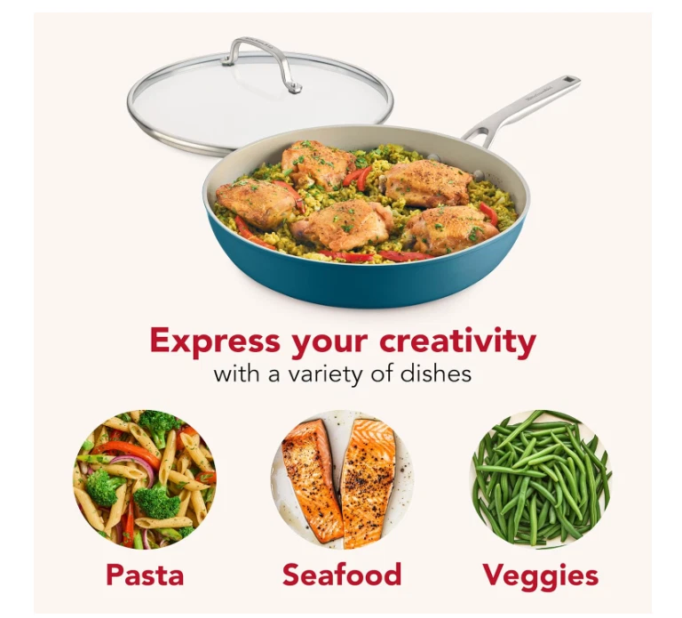 $ 6.6Non Stick Frying Pans Hybrid Ceramic With Lid, 12 Inch TriPly Stainless Steel...