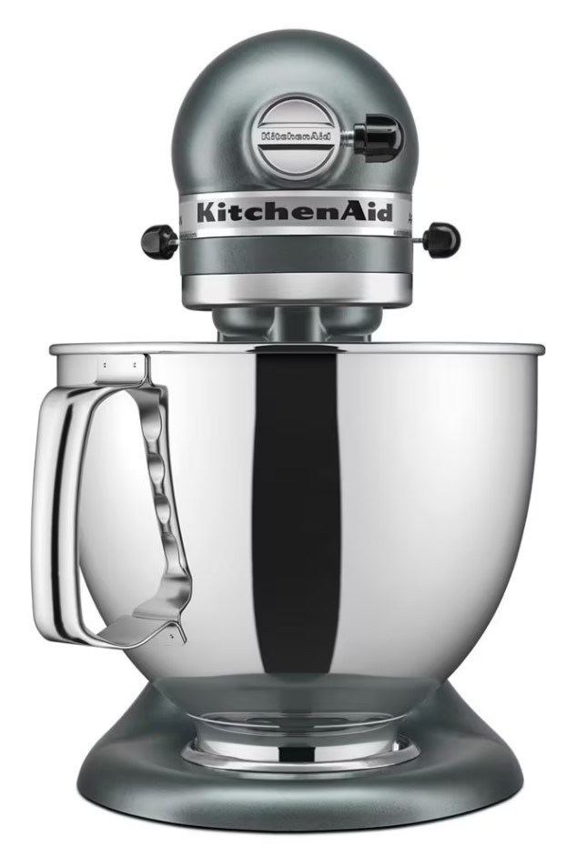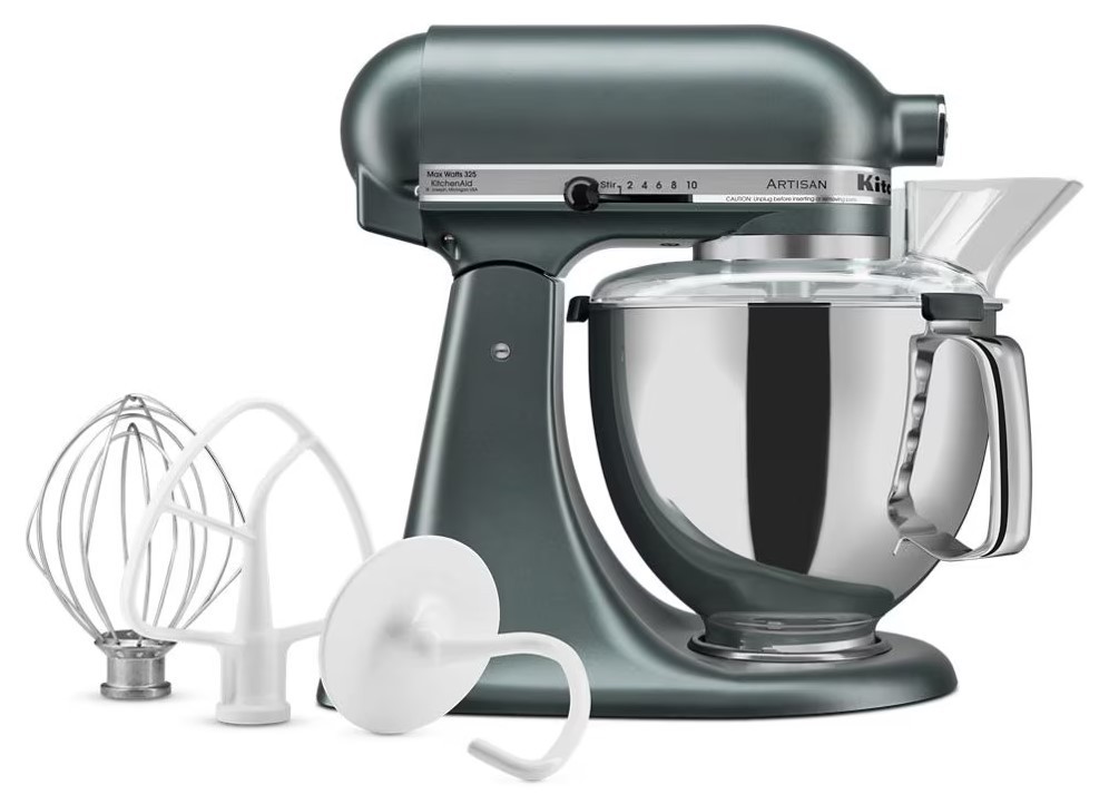 KitchenAid Artisan Series 5-Quart Tilt-Head Stand Mixer The KitchenAid Artisan Series 5-Quart Tilt-Head Stand Mixer is a timeless, professional-grade kitchen appliance renowned for its durability, power, and versatility. Built with high-quality all-metal construction and a powerful direct-drive motor, it delivers consistent performance across 10 precise speeds—from gentle stirring to high-speed whipping—making it ideal for mixing batters, kneading dough, whipping cream, shredding chicken, or preparing large batches of cookies (up to 9 dozen per bowl using 28g dough with the flat beater). The spacious 5-quart polished stainless steel bowl features a comfortable handle for easy lifting and pouring, and it is dishwasher-safe for quick cleanup. The tilt-head design lifts smoothly to allow effortless access for adding ingredients or attaching accessories, then locks securely for stable, hands-free mixing. The front-mounted power hub is compatible with over 10 optional attachments (sold separately), including pasta makers, food grinders, spiralizers, ice cream makers, and vegetable slicers, transforming it into a complete kitchen system. Included accessories provide immediate versatility: a coated flat beater for mixing batters and frostings, a coated dough hook for kneading yeast doughs, and a 6-wire whip for incorporating air into whipped cream, meringues, and soufflés. With 59 touchpoints for thorough mixing and KitchenAid’s legendary reliability, this mixer is engineered for lifelong use. Available in a wide range of classic and contemporary colors (including Porcelain White, Onyx Black, Matte Silver, Empire Red, Contour Silver, and many limited-edition shades), it adds a stylish, personalized touch to any kitchen countertop. Perfect for home bakers, culinary enthusiasts, and small business owners who value precision, durability, and enduring design in their kitchen tools.