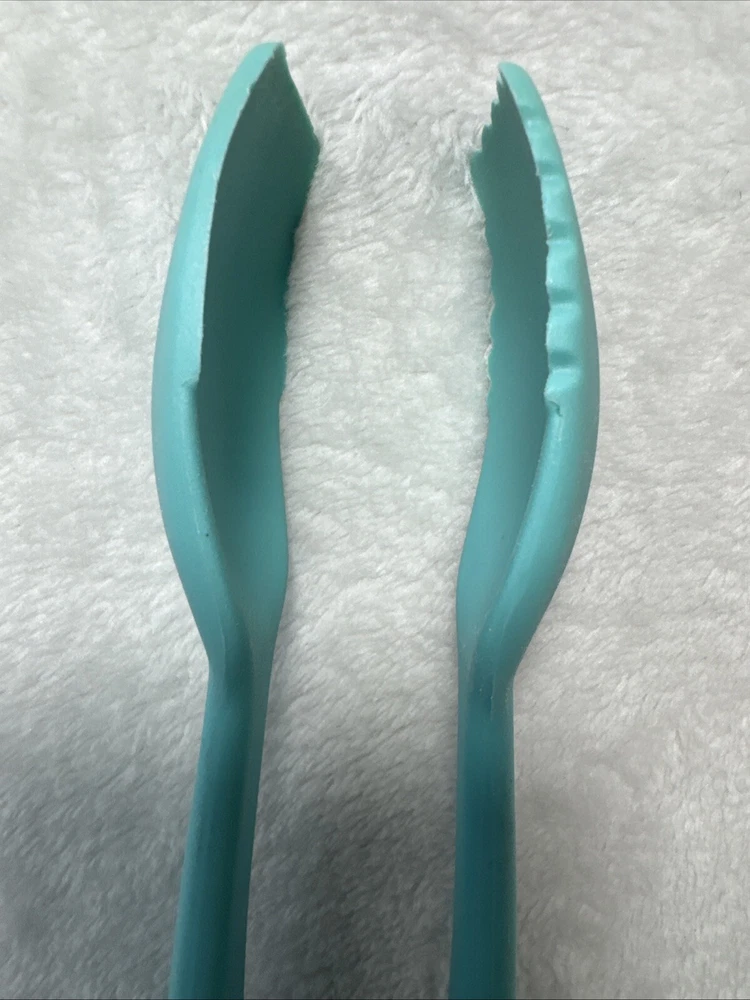Add a touch of vintage charm to your kitchen with these one-of-a-kind KitchenAid TEAL ONE PIECE NYLON Tongs. This serving utensil is perfect for any home cook who wants to look stylish while protecting their hands from heat. The nylon material makes it durable and long-lasting, while the heat-resistant nylon handle ensures comfort and safety. This unique set includes one piece with a silver color, and it is perfect for any KitchenAid brand enthusiast. Whether you are a professional chef or a home cook, these tongs are a must-have in your kitchen. Get your hands on this vintage KitchenAid tongs set today and add a touch of elegance to your cooking experience!