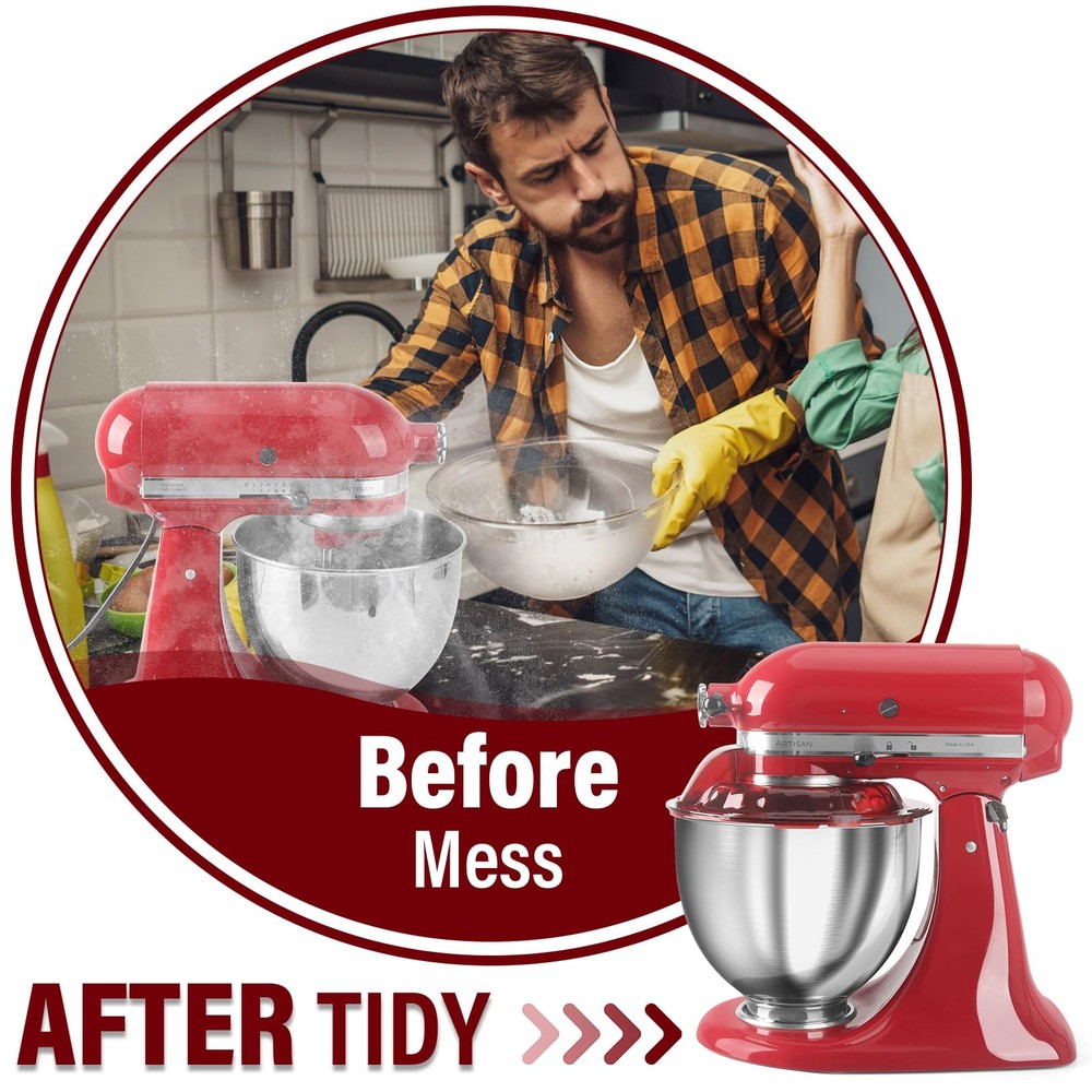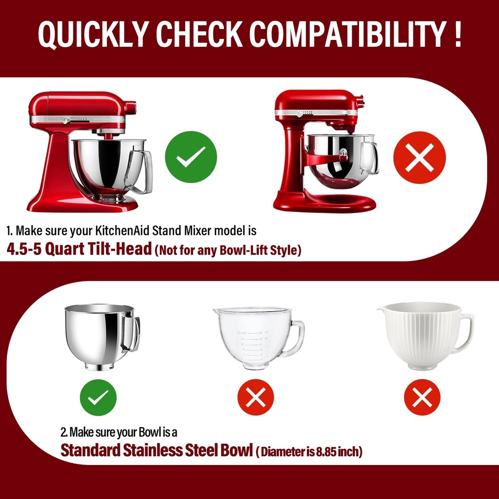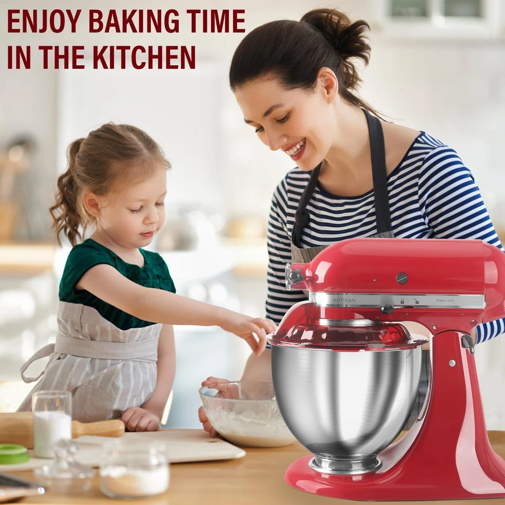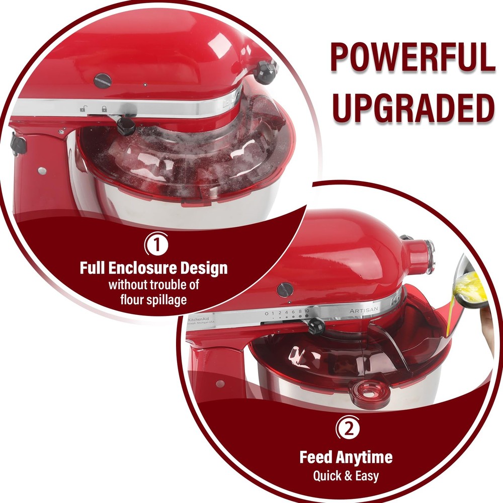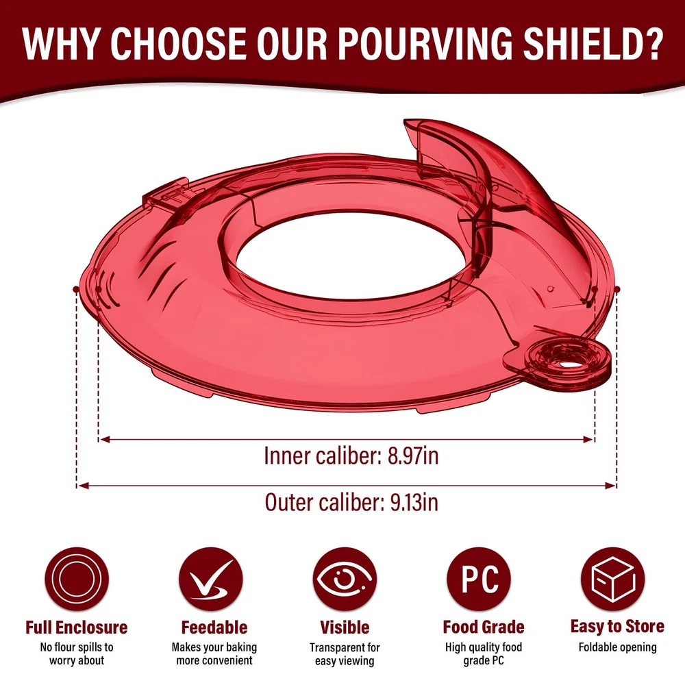 Feature This is a pooling shield hood for kitchen aid stand mixer bowls Our splash guard for kitchen mixer (Note: Only fit for 4.5-5 Quart Stainless Steel Bowls). The pooling shield keeps whatever is being mixed contained inside the bowl. However, you can still add additional ingredients without lifting the shield thanks to its space opening. Material: Food Grade Plastic Size: 26 * 21.5 * 6.5 CM Color: Clear Compatibility: Kitchen Aid 4.5 and 5 Quart Bowls,Not For Bowl Lift. Convenient and Easy To Install The convenient for kitchen aid mixer pouring shield makes it easier than ever to add dry or wet ingredients, including flour, eggs, and hot liquids. Premium food grade materials The pouring shield for kitchen aid 4.5-5 quart is made of transparent food grade plastic, sturdy and durable, not easily broken or deformed, and can be used for a long time, saving you time and money. Packaging: 1 x Pouring Shield 【Upgraded Design】The full wrap-around pouring shield and standard splatter shield chute dust cover perfectly retains the ingredients in the center for kitchenaid mixer bowl, and the mixing will be more efficient and thorough, effectively preventing splashes and spills when mixing lightweight ingredients such as flour. Upgraded dump hood with quick lock ,quickty installs ,removes reduce mess and save your time. 【Food Grade Materials】The secure pouring shield kitchen aid mixer attachments is crafted from food-grade PC plastic, ensuring safety and durability. Splatter guard it's heat-resistant, providing you with an easy and convenient cooking experience! 【Large angled pour chute】- Our kitchen aid accessories and attachments - pouring shield for kitchen aid 4.5-5 quart features a large angled ingredient slide, helping you easily add ingredients to the kitchen aid stainless steel mixing bowl without wasting your raw materials. 【Wide Compatibility 】With the KitchenAid 4.5 -5 QT Tilt Head Stand Mixer Stainless Steel Bowl. Fully enclosed design, all-round no dead angle, to prevent the mixer in operation splash and overflow.【Suitable for for Stainless Steel Bowls Only.】 【 Easy to Use 】- The pouring cover size of our Kitchen Aid accessory for stand mixers is very suitable, and you can install or remove it at any time when the machine stops. Converts to a sealed storage container.
